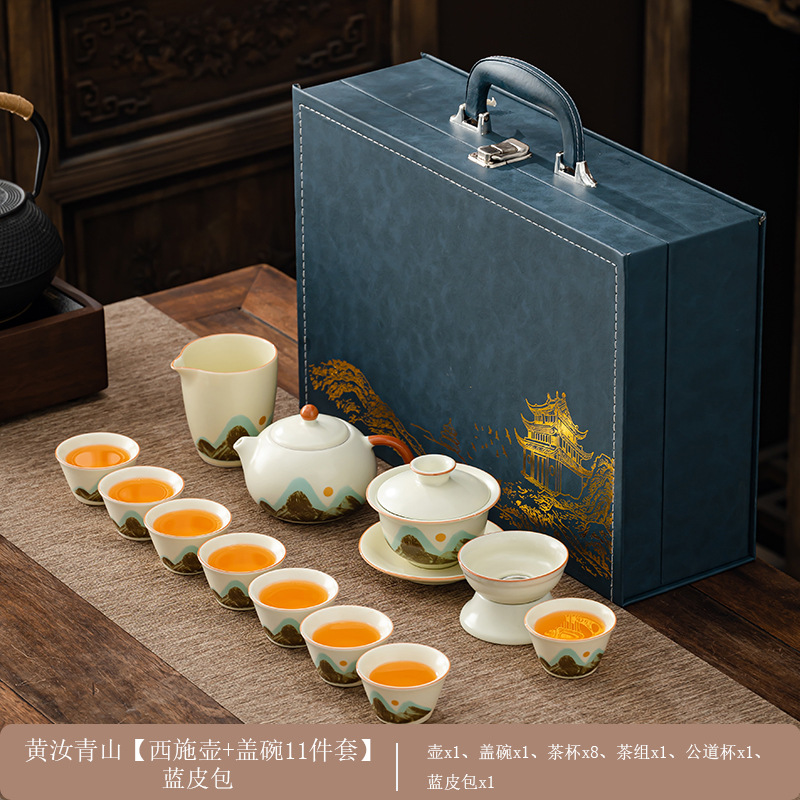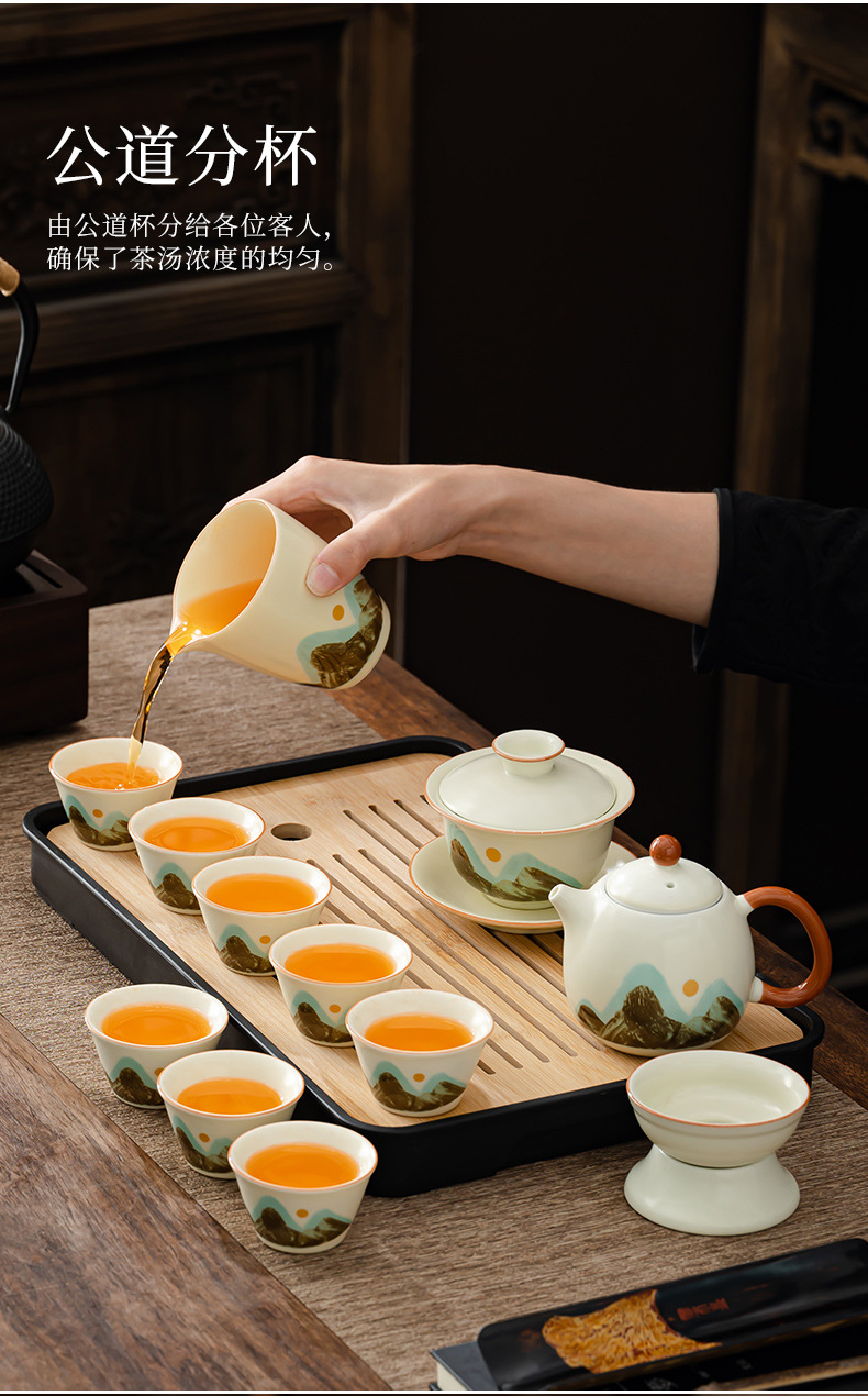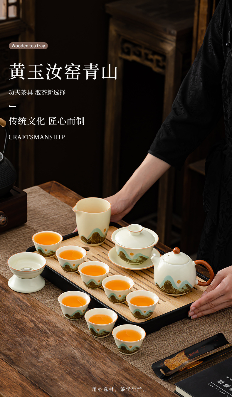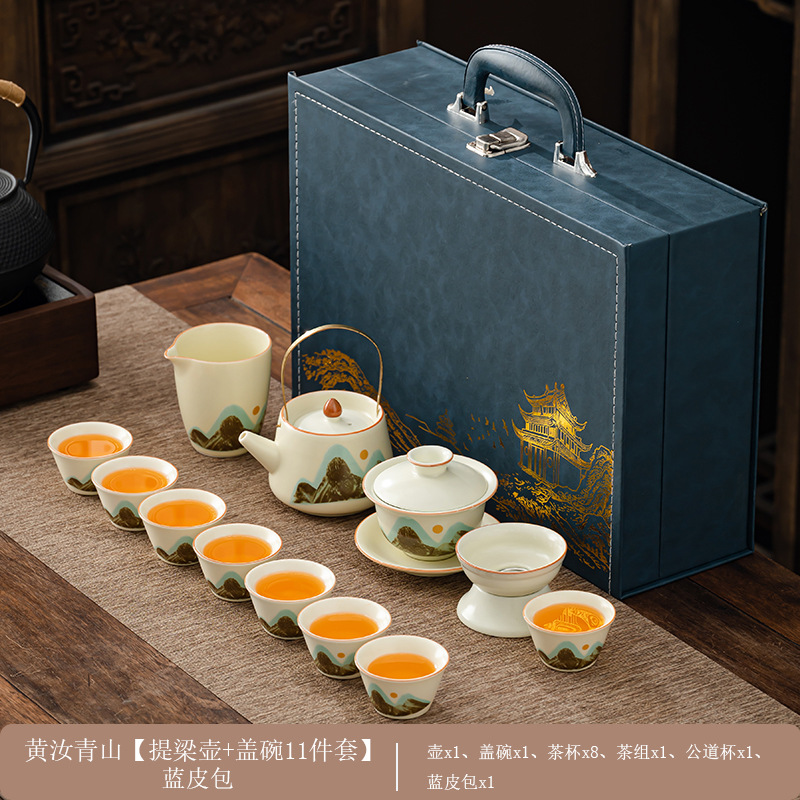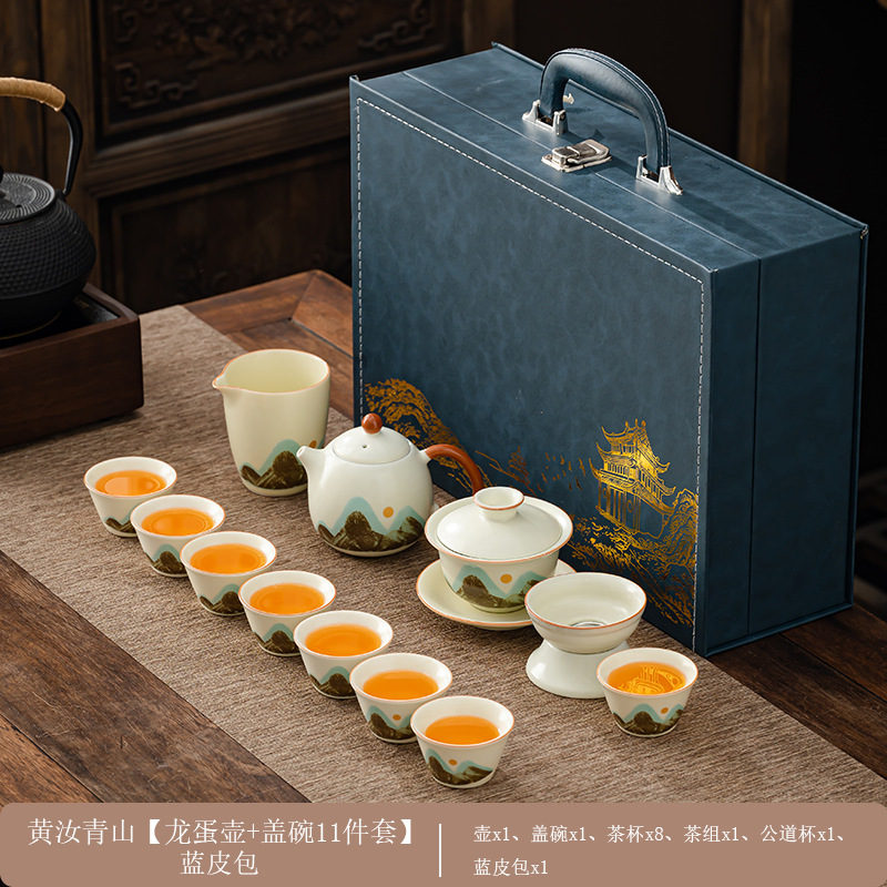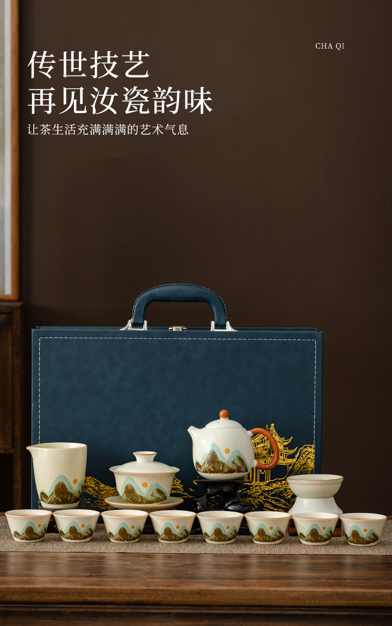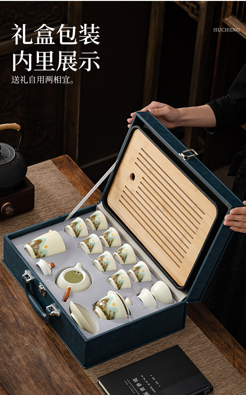 轻奢茶具套装家用办公高档茶具汝窑客杯高级礼盒商务礼品定制logo