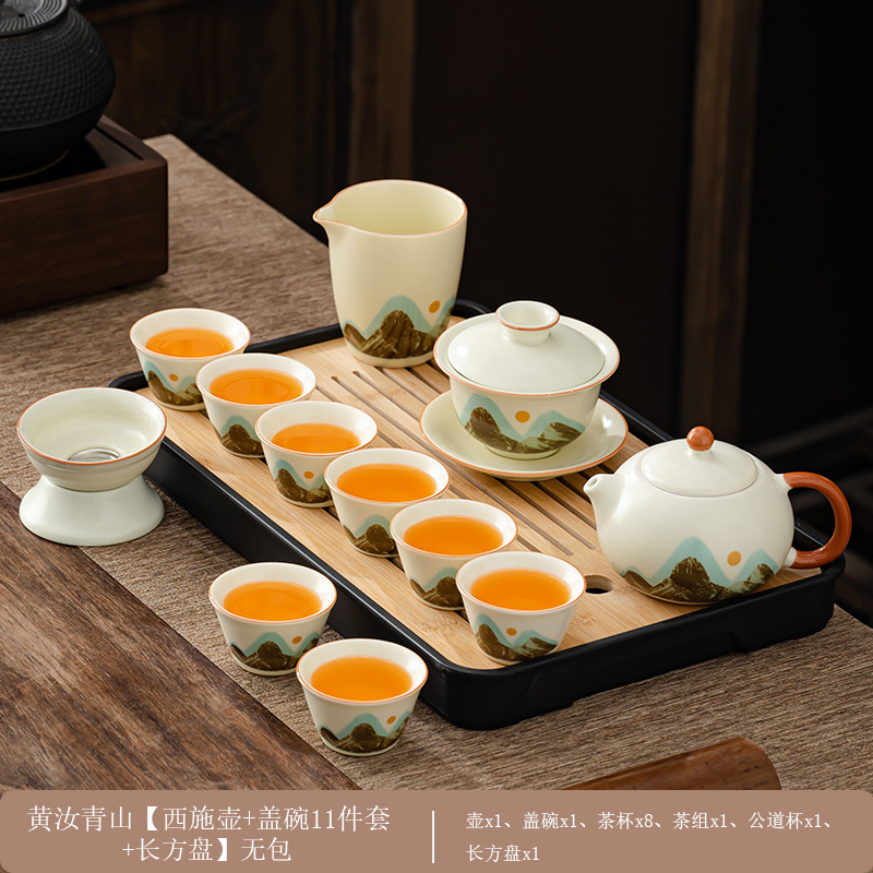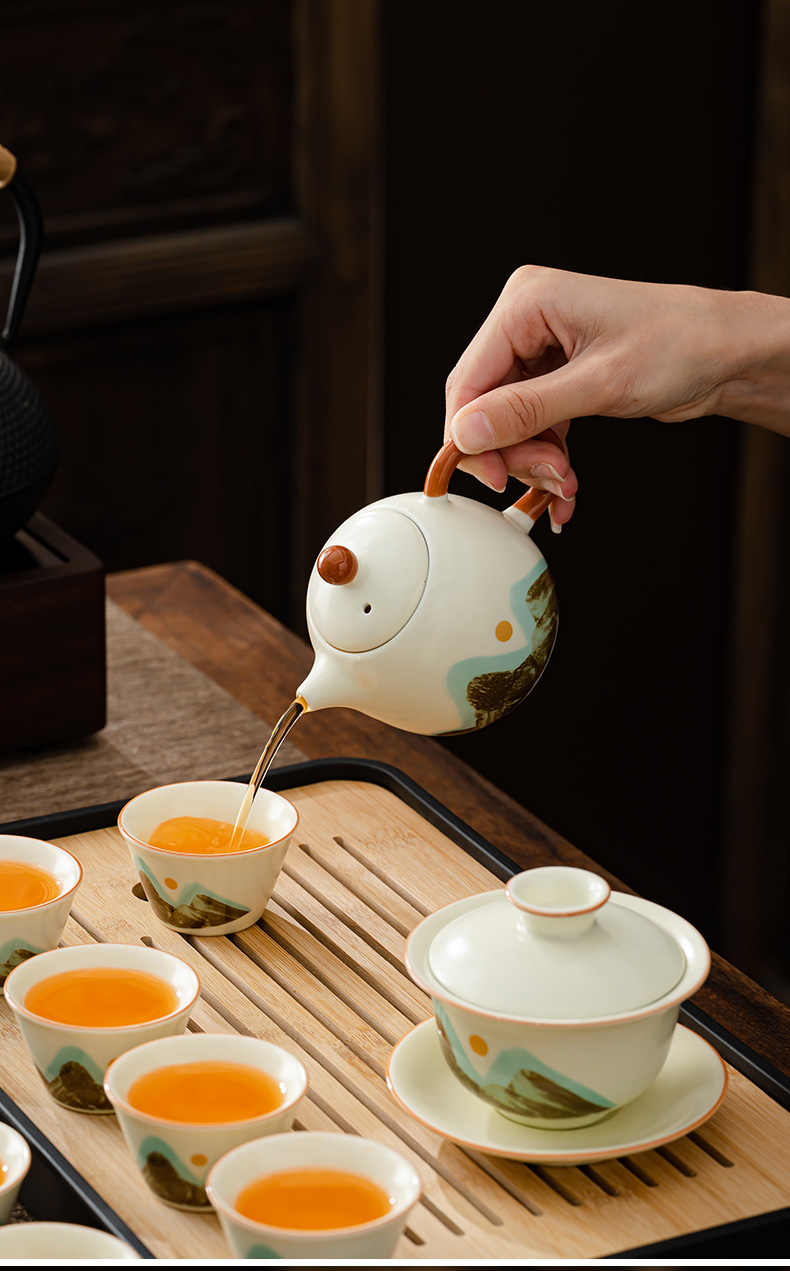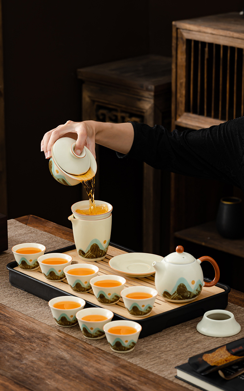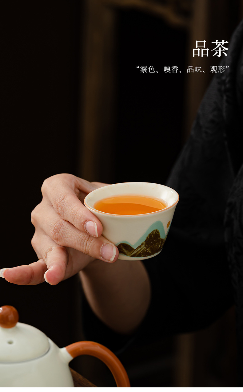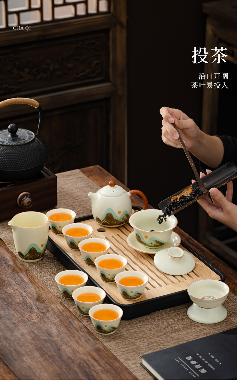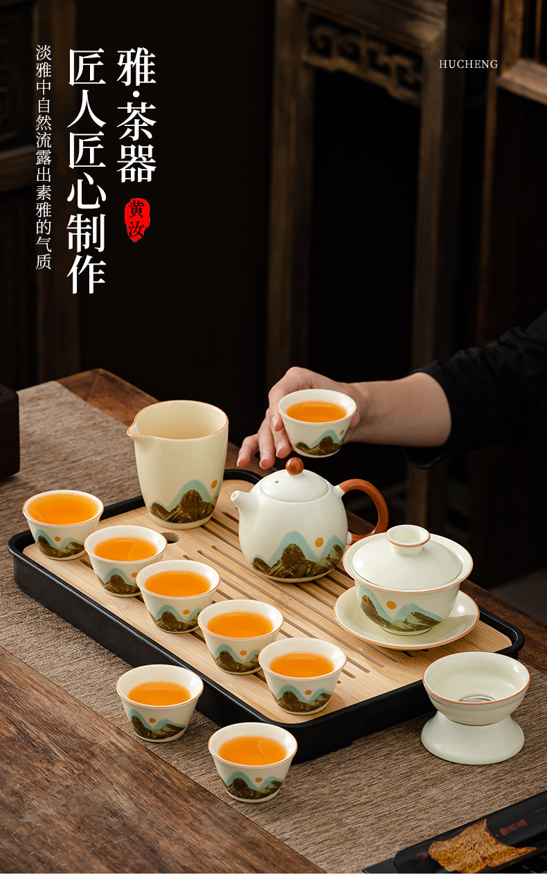 轻奢茶具套装家用办公高档茶具汝窑客杯高级礼盒商务礼品定制logo