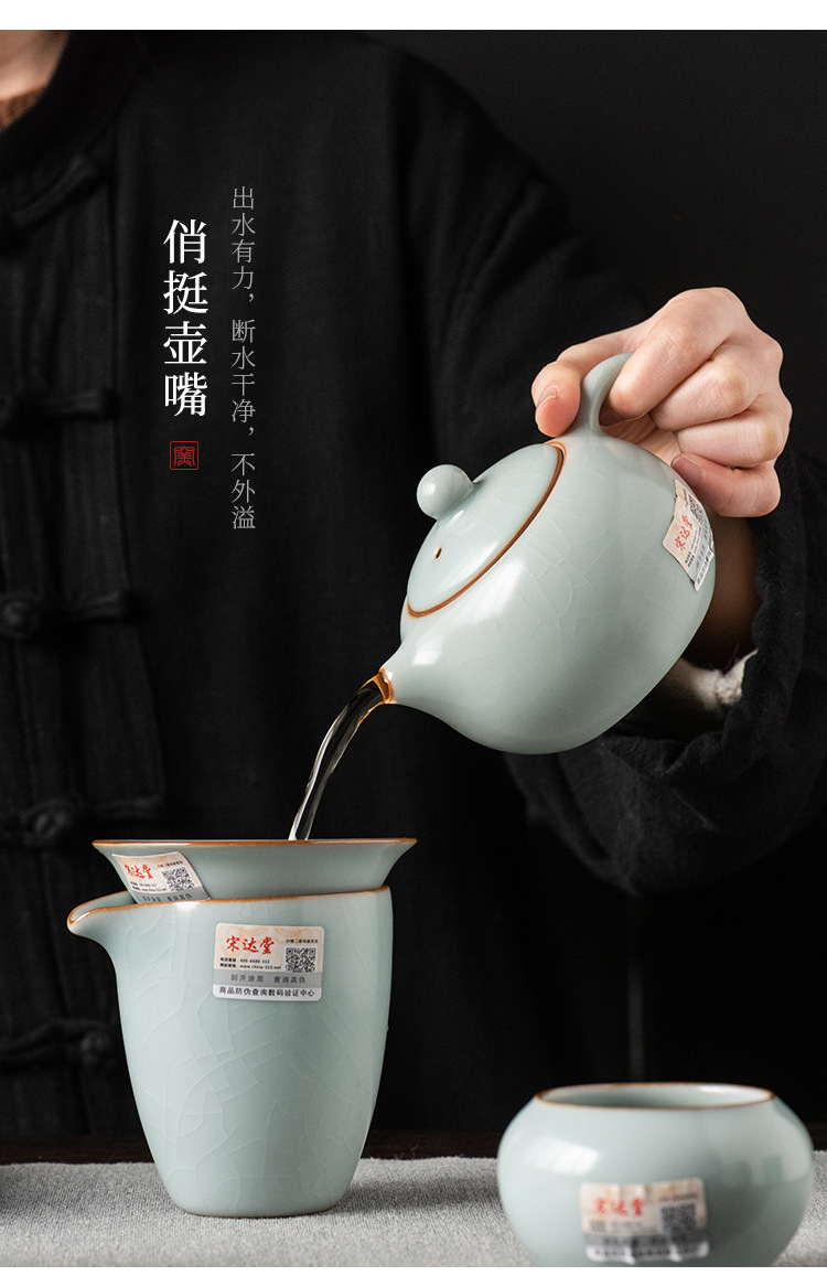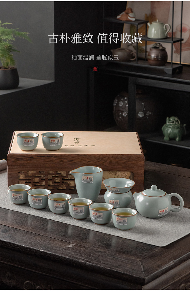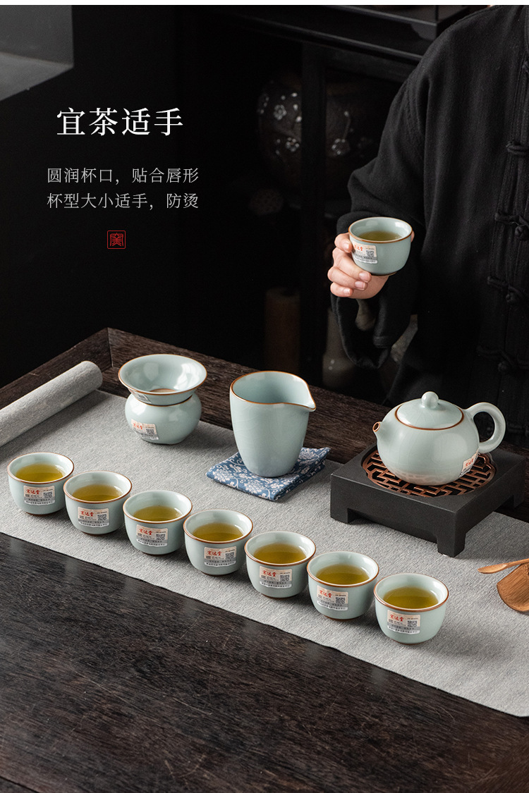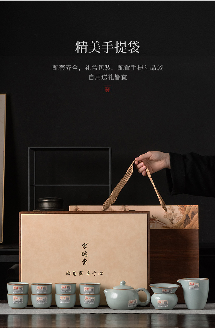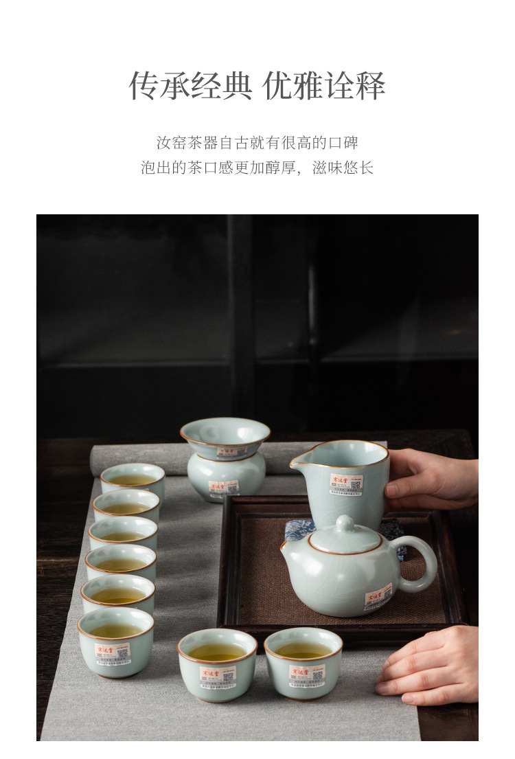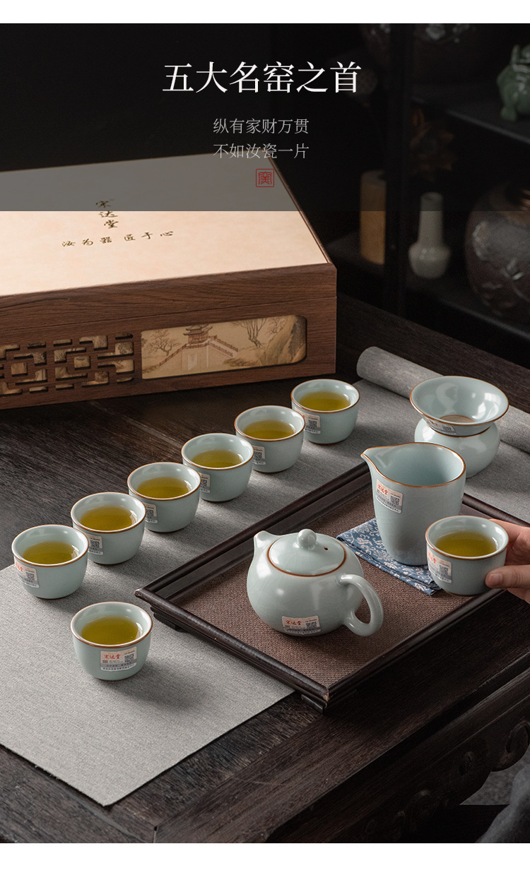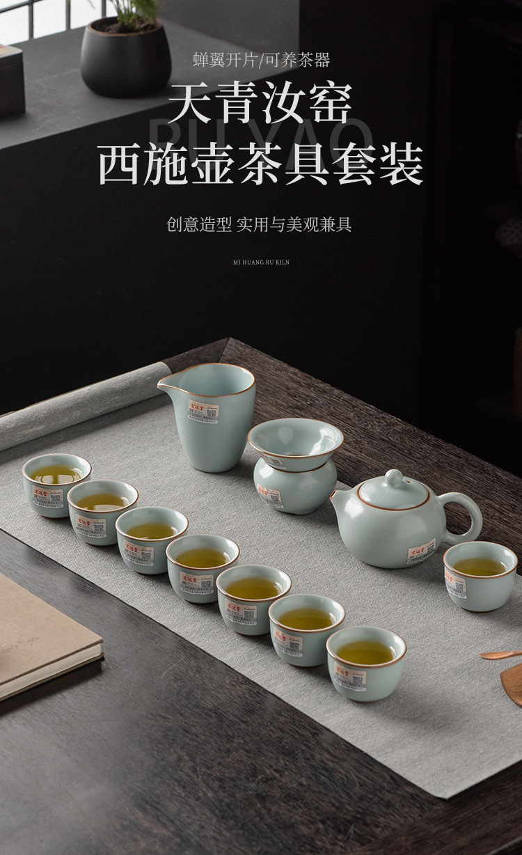 轻奢天青汝窑功夫茶具套装商务礼品高档大师手作西施石瓢壶