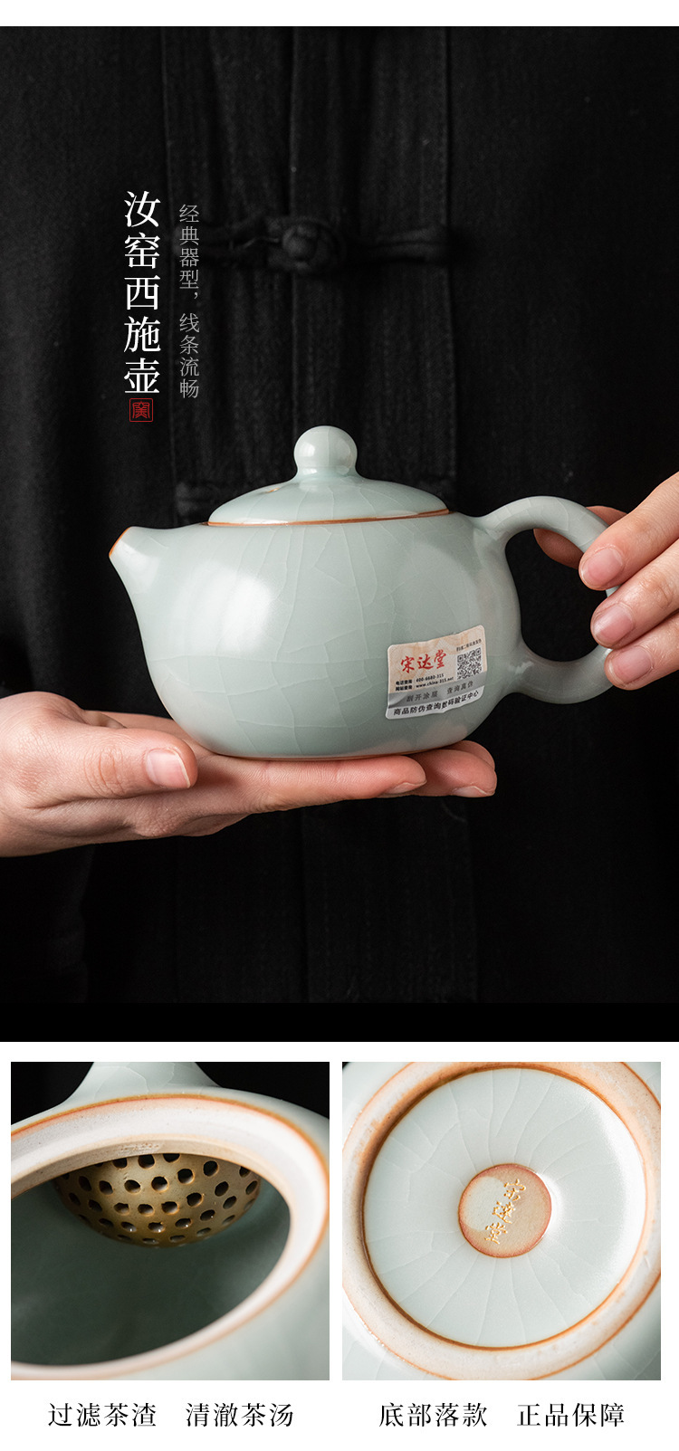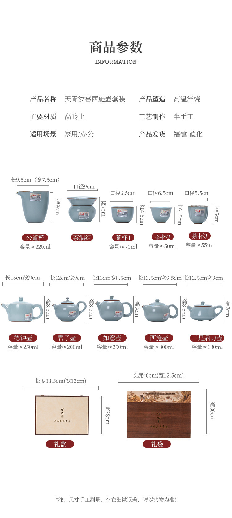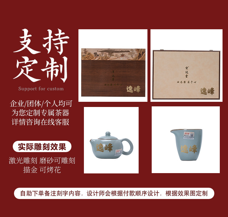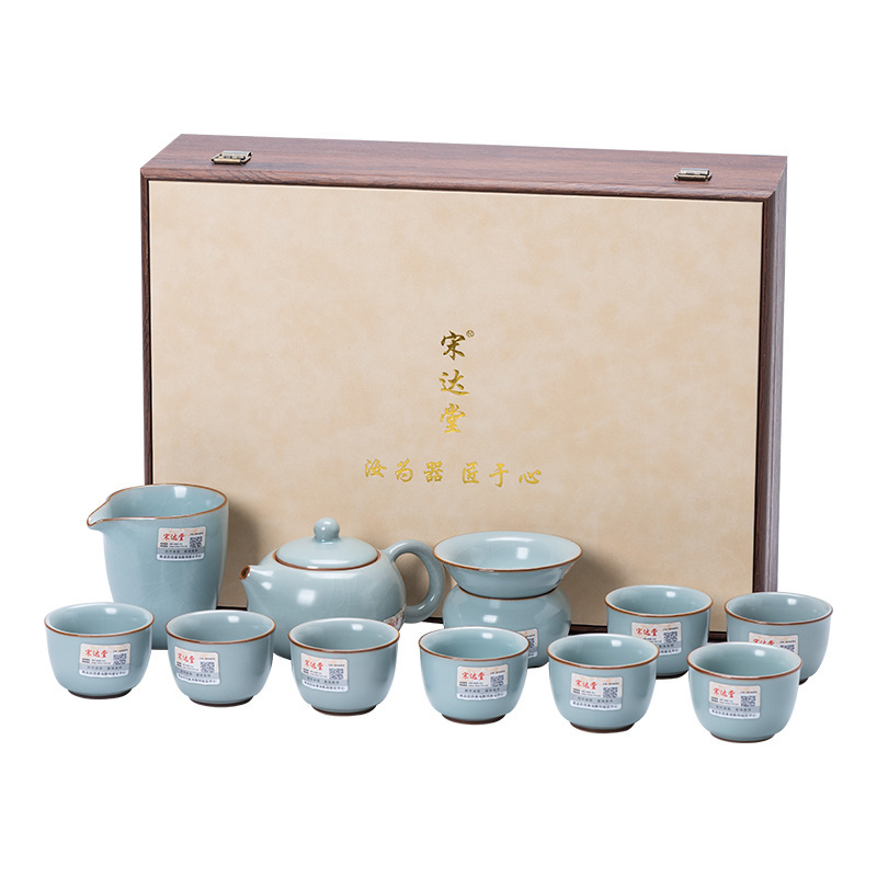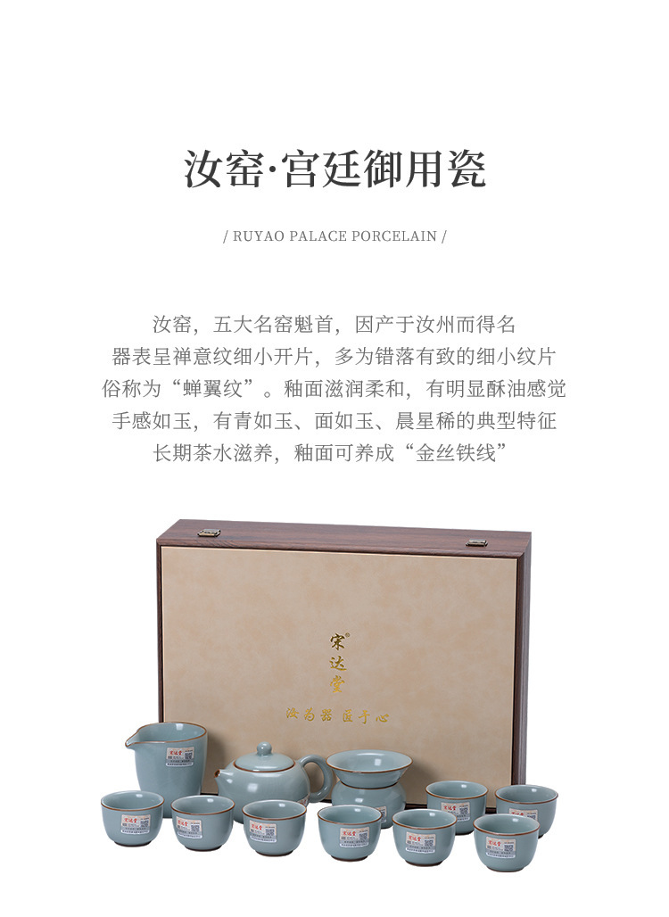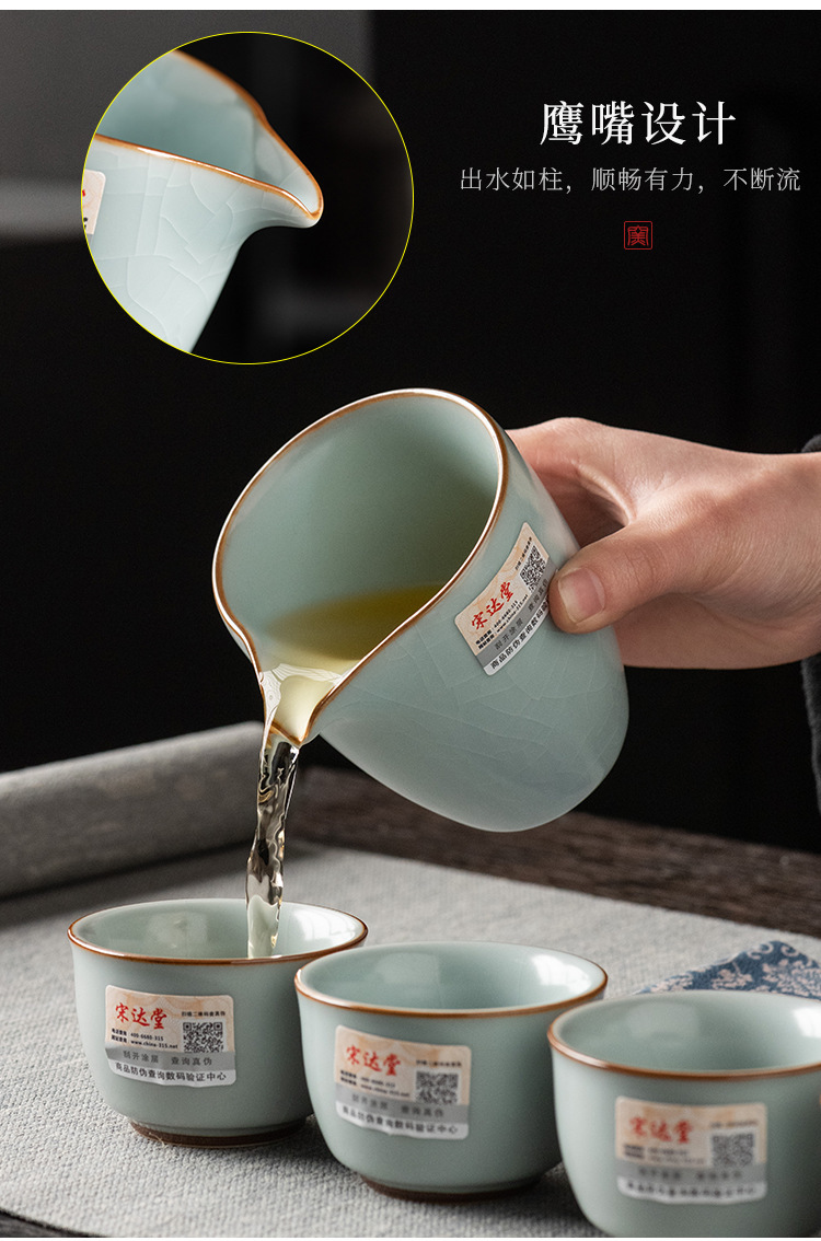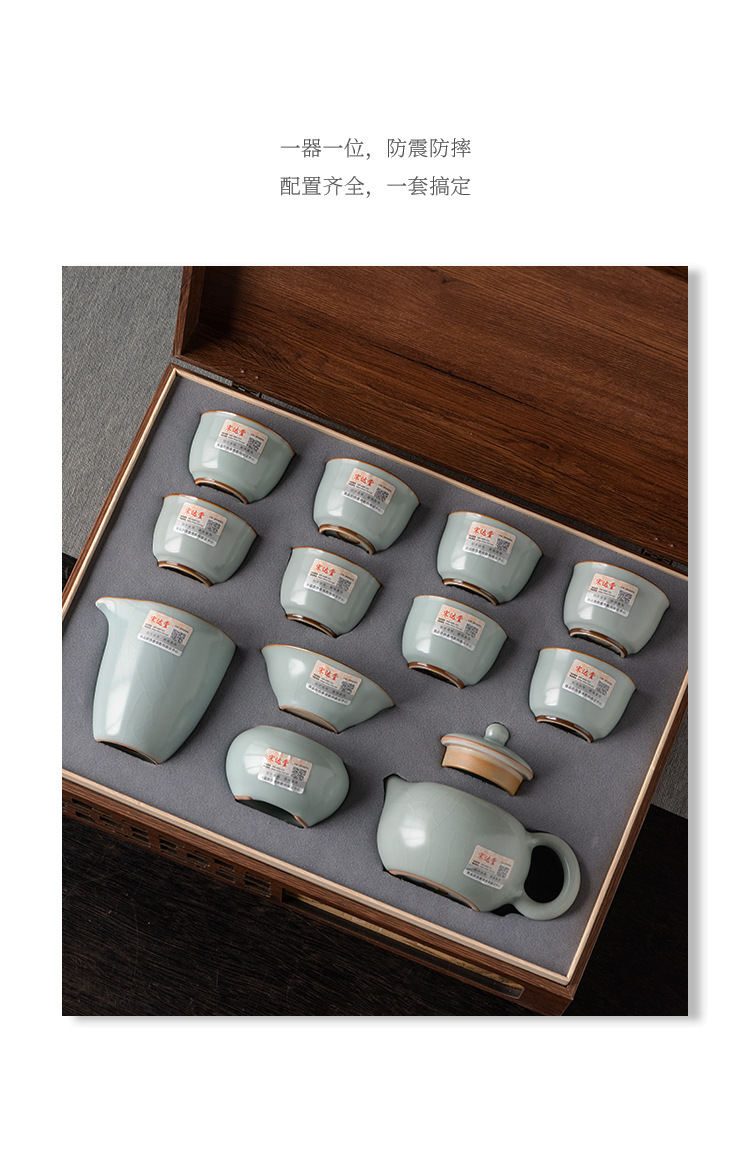 轻奢天青汝窑功夫茶具套装商务礼品高档大师手作西施石瓢壶
