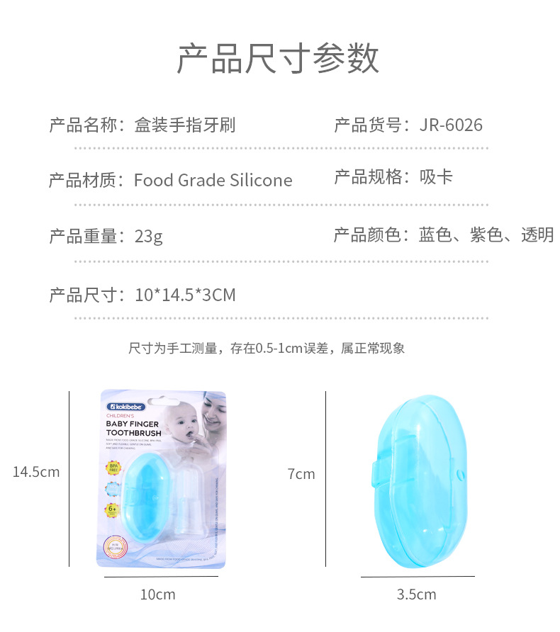 【尺寸】带包装尺寸10*14.5*3CM 手指牙刷3.5*7*2.8CM