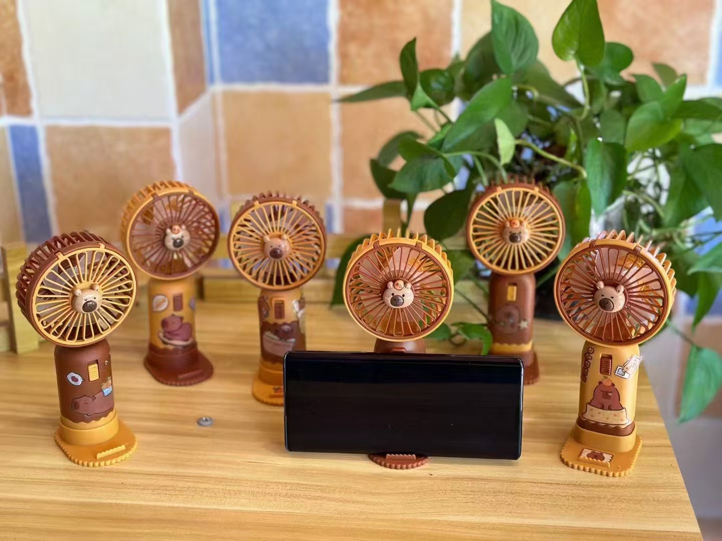 『产品名称』卡通带手机支架风扇(4色)