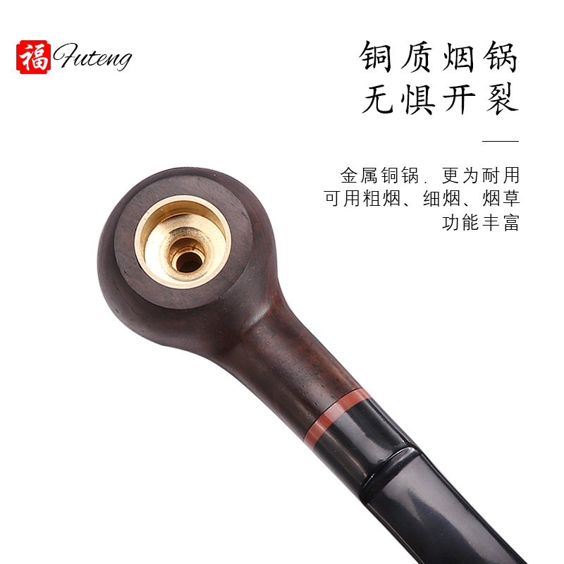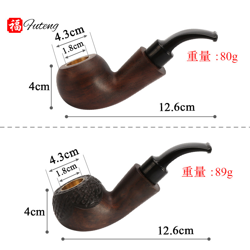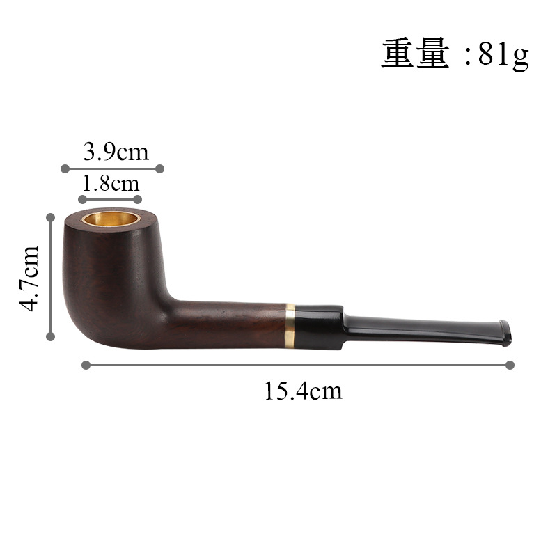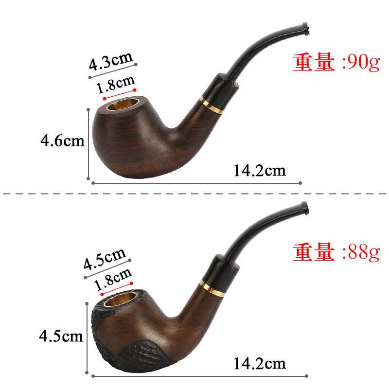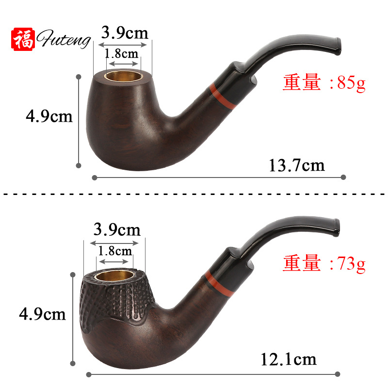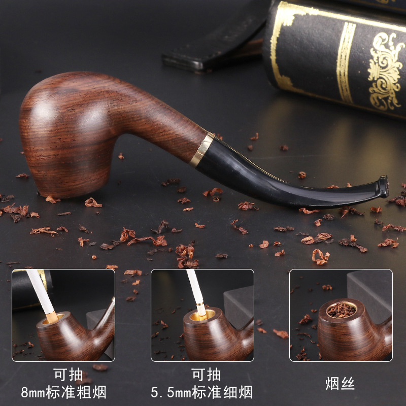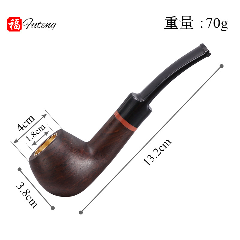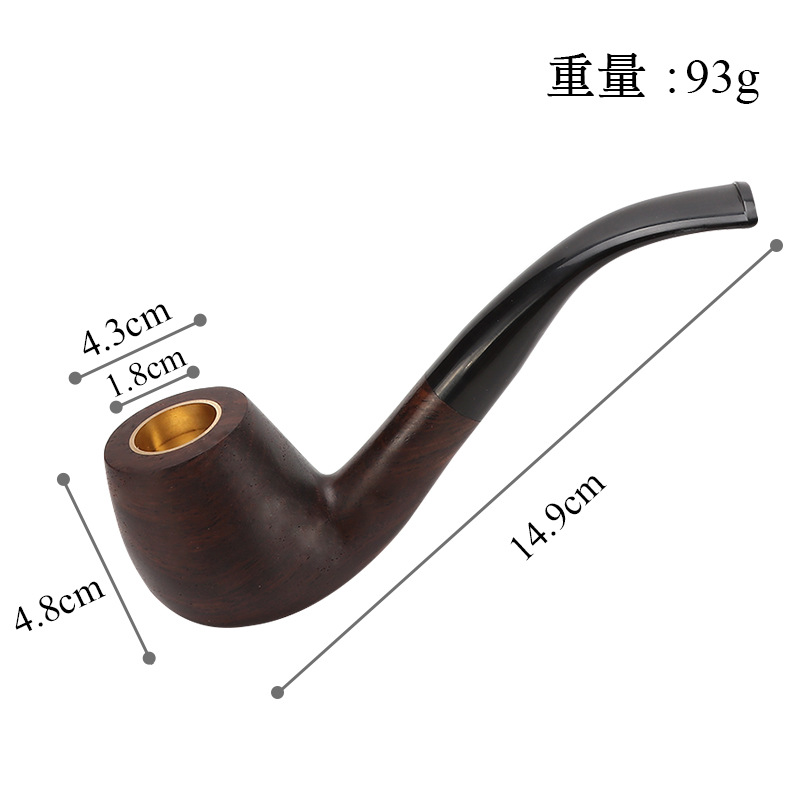 一斗三用实木打蜡老式烟斗 新品批发弯式黑檀木9MM过滤铜斗锅烟斗