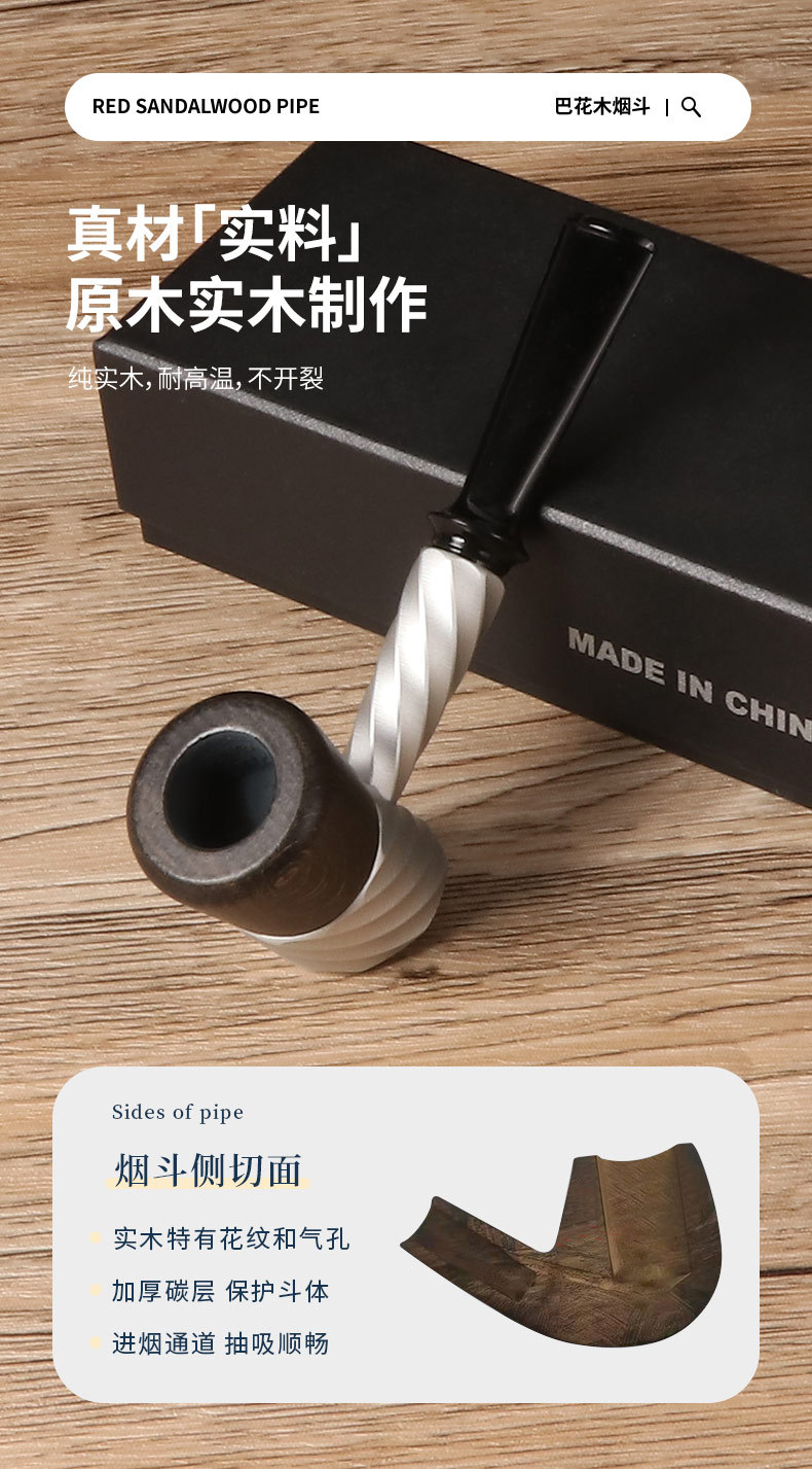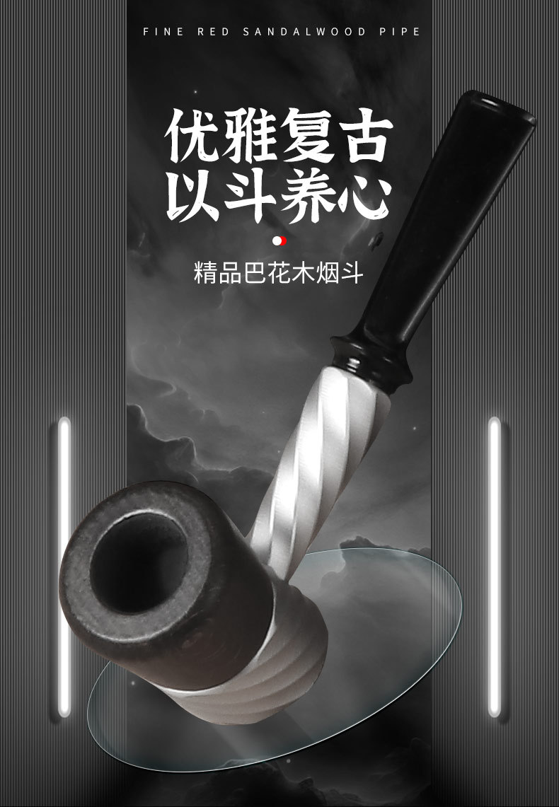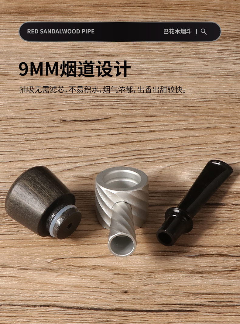 长丰新款直式9mm过滤烟斗可拆卸清洗三段老式传统烟丝斗厂家直销