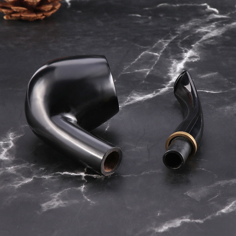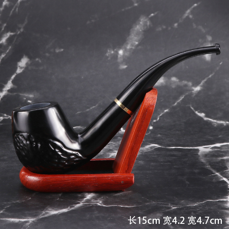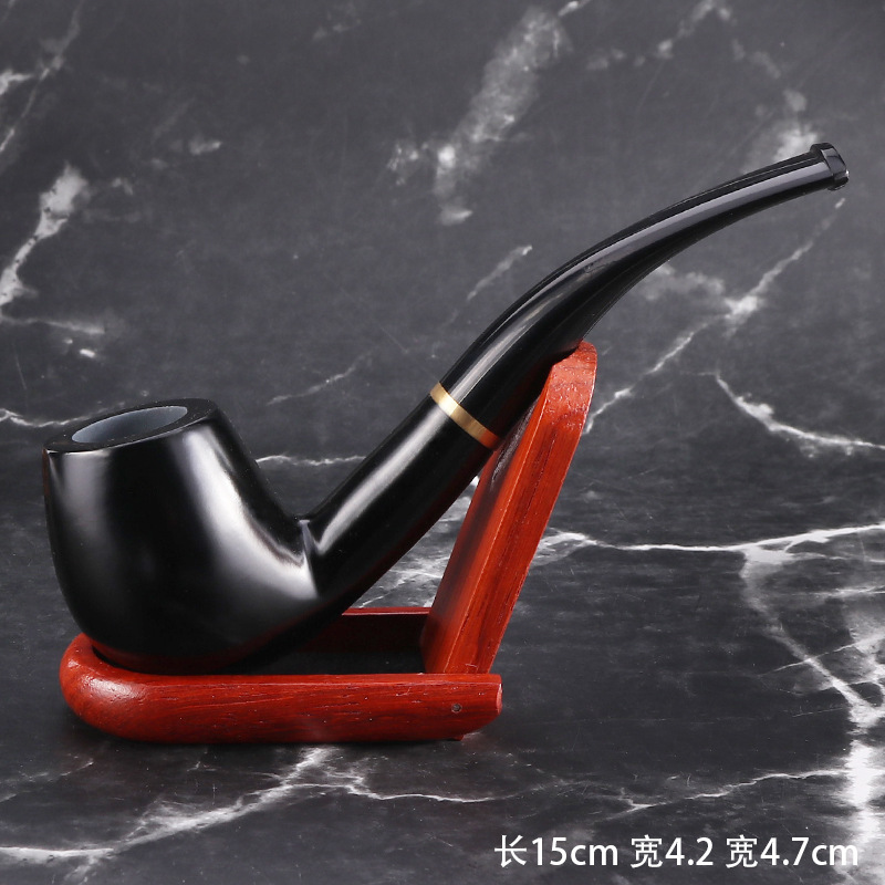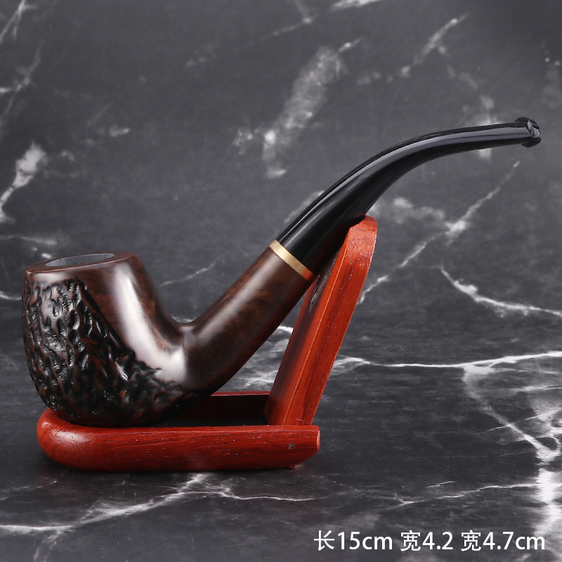 烟斗厂家现货热卖经典弯式黑檀木加圈烟斗 乌木9MM过滤手工烟斗