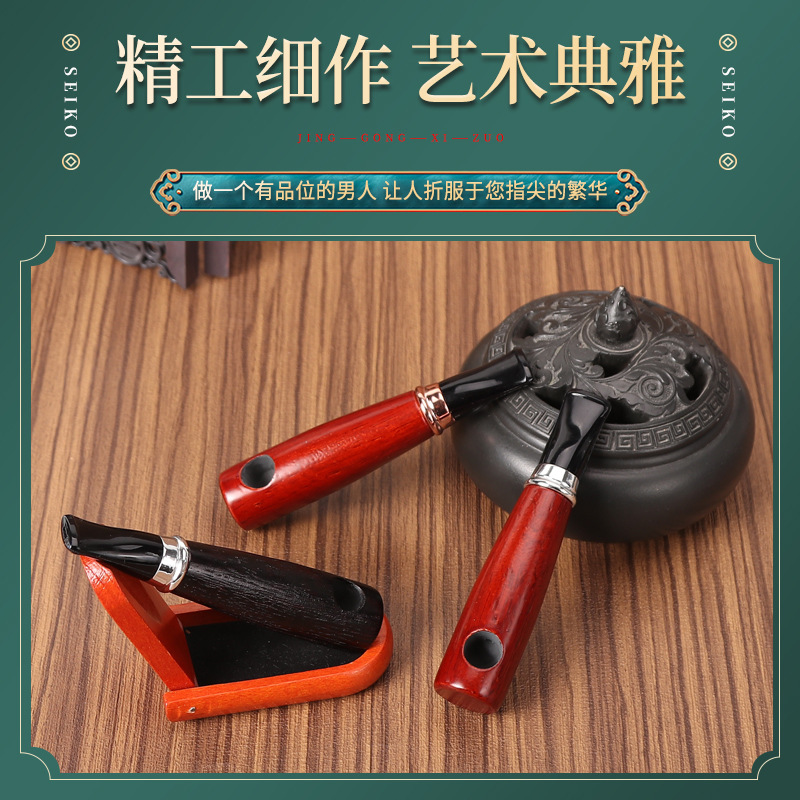 新品纯手工烟丝斗小号便携小巧雪茄款直式青冈木过滤烟斗烟具