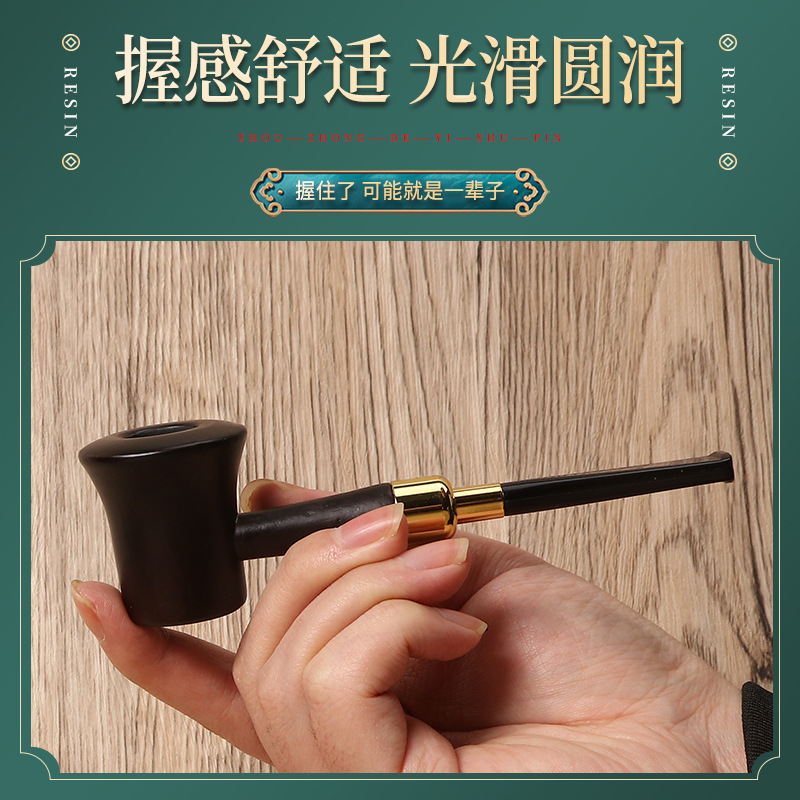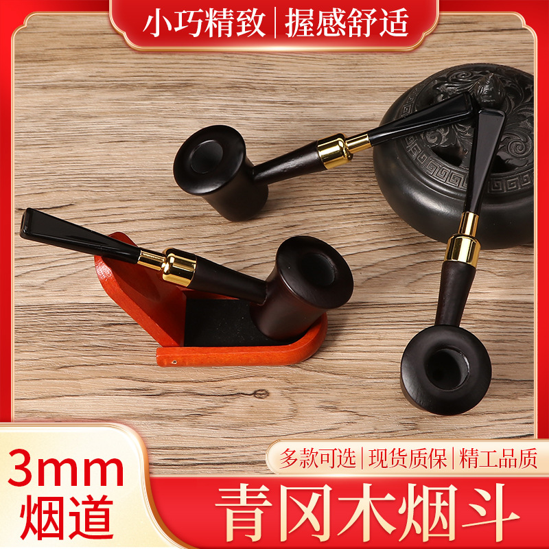 新款纯手工3mm烟道青冈木蘑菇斗精致小巧树脂直柄烟丝斗烟具批发