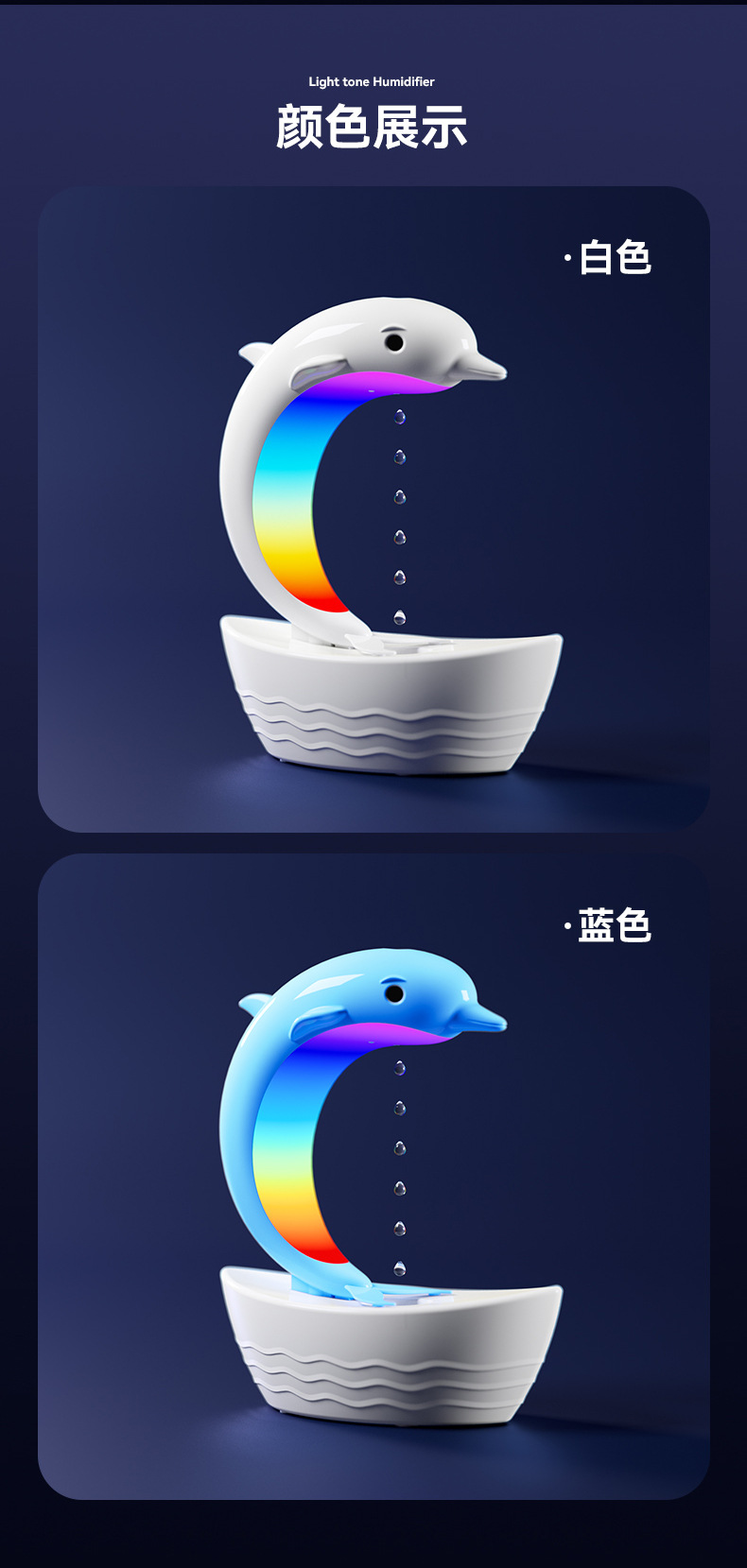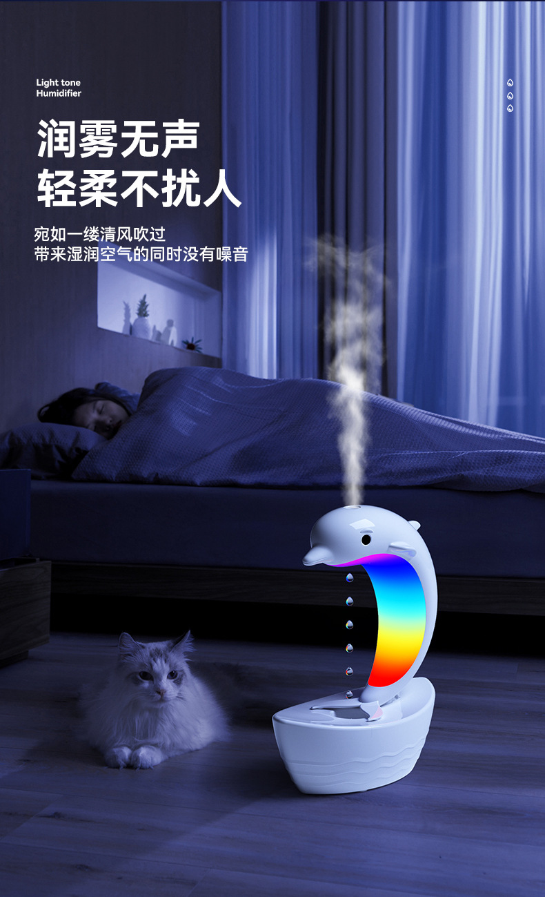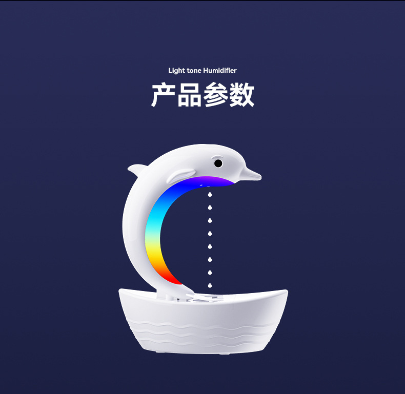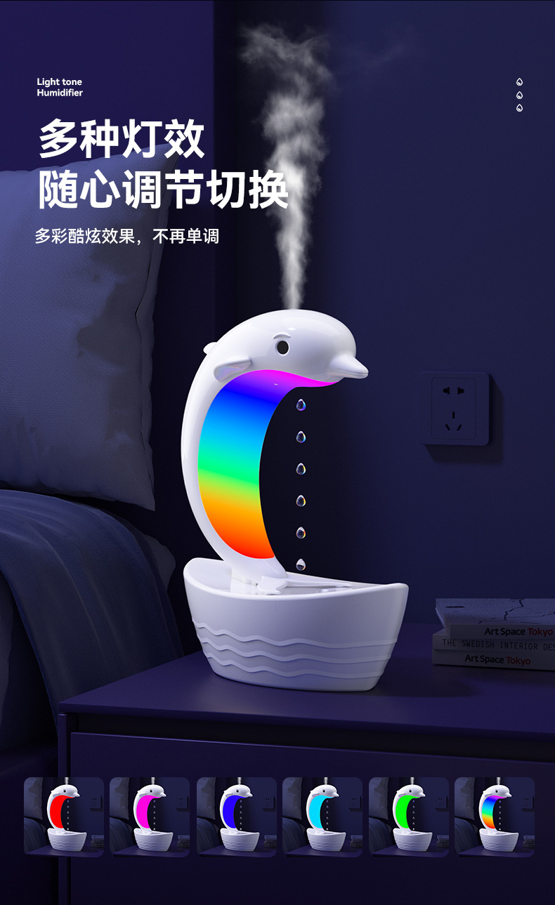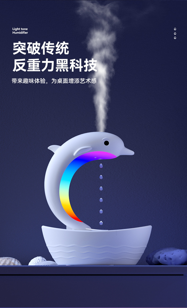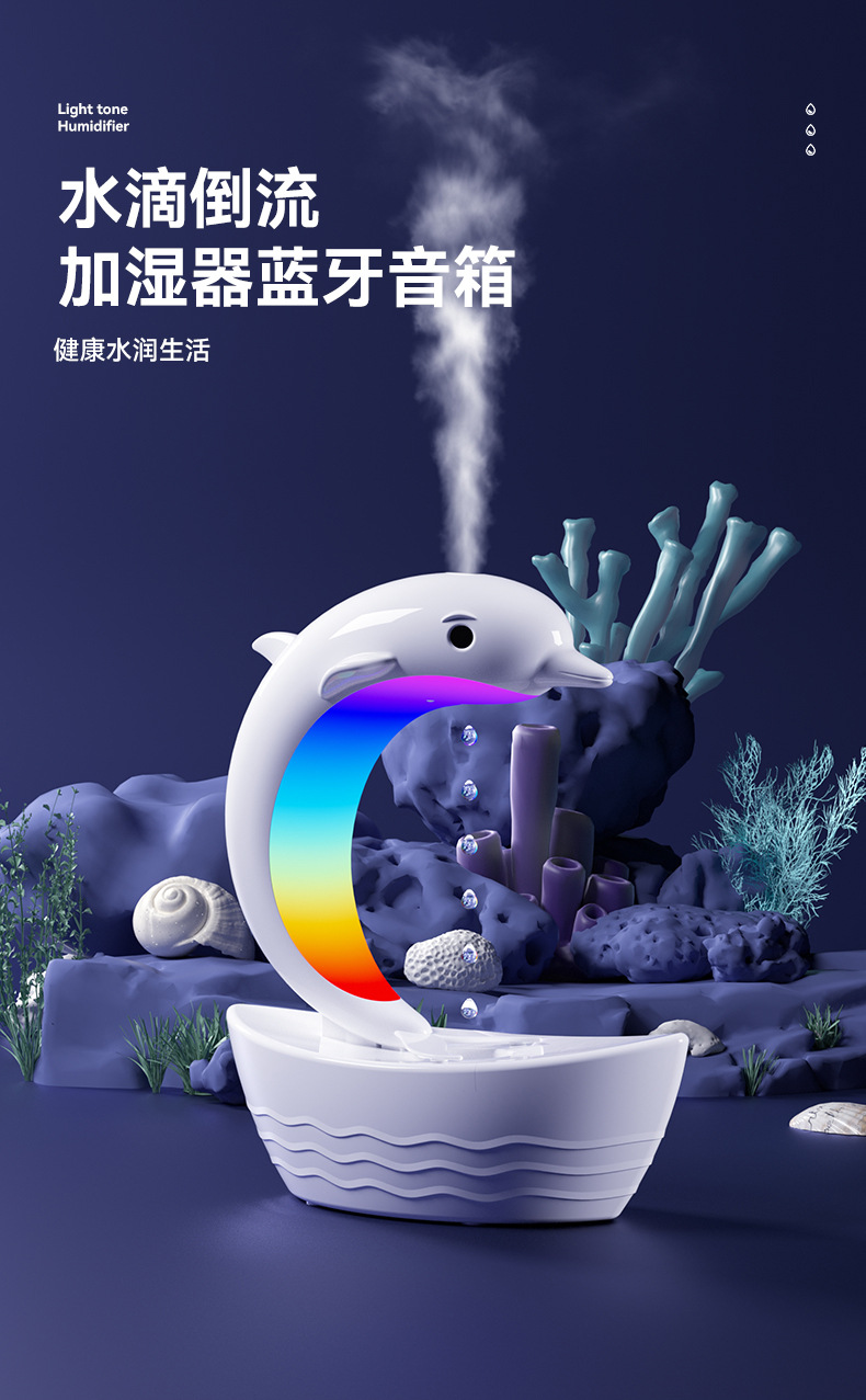 外贸专供小海豚反重力加湿器防烧干纳米细雾雾化器七彩灯蓝牙音箱