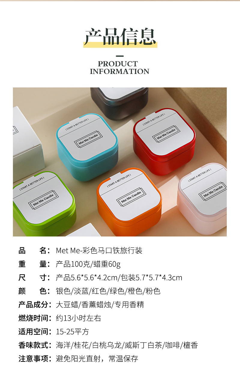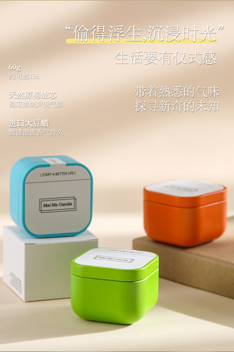 Met Me彩色马卡龙马口铁熏香伴手礼大豆蜡高级感造型香薰蜡烛