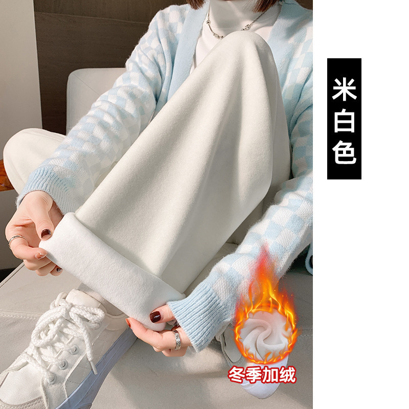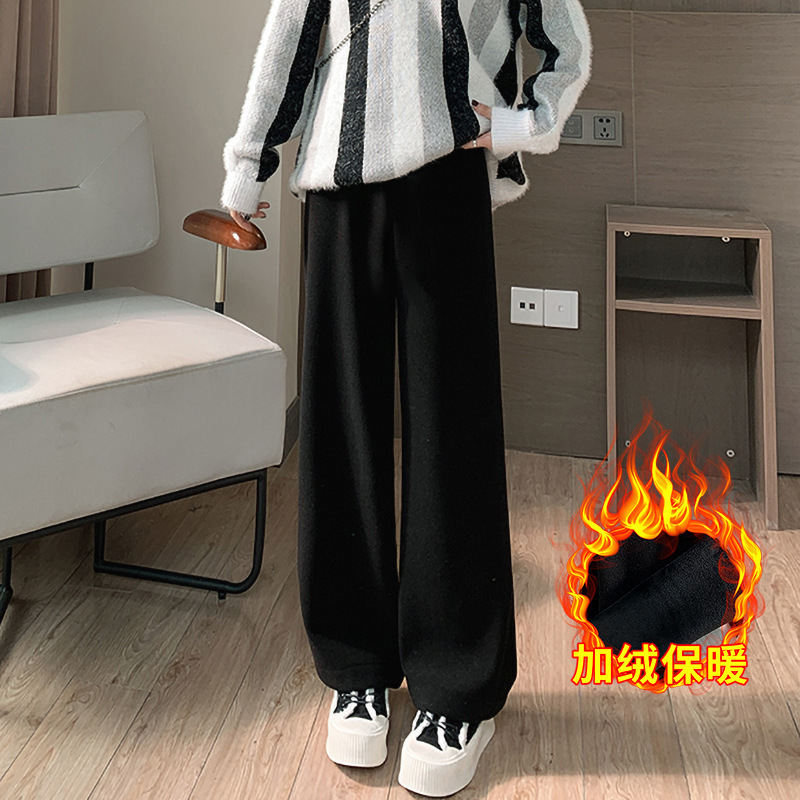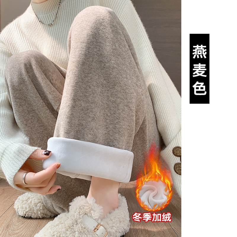 奶昔裤毛巾羊绒裤女秋款软糯直筒休闲裤子针织窄版毛呢垂感阔腿裤