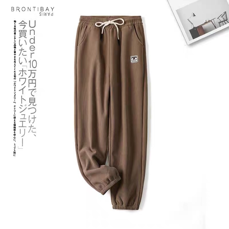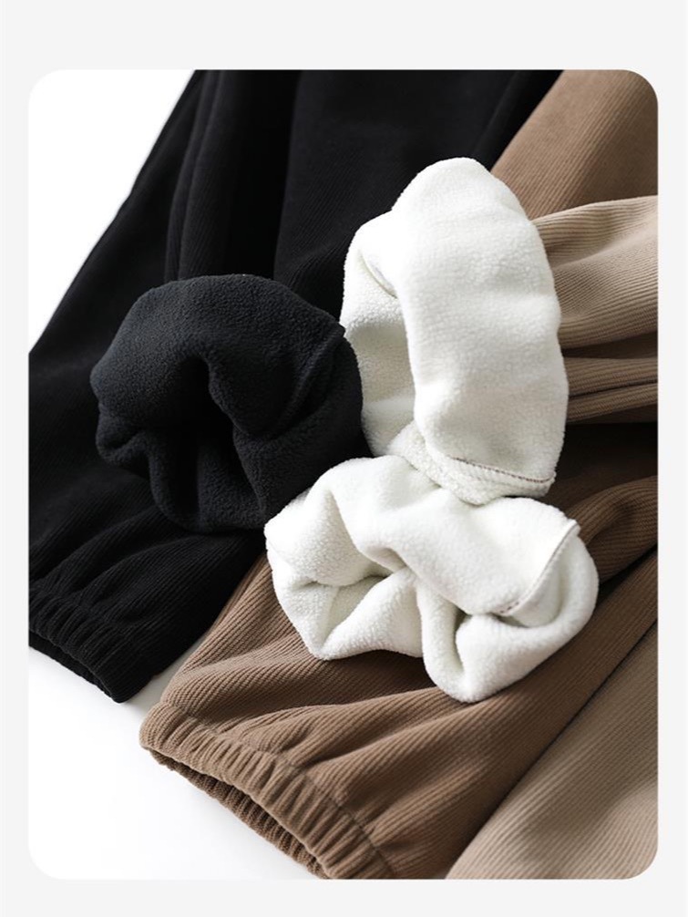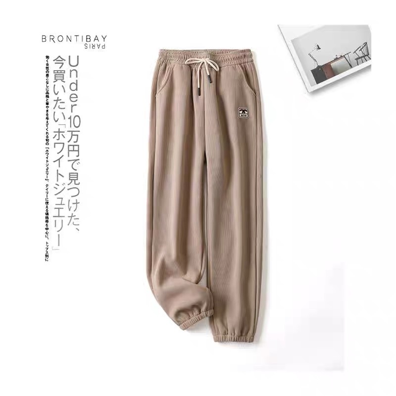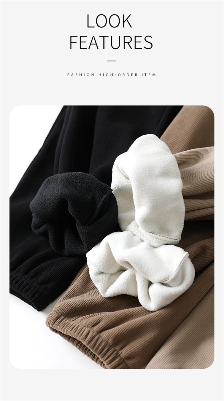 2024秋季新款休闲运动女装加绒宽松束脚卫裤女简约高腰木棉绒裤子