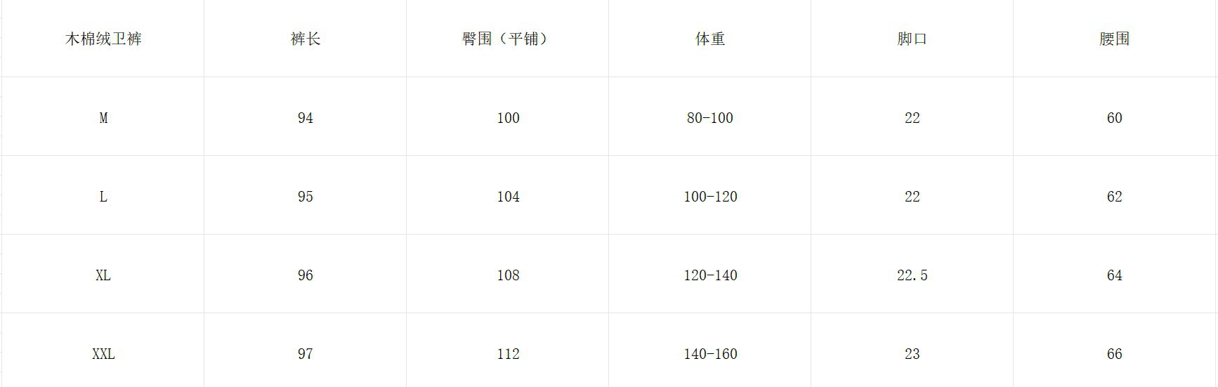 尺码表