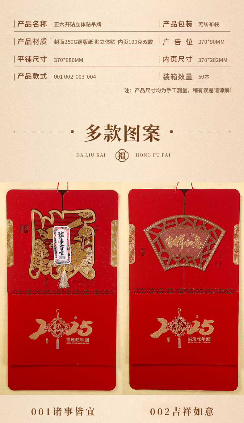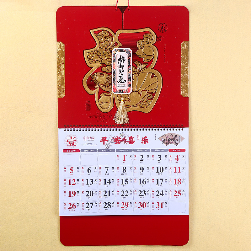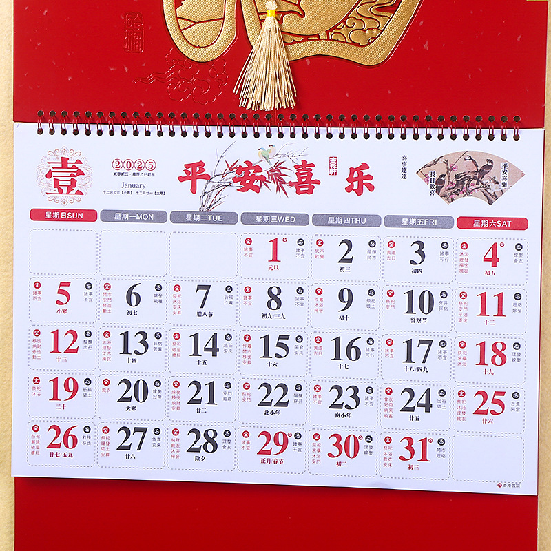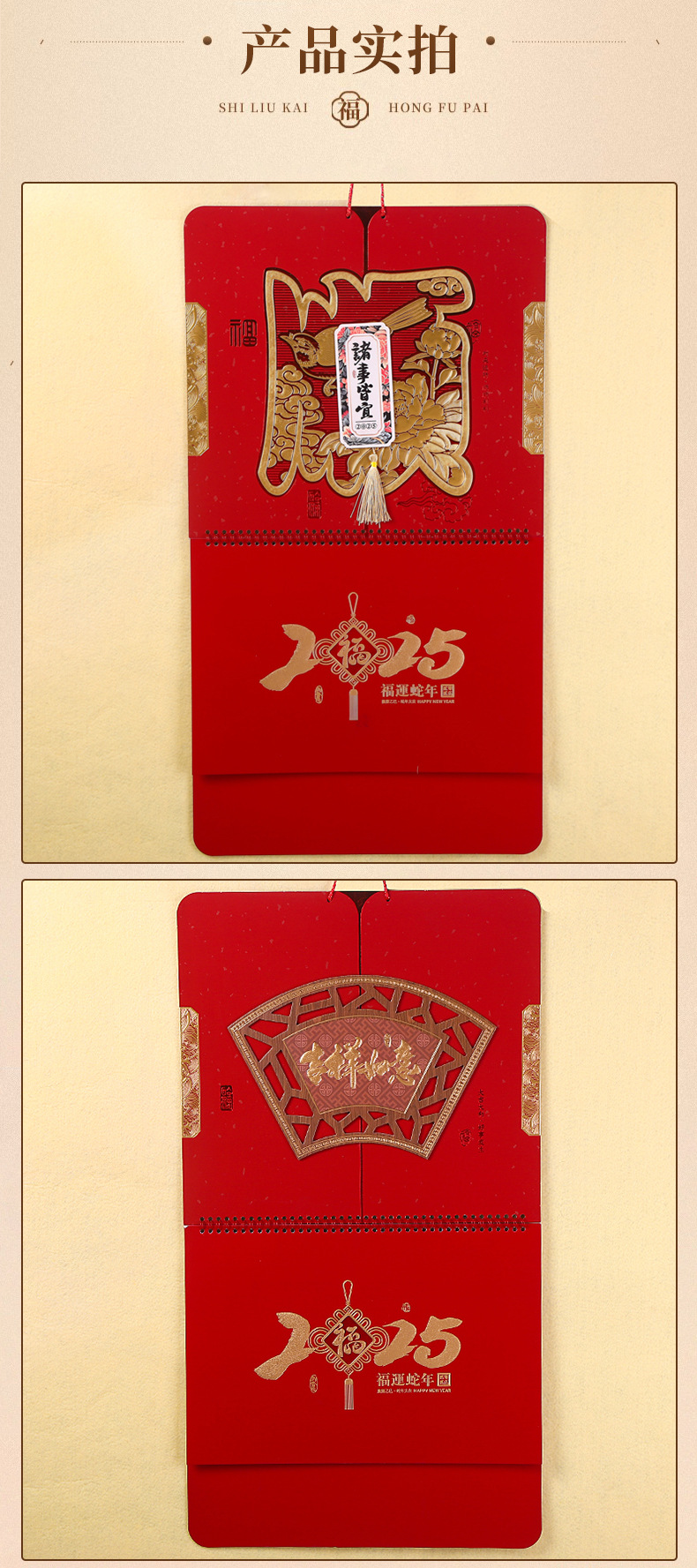 2025年吊牌挂历定制蛇年烫金家用挂墙吊牌银行企业广告挂历印LOGO