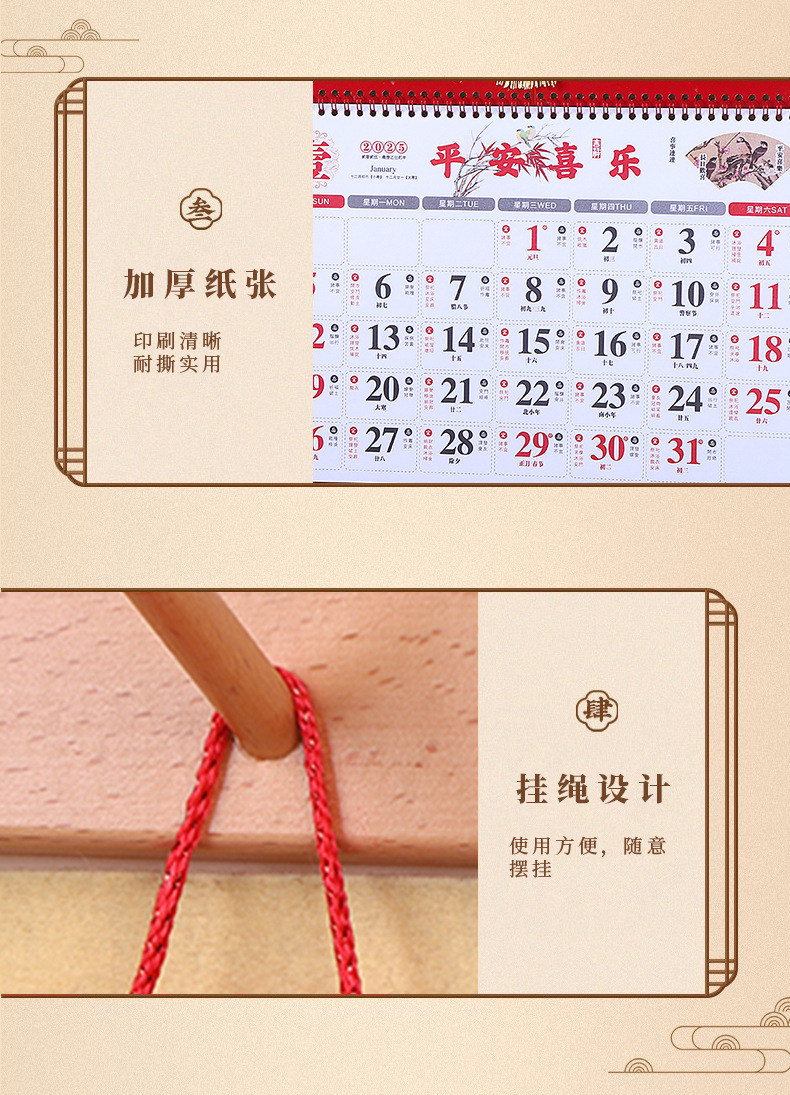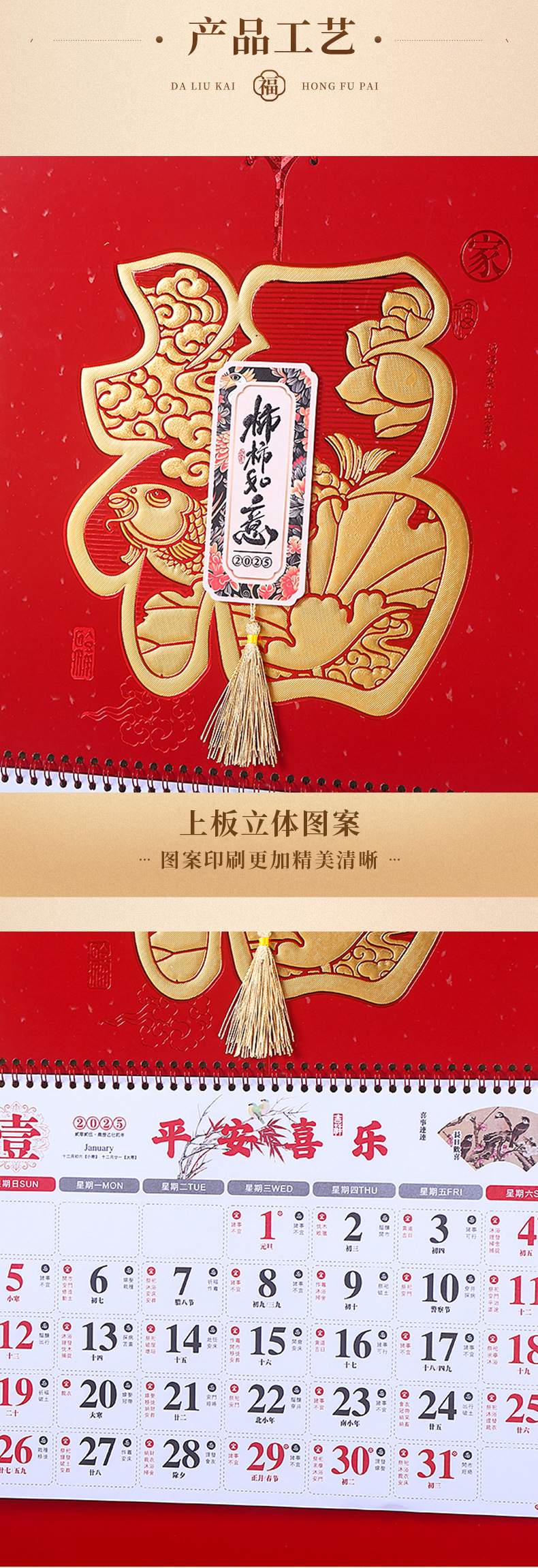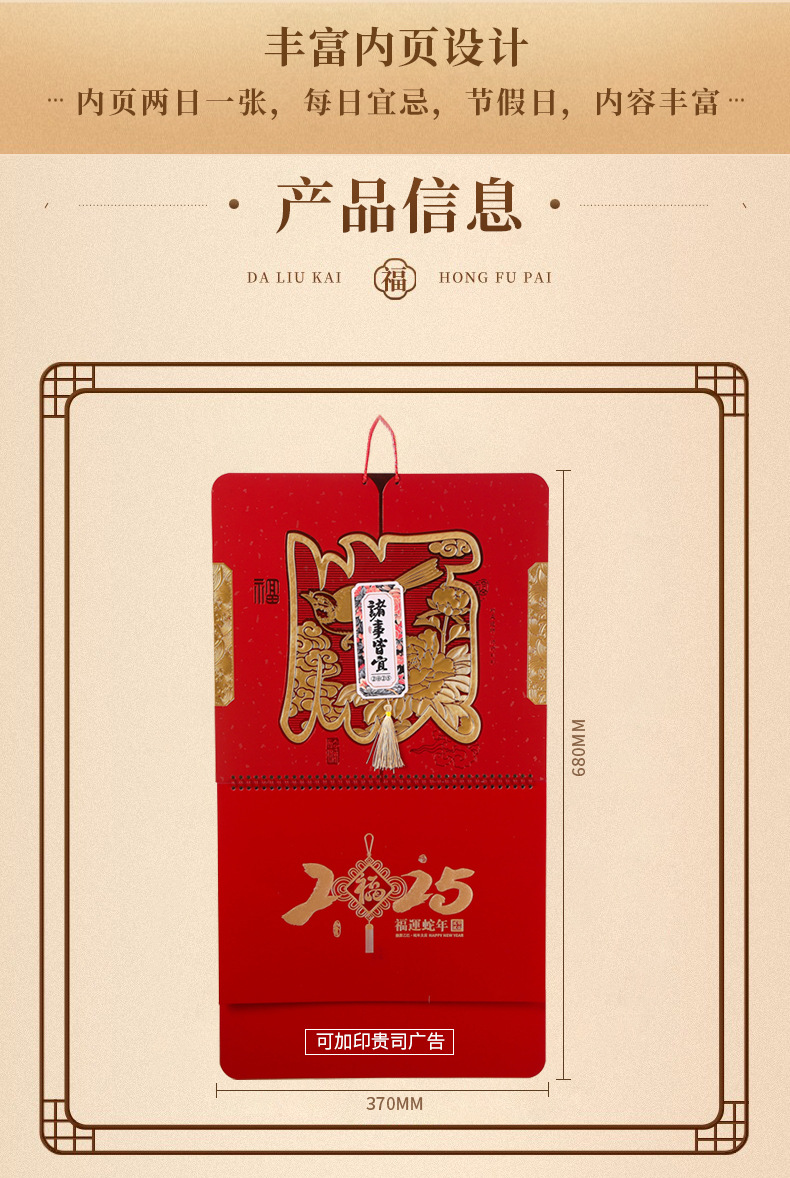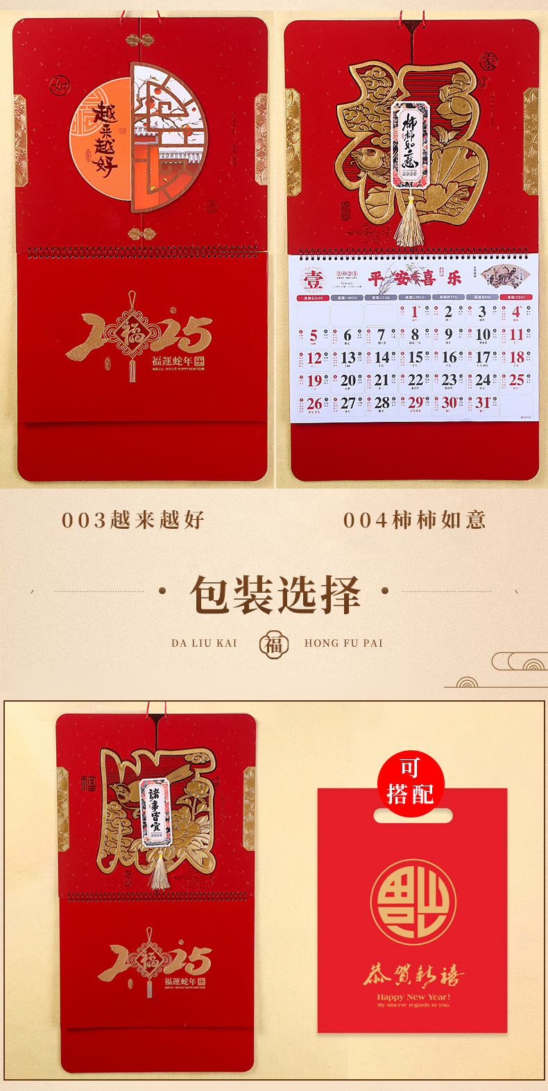 2025年吊牌挂历定制蛇年烫金家用挂墙吊牌银行企业广告挂历印LOGO