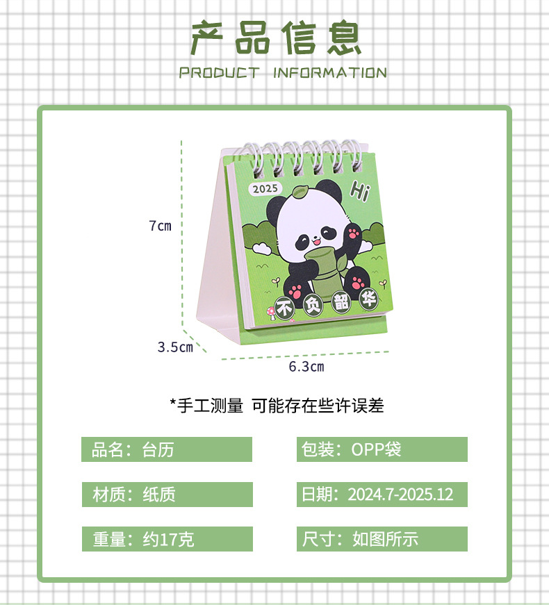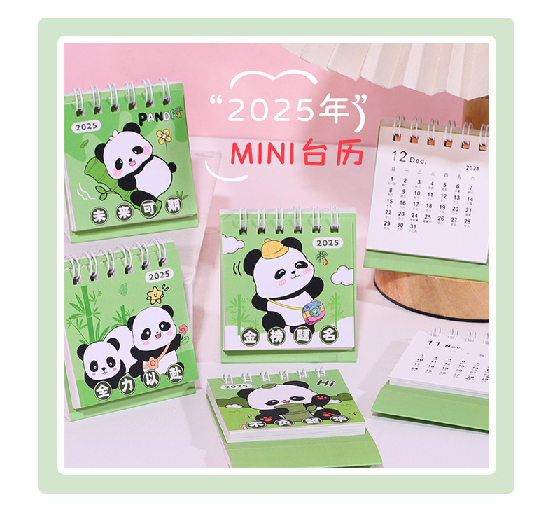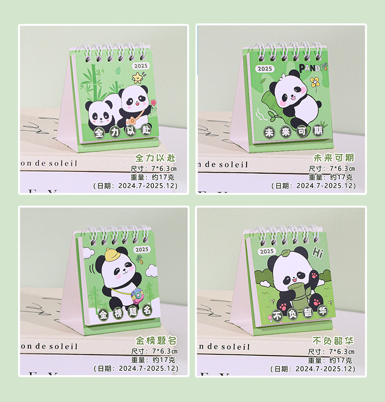 2025年可爱熊猫台历桌面摆件日历新款打卡创意礼物学生开学小礼品