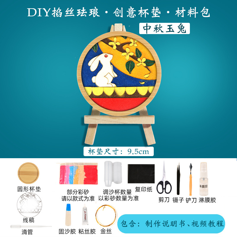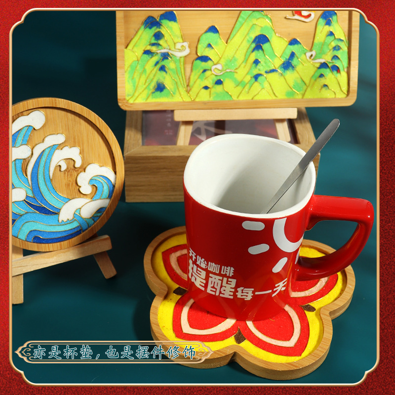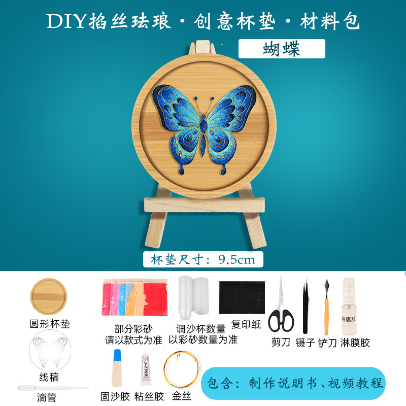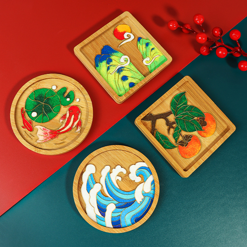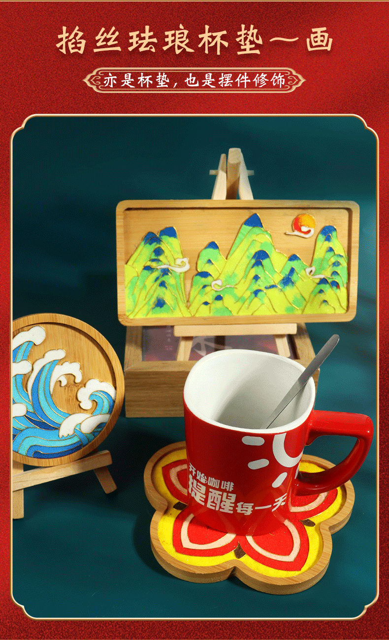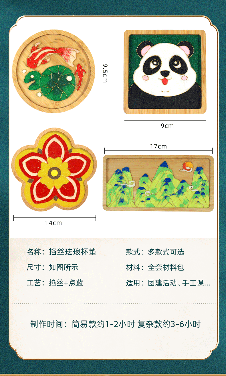掐丝珐琅杯垫元旦手工活动diy全套材料包景泰蓝非遗工艺品小礼品