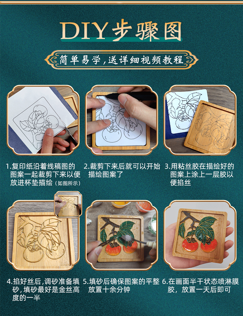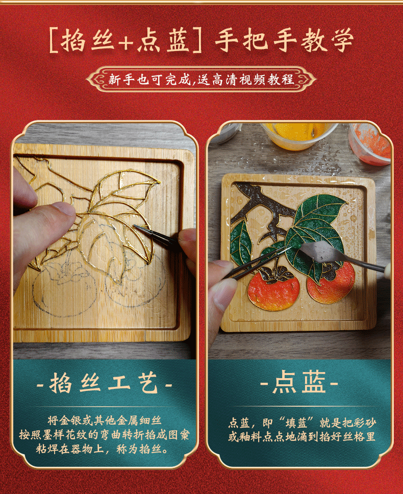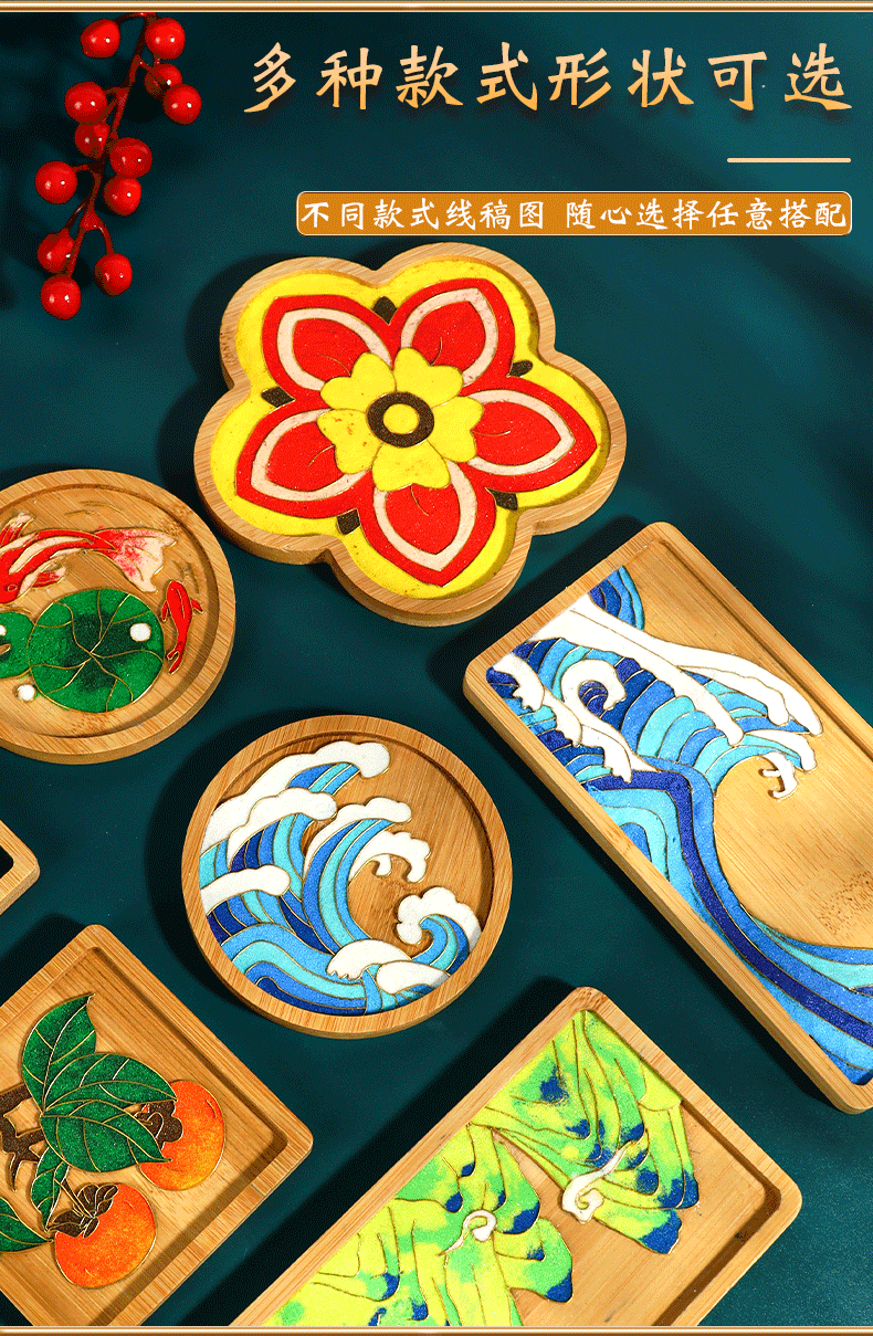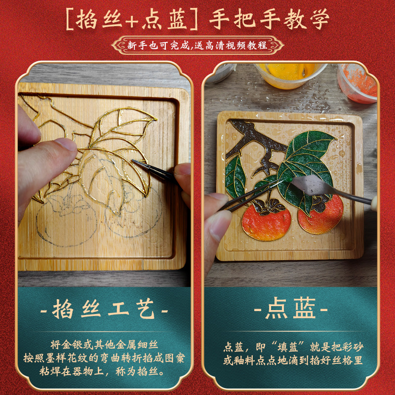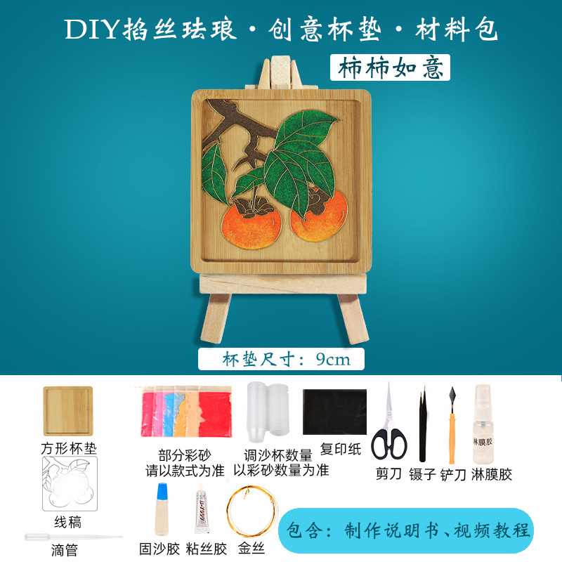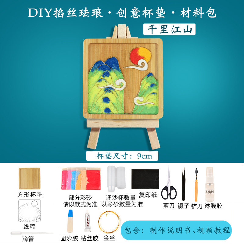 掐丝珐琅杯垫元旦手工活动diy全套材料包景泰蓝非遗工艺品小礼品
