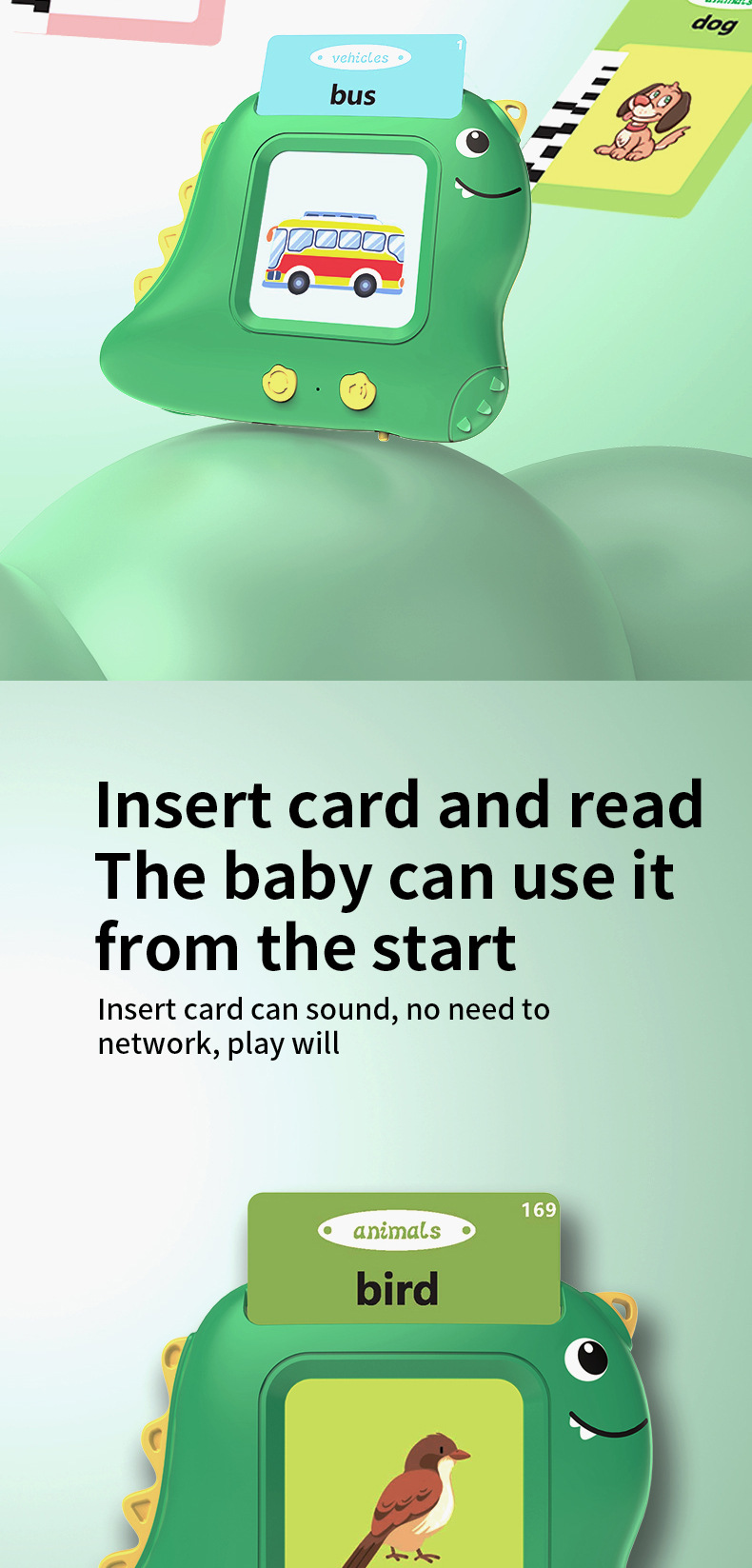 亚马逊小恐龙卡片机幼儿玩具说话插卡读报英文益智启蒙儿童早教机