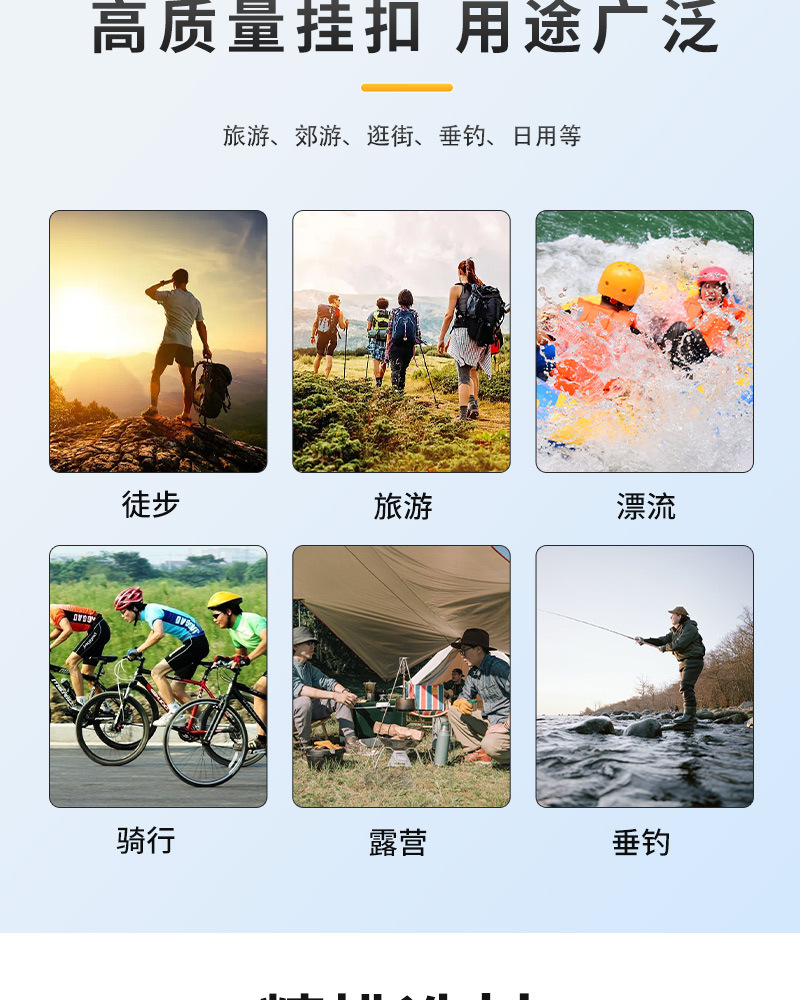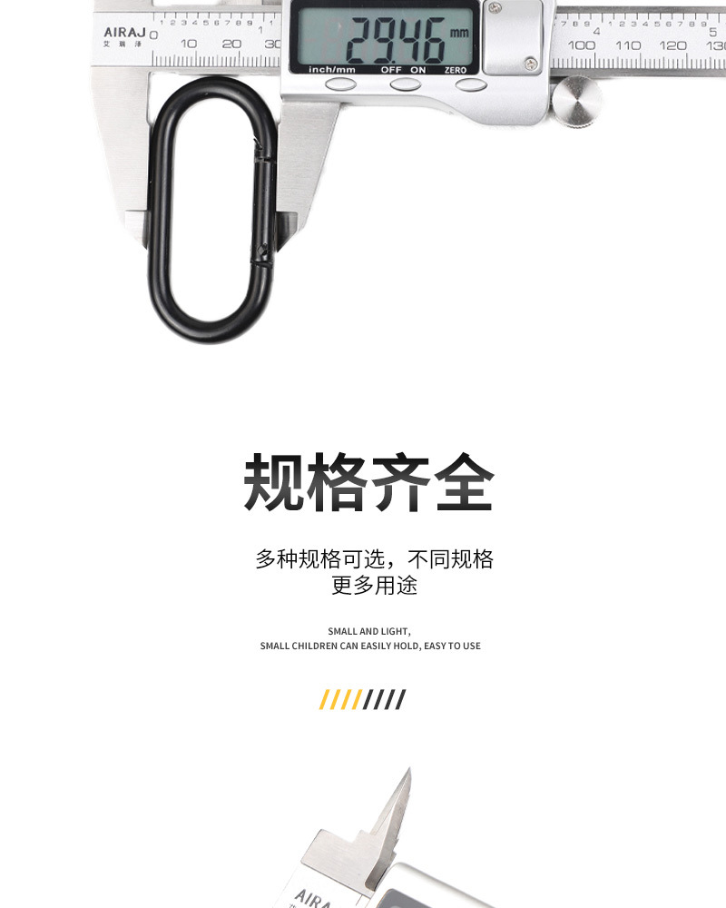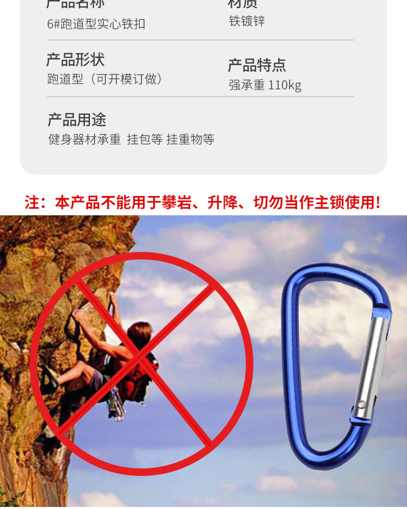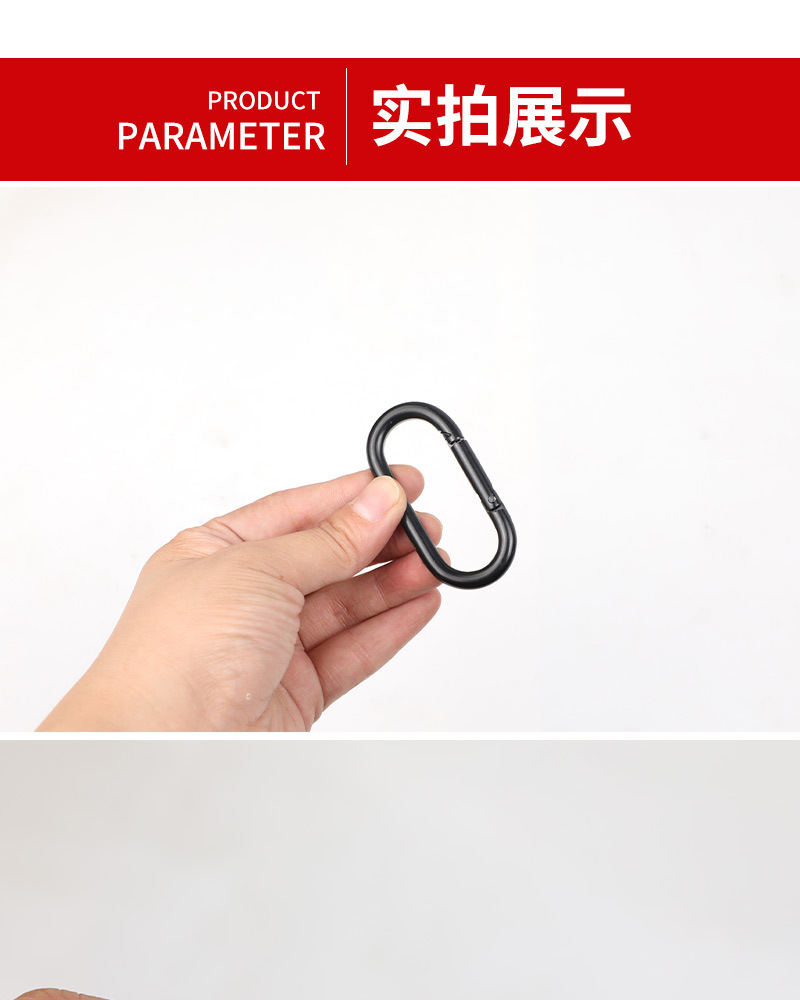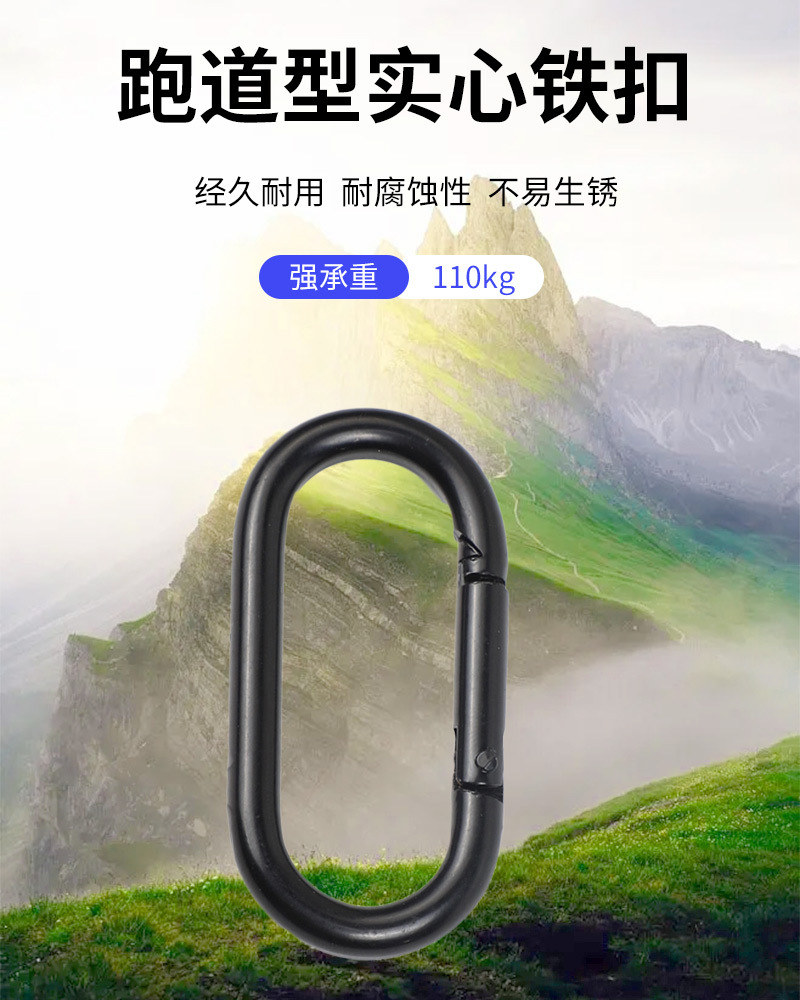 6*60mm跑道型户外登山扣全黑快速连接环铁链挂钩体育器材承重扣