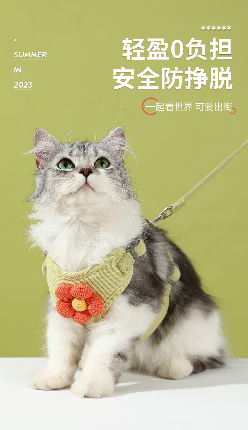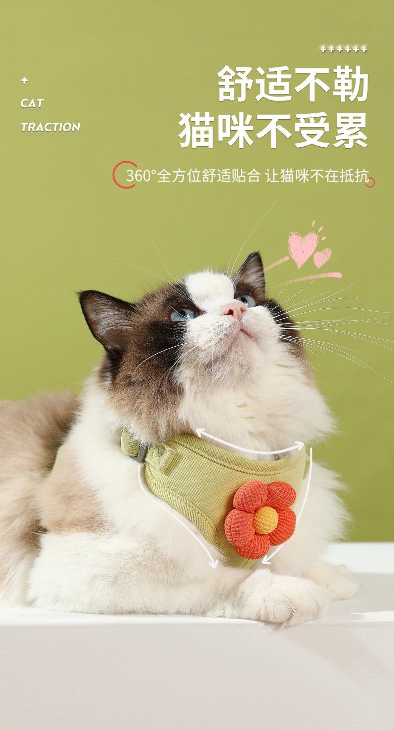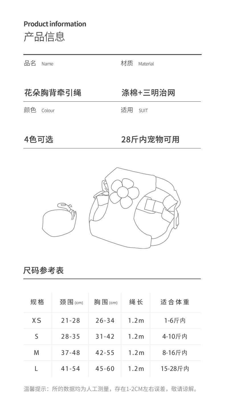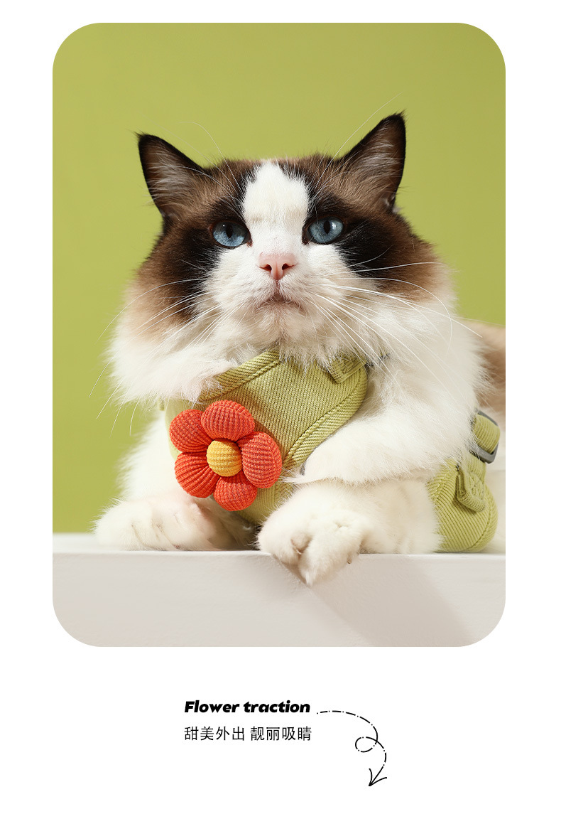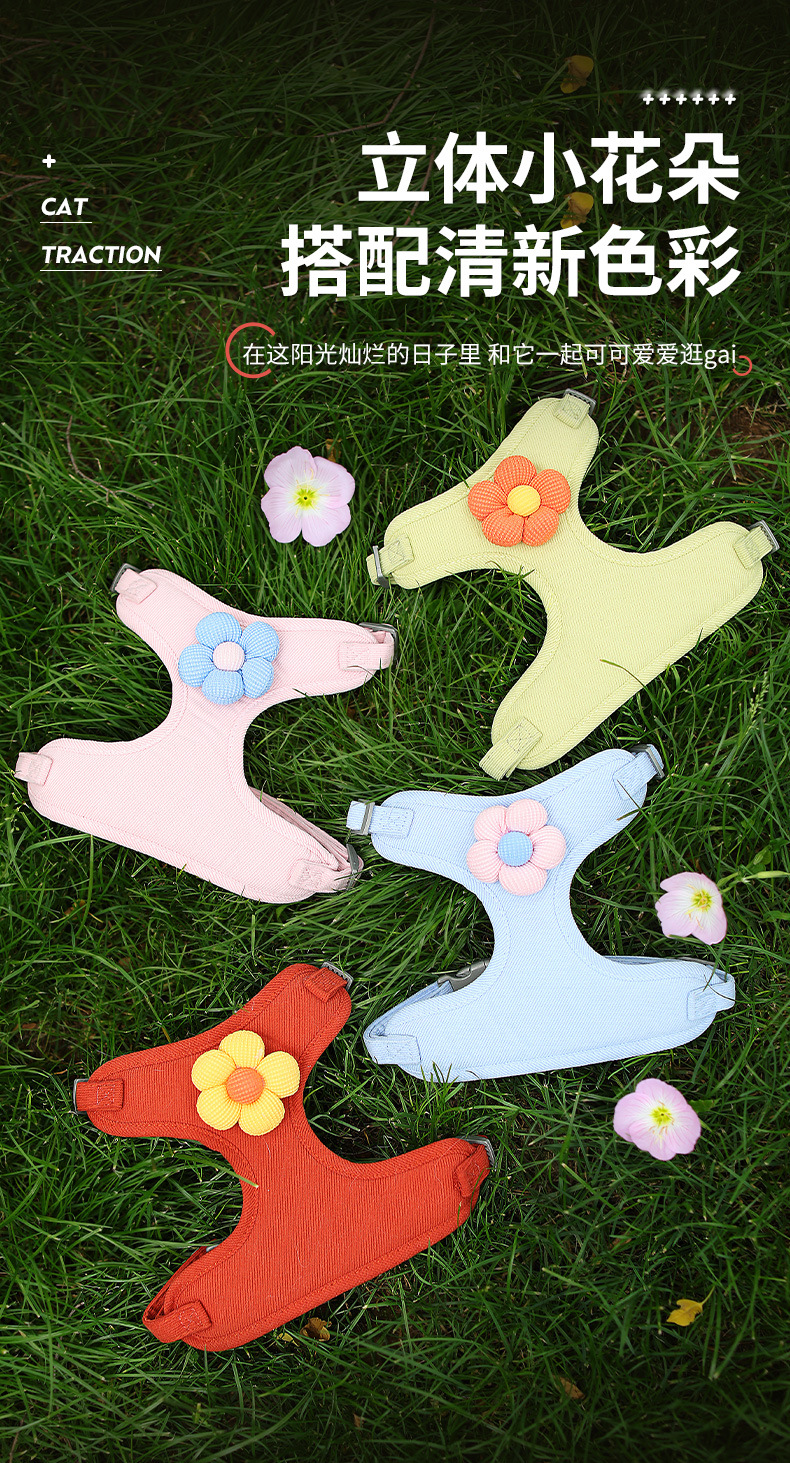 新款宠物外出小雏菊绣花牵引绳花边背心狗狗猫咪胸背带小型犬用品
