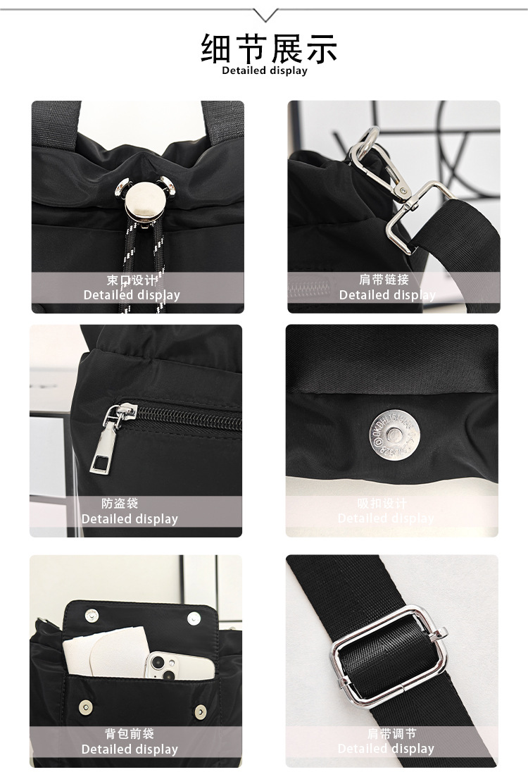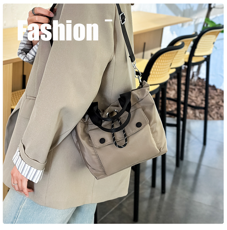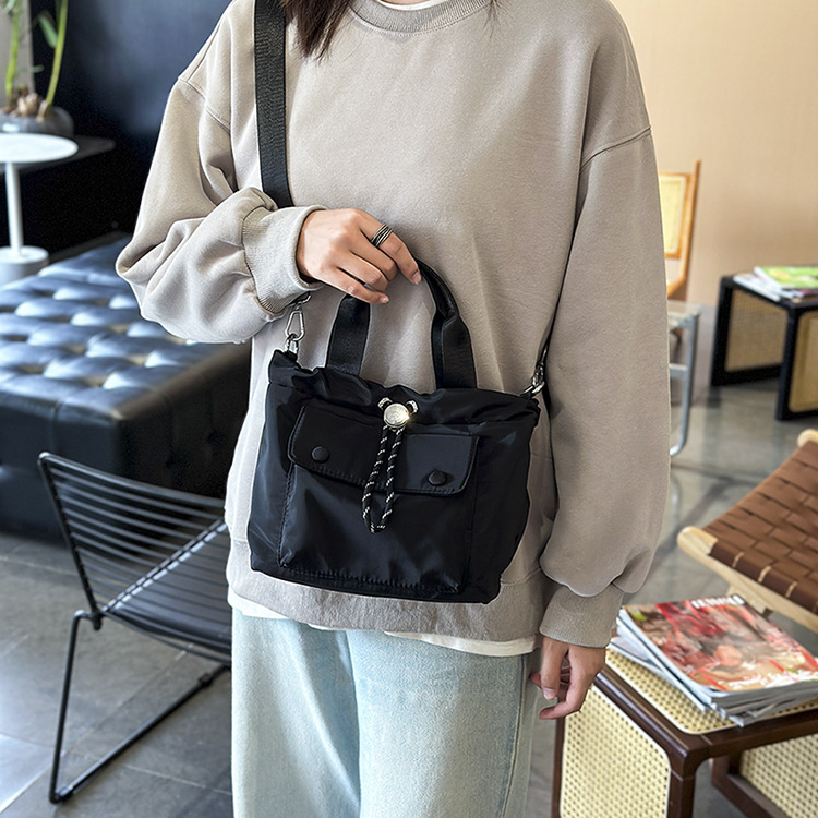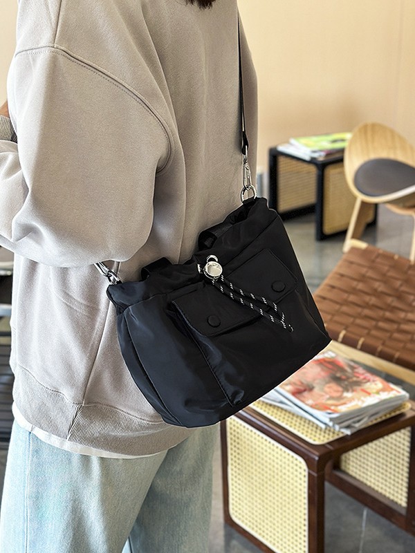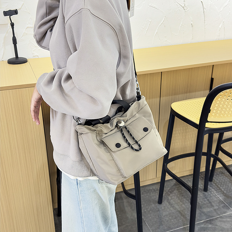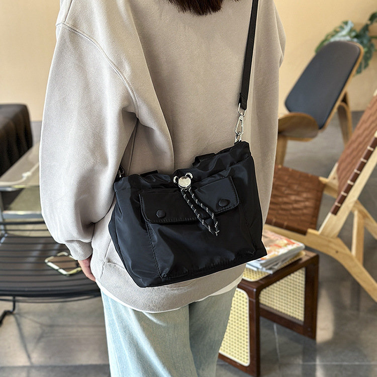 轻便尼龙布包包2024新款小众休闲水桶包单肩包