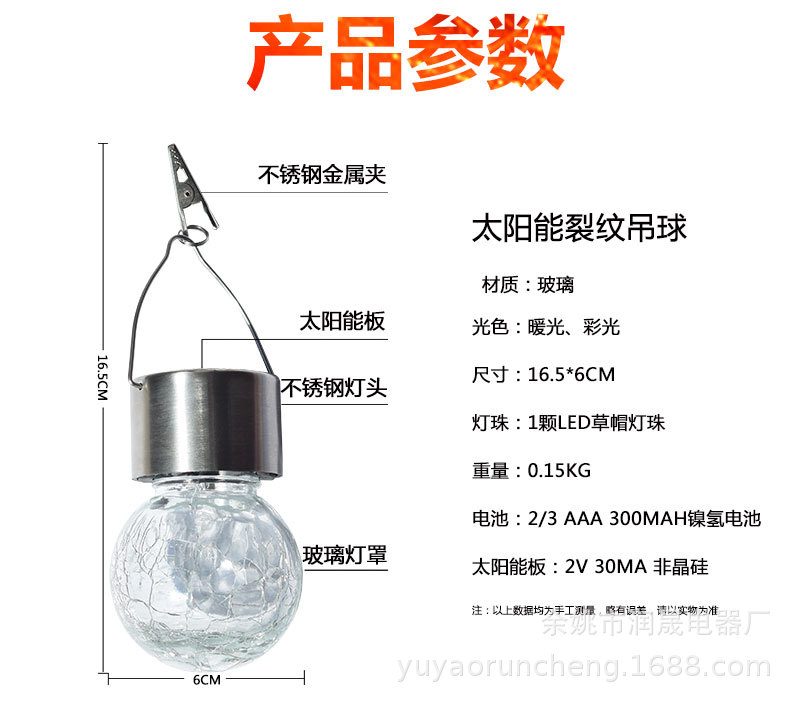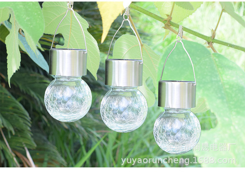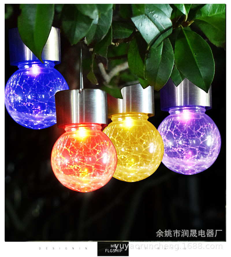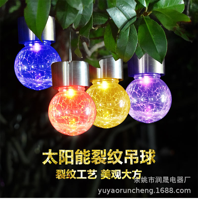 太阳能灯LED户外庭院灯裂纹玻璃吊灯花园别墅装饰景观灯树灯挂灯