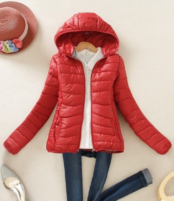 秋冬款羽绒棉服女 韩版连帽修身薄款棉衣女纯色外套