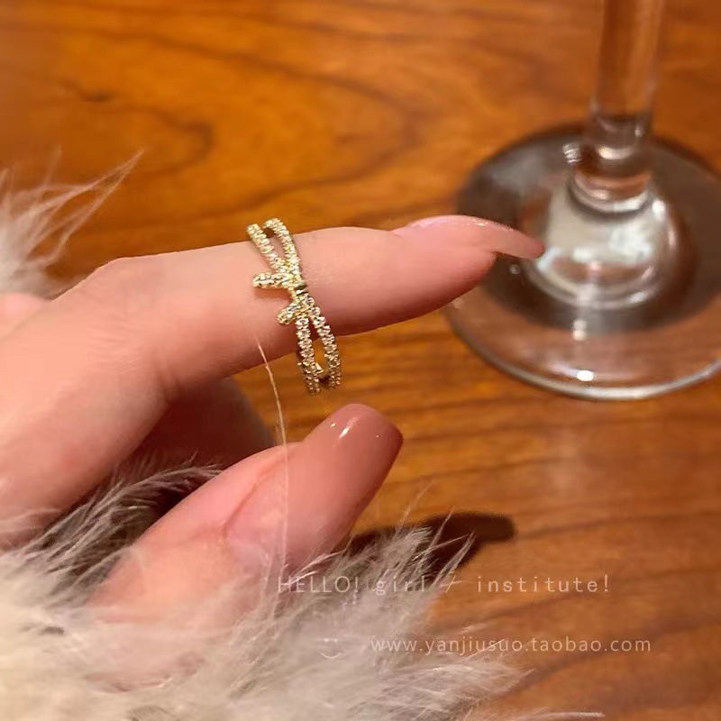 ins风珍珠锆石蝴蝶戒指女小众高级感轻奢情侣对戒气质开口戒批发