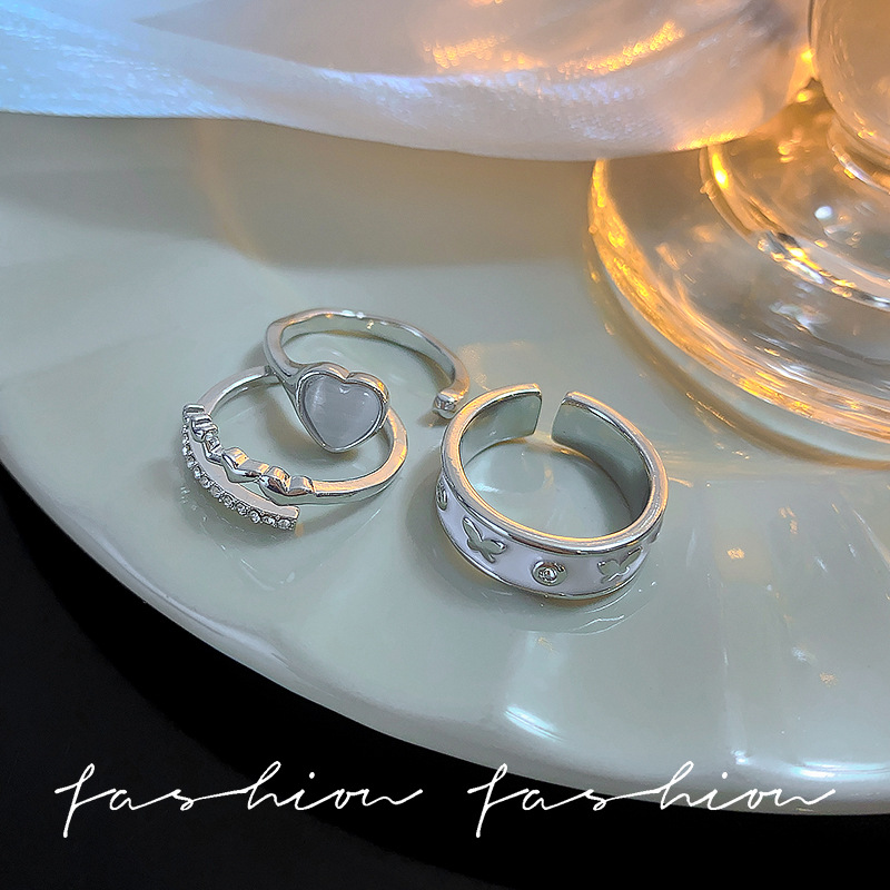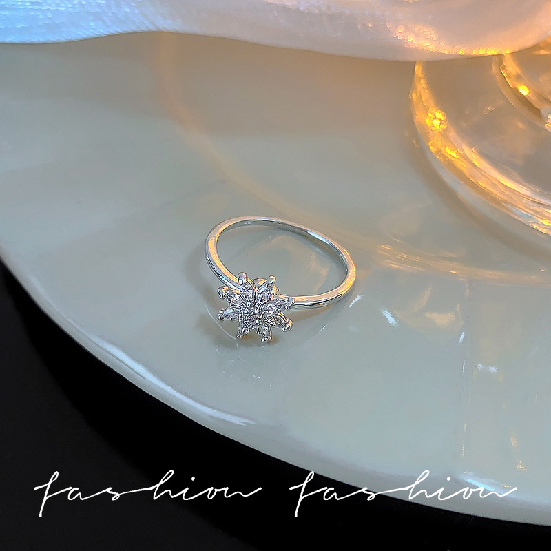 轻奢蝴蝶锆石开口戒指女小众轻奢高级感银色食指环ins风新款手饰