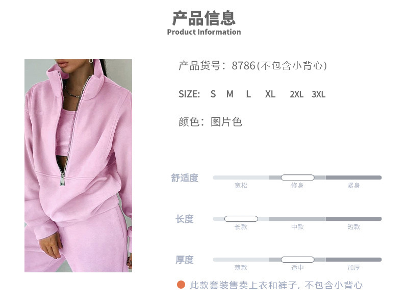 2024年跨境秋冬新款亚马逊欧美女装加绒运动街头时尚休闲拉链套装