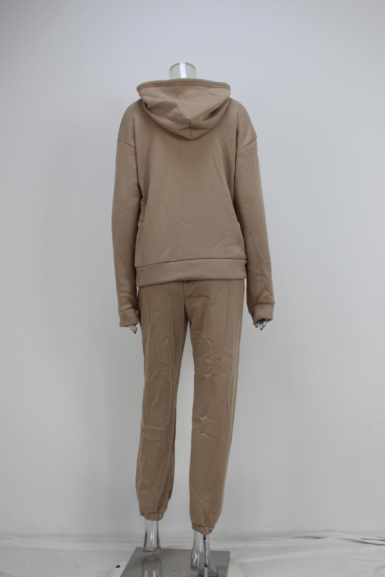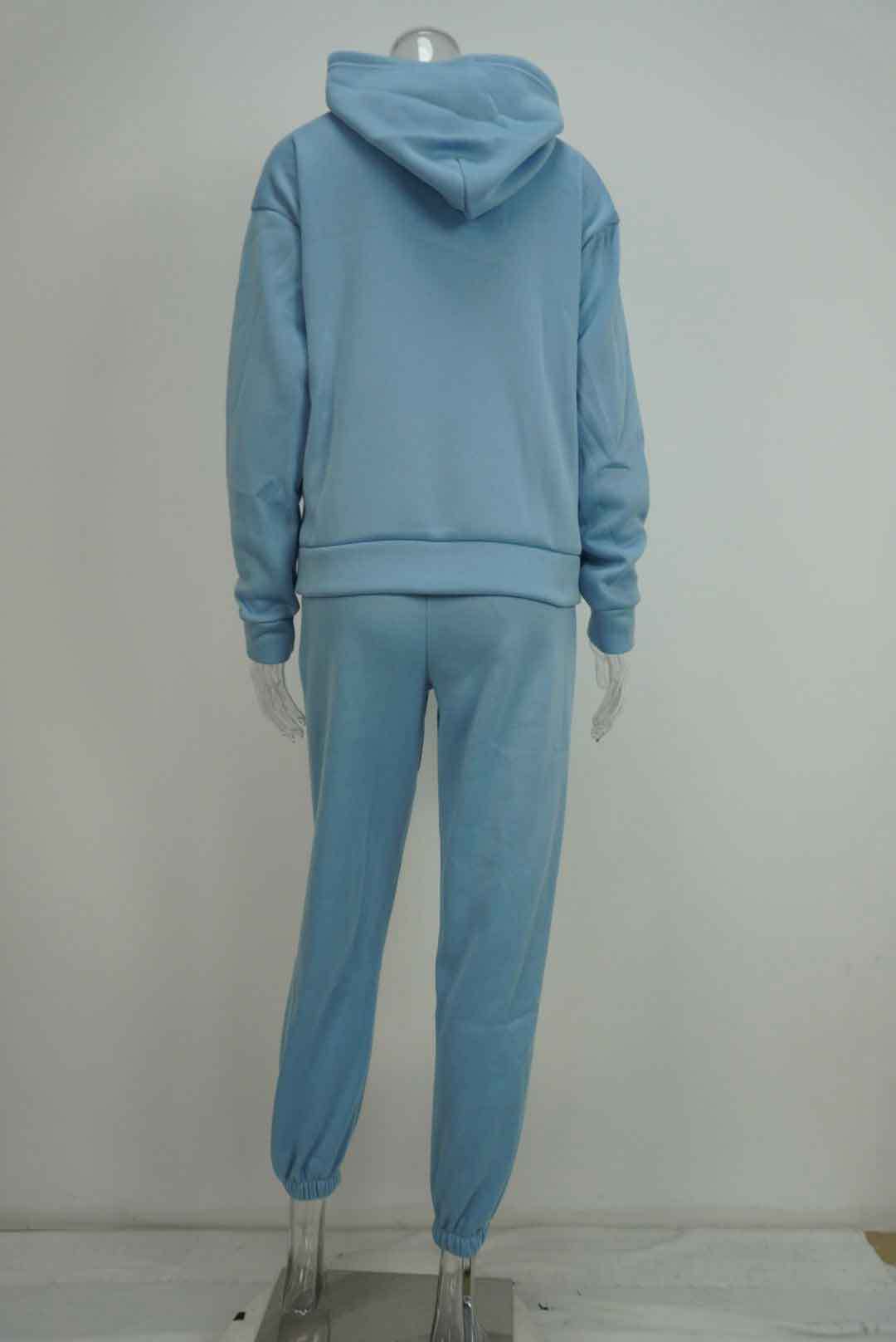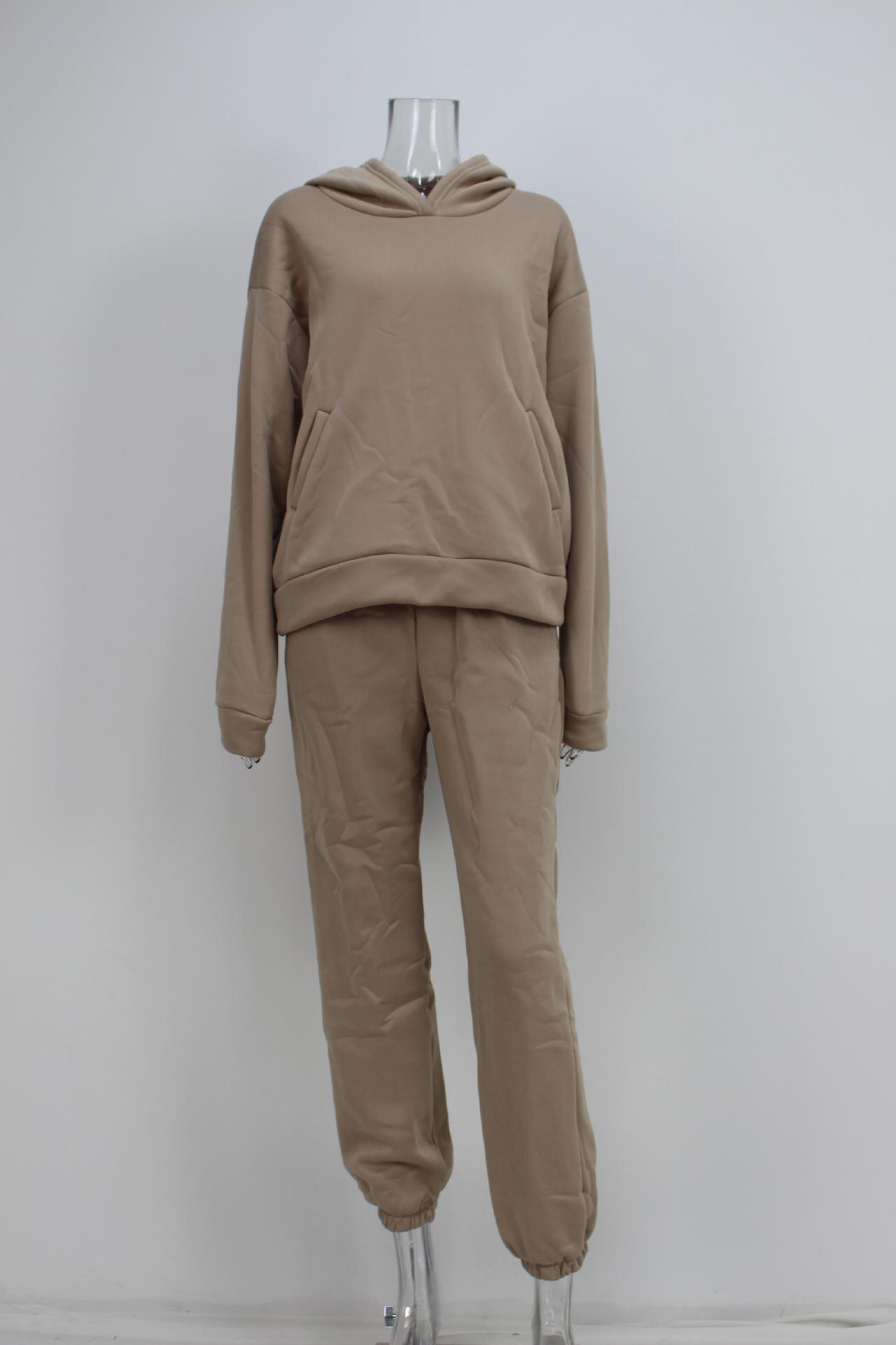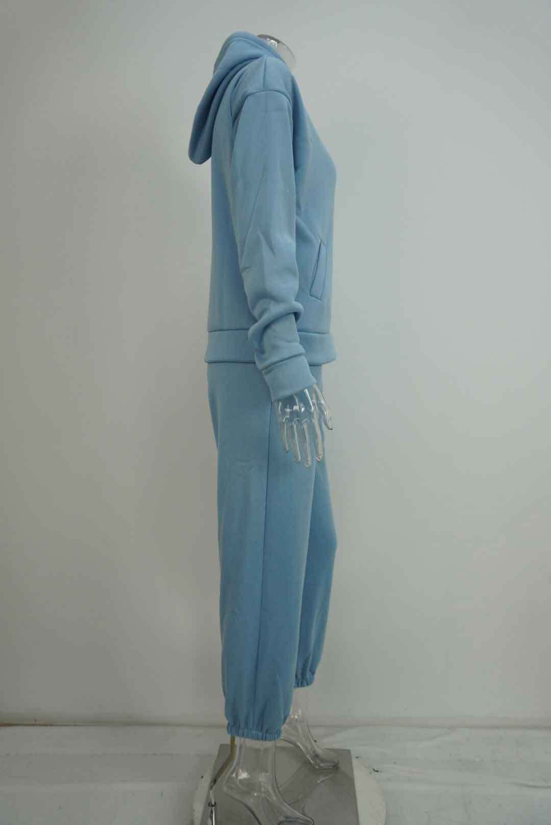 跨境欧美女装2024秋季亚马逊纯色连帽短款卫衣长袖休闲时尚套装女
