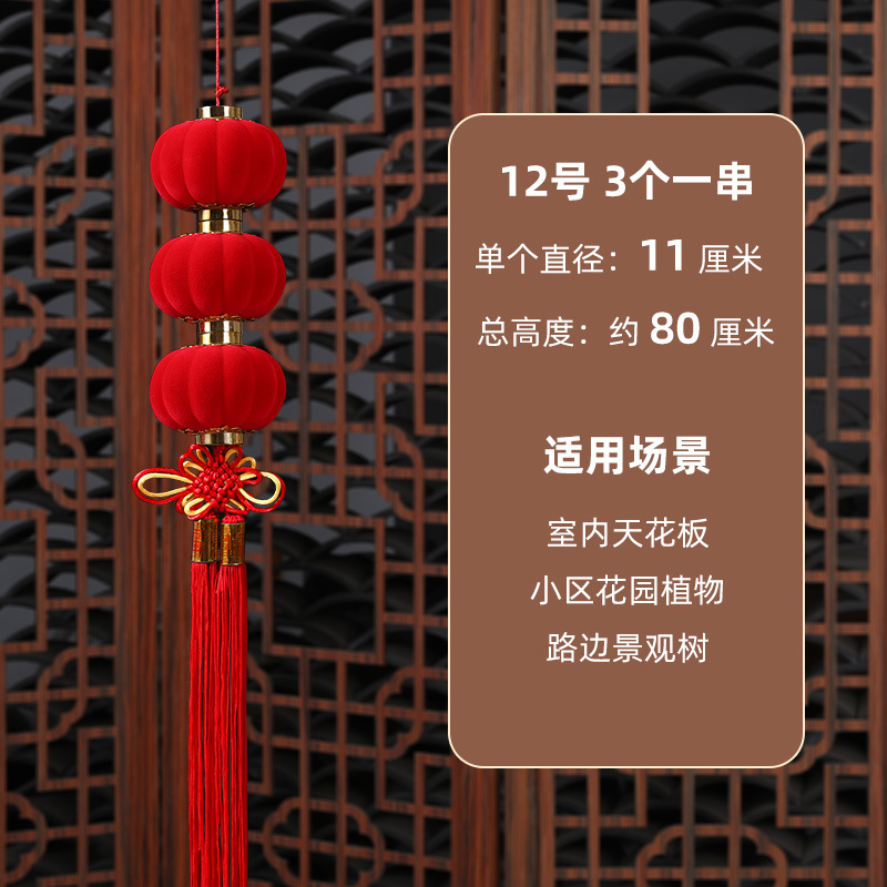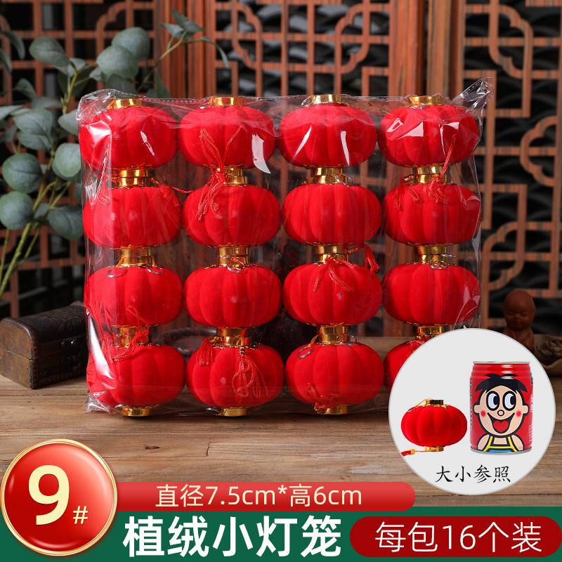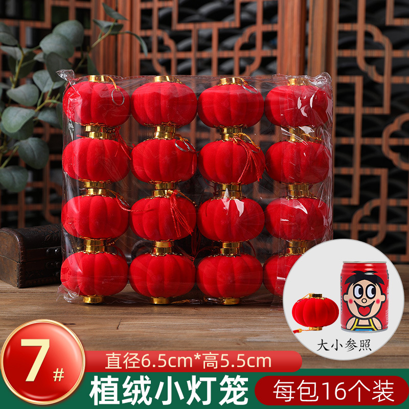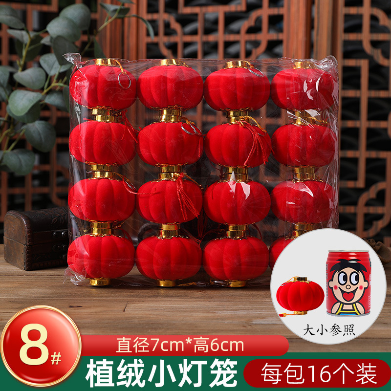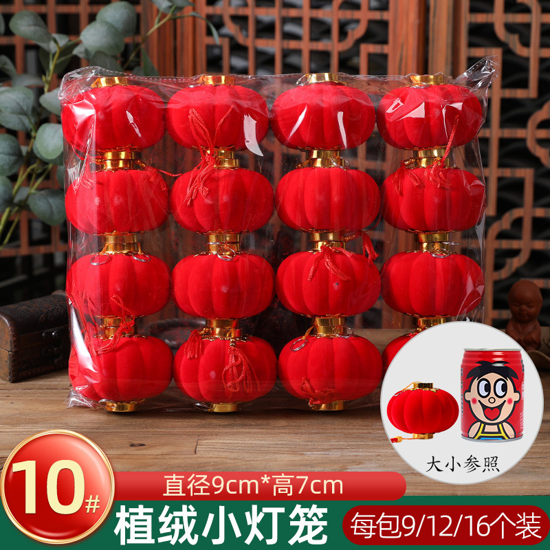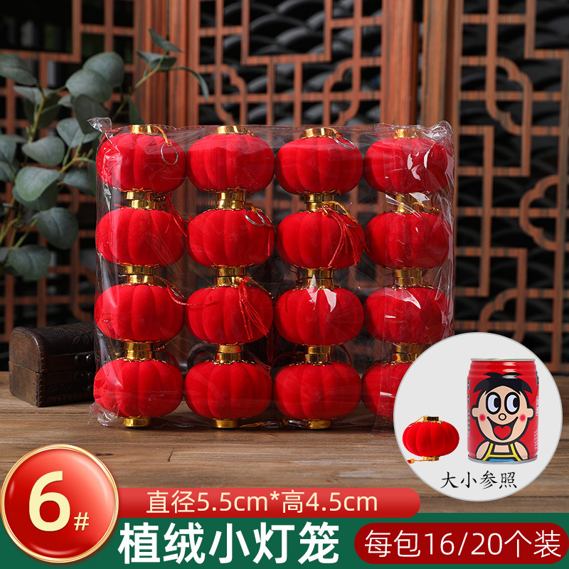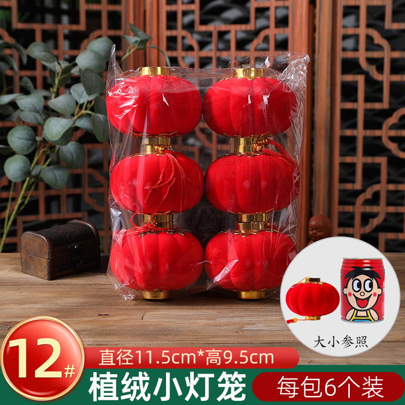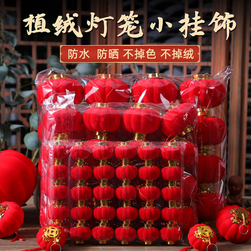 元旦新年大红植绒小灯笼挂件室内盆景户外防水结婚装饰挂饰树上