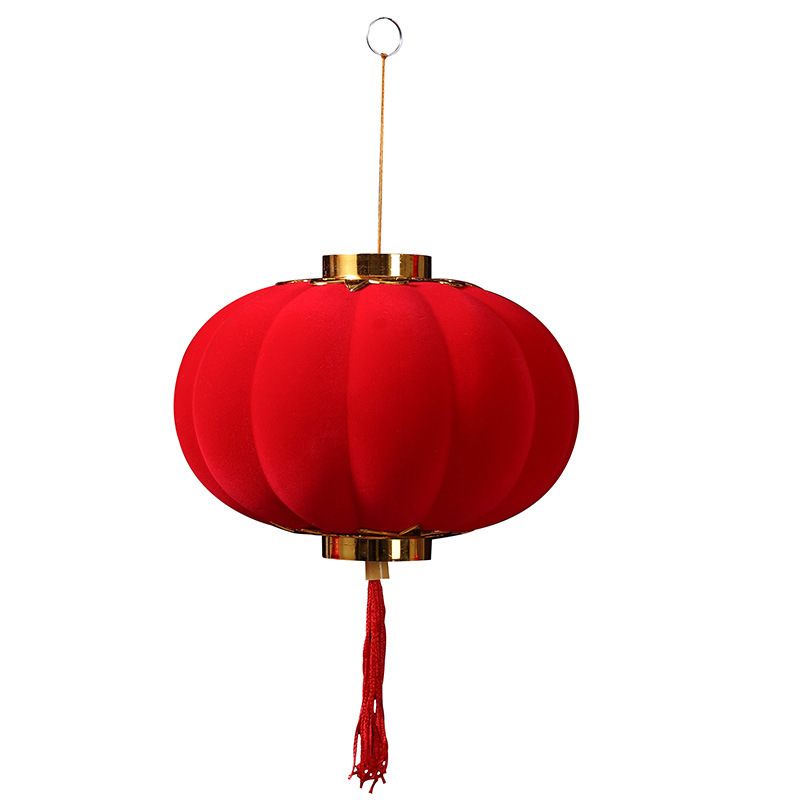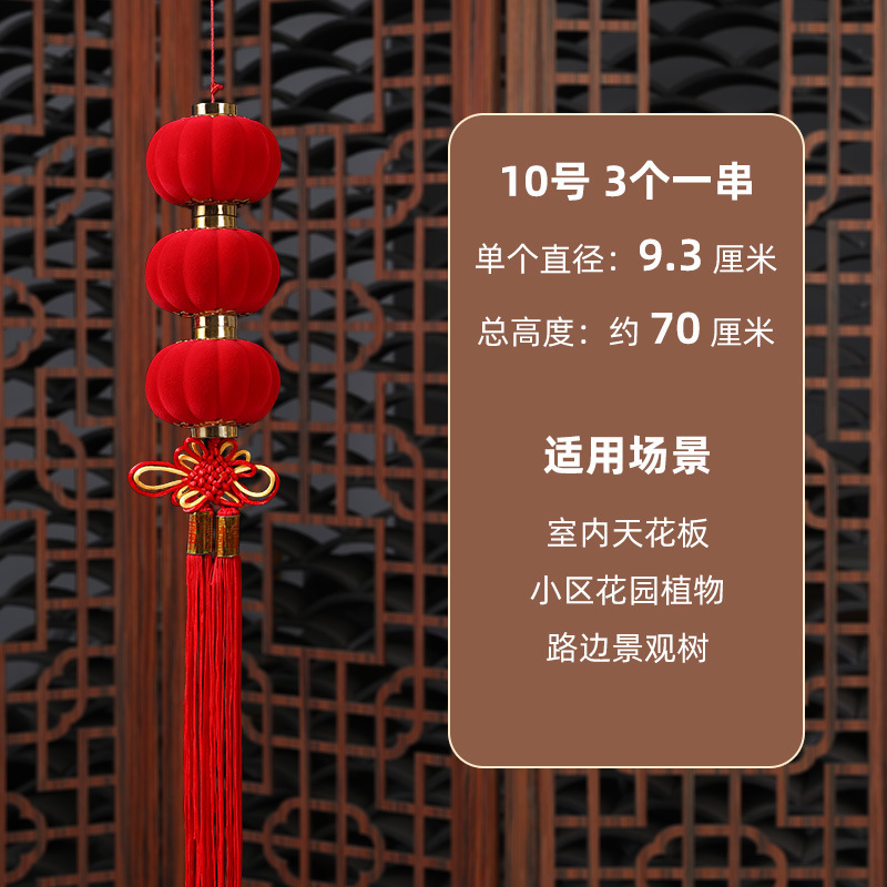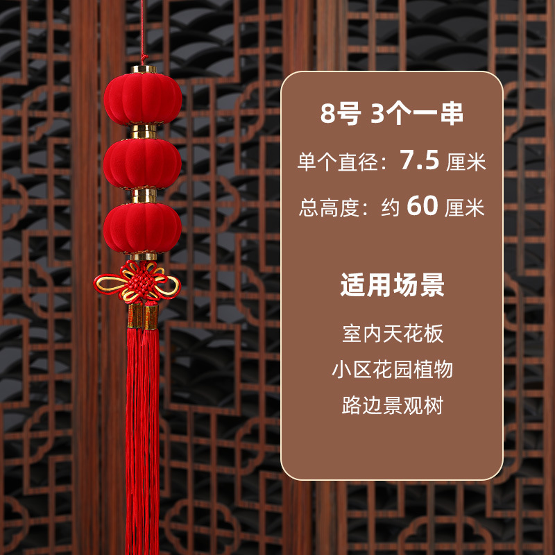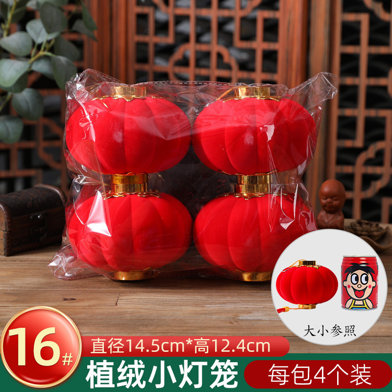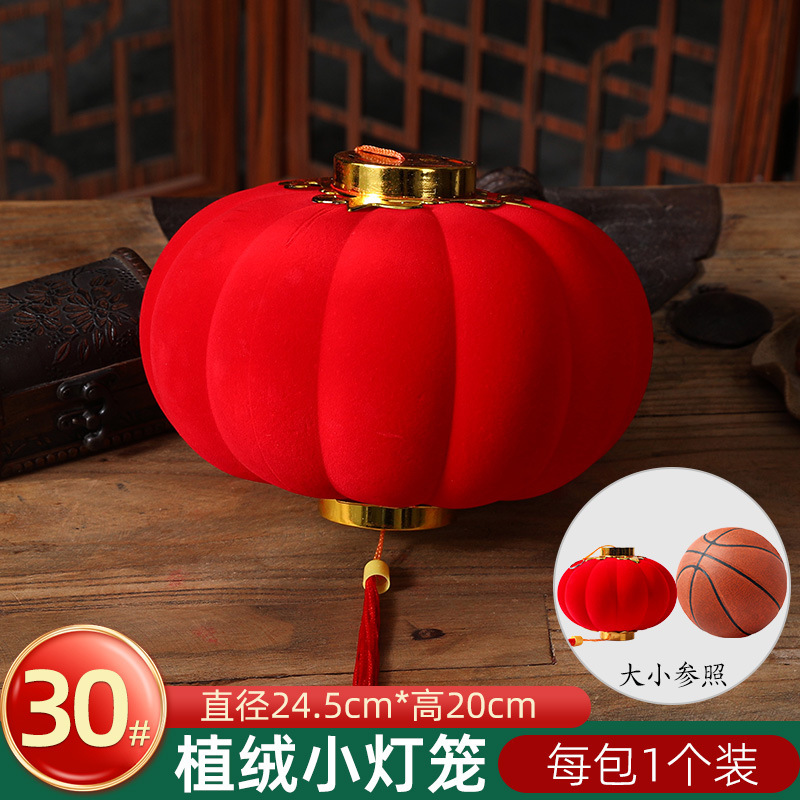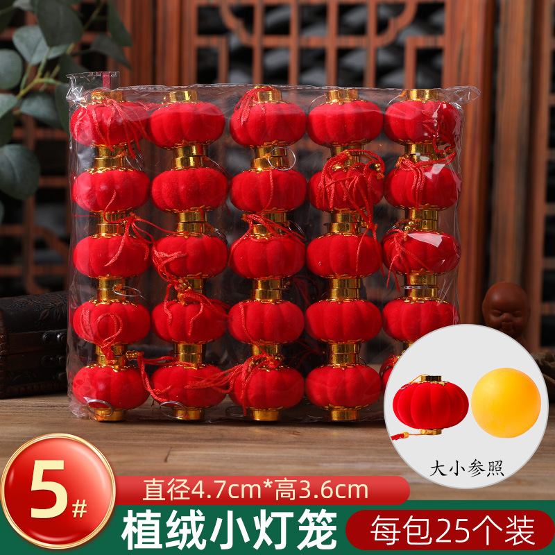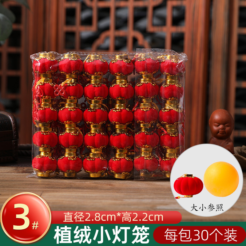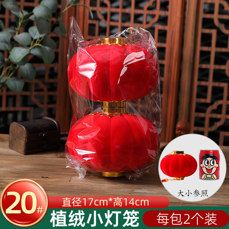 元旦新年大红植绒小灯笼挂件室内盆景户外防水结婚装饰挂饰树上