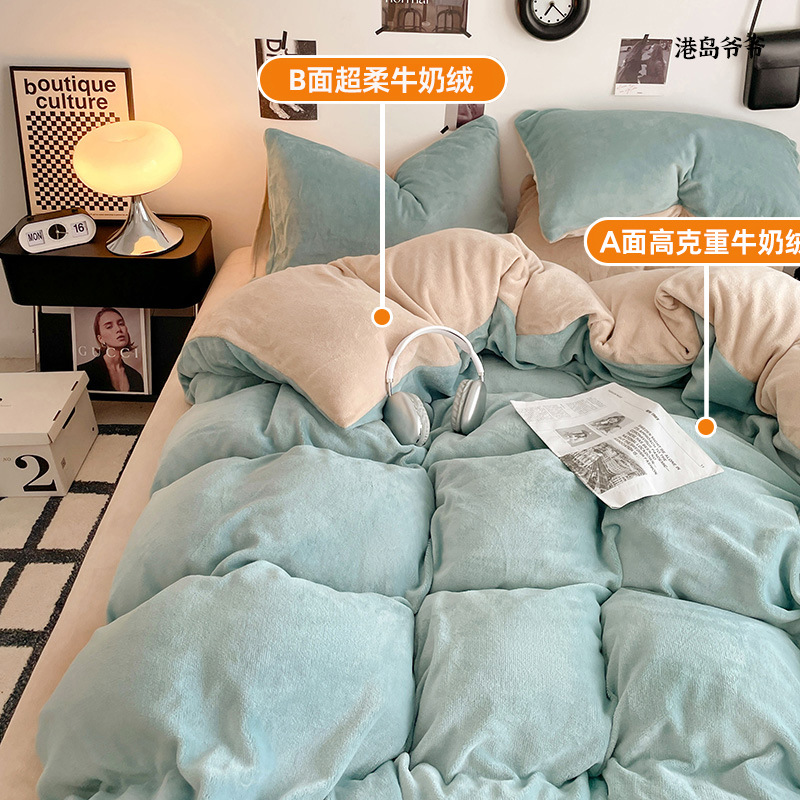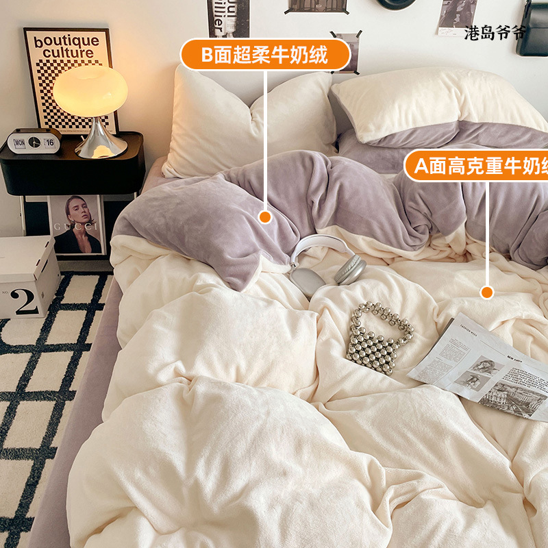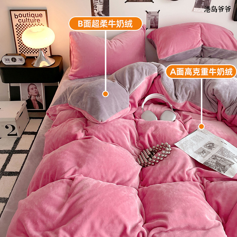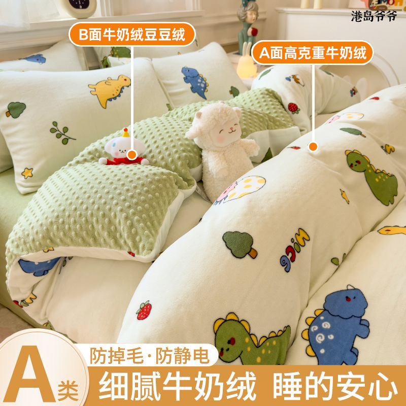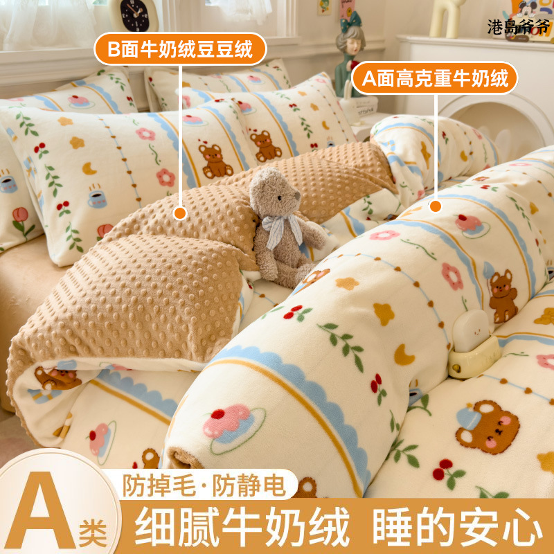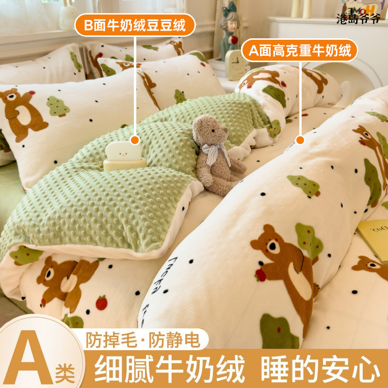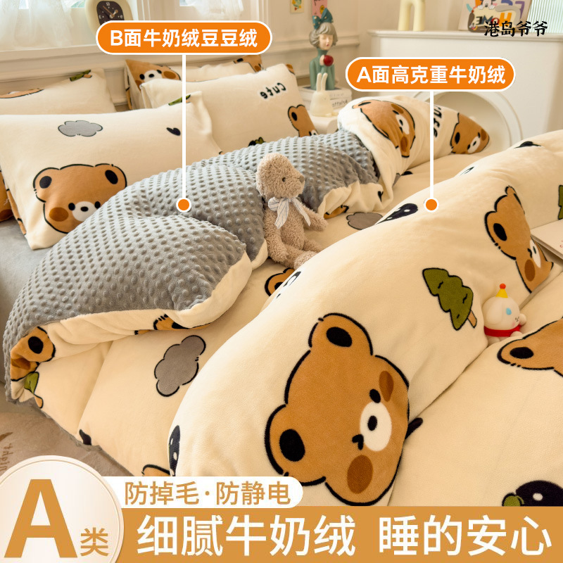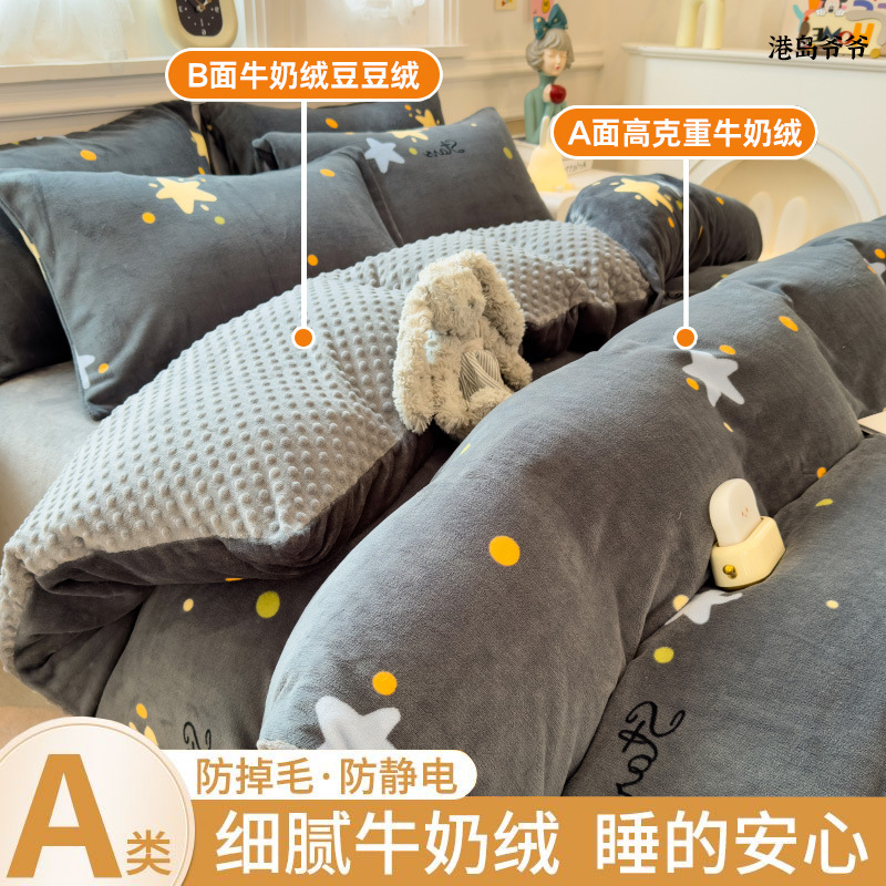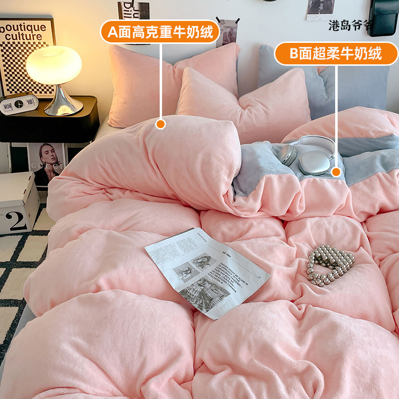 A类母婴级牛奶绒四件套双面加厚珊瑚绒床笠加绒被套床单三件套 罩