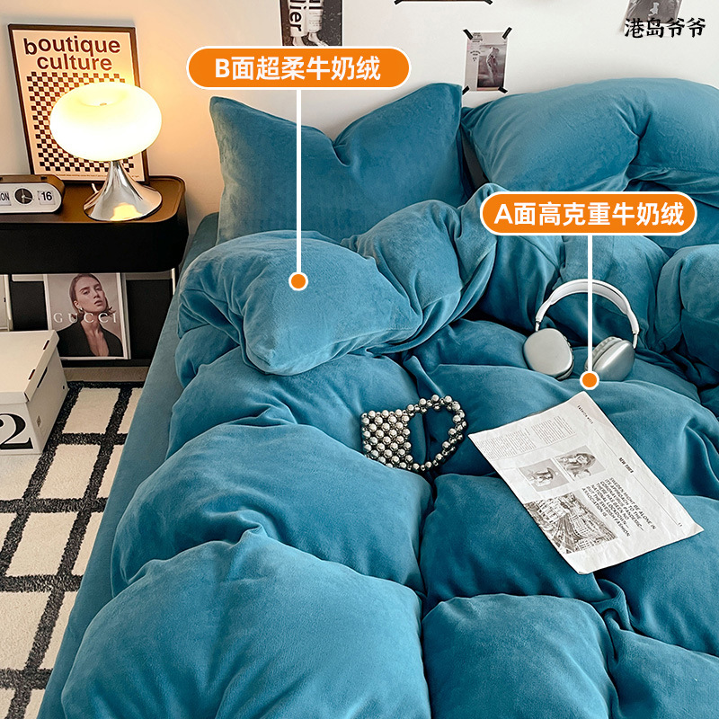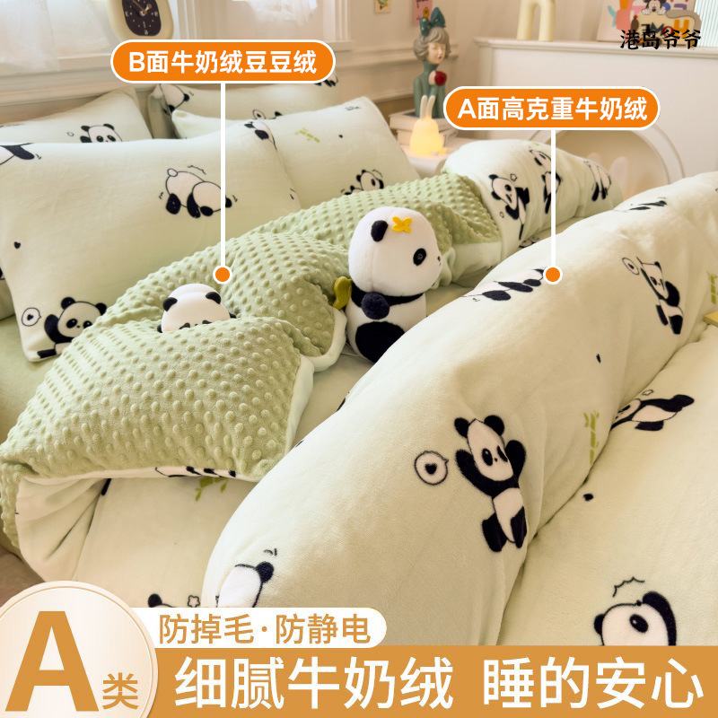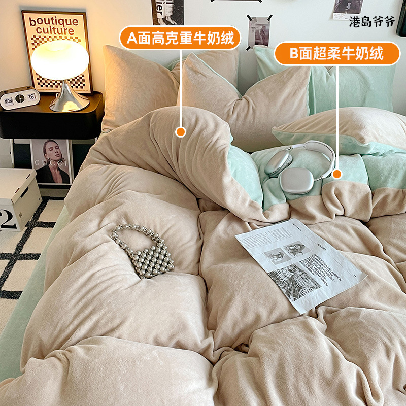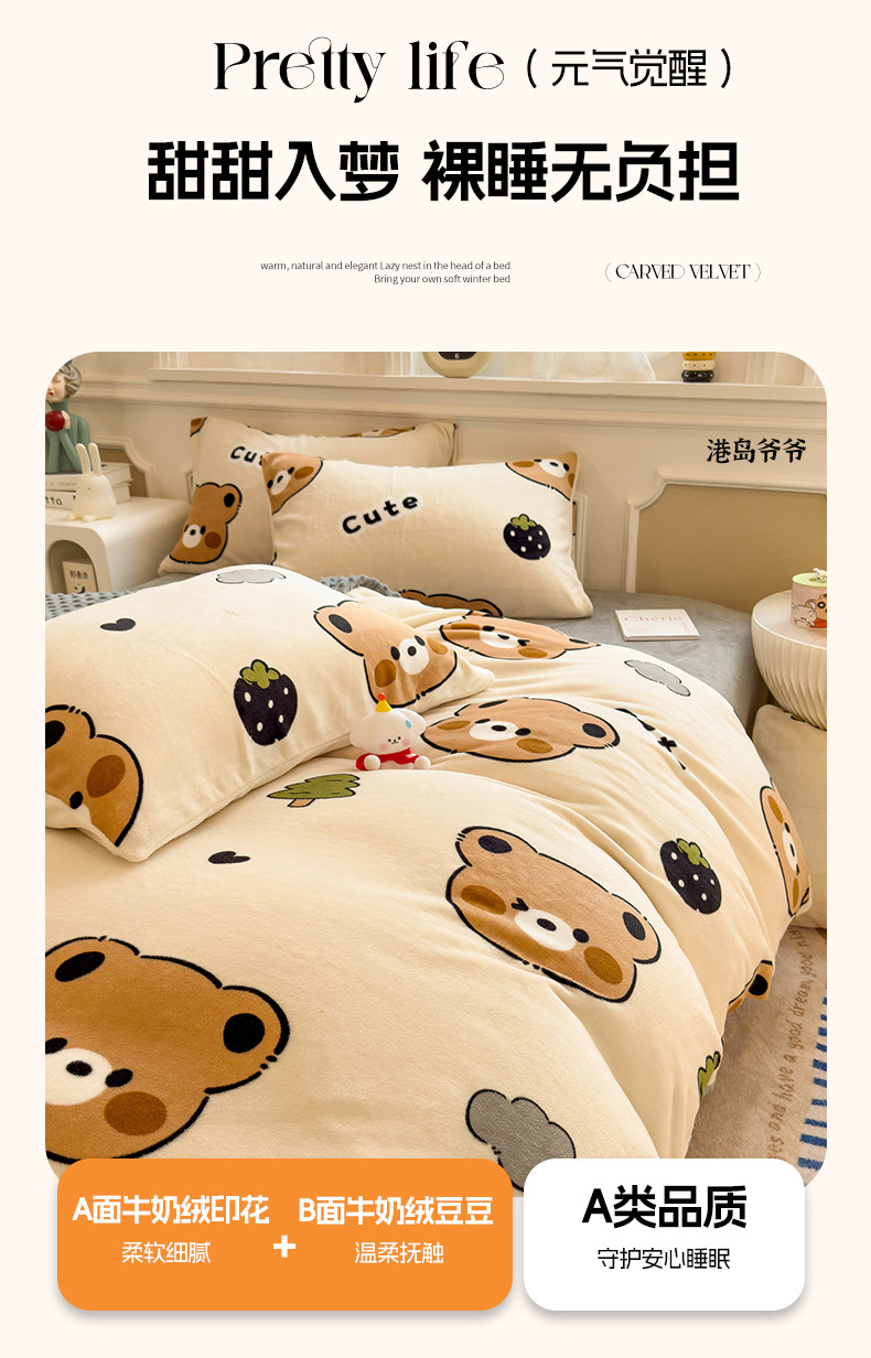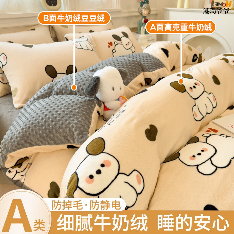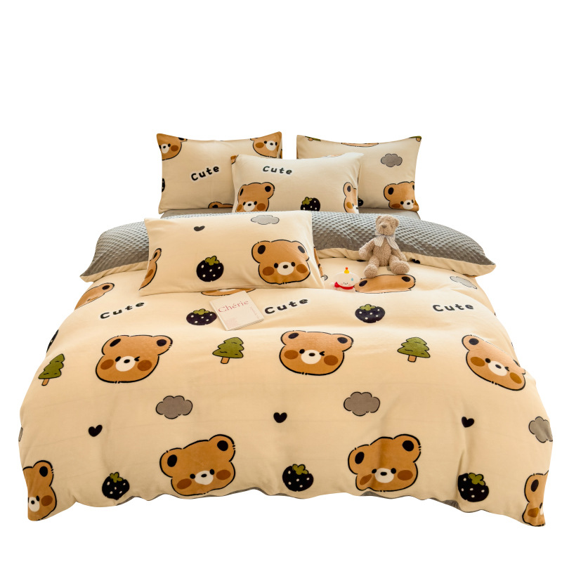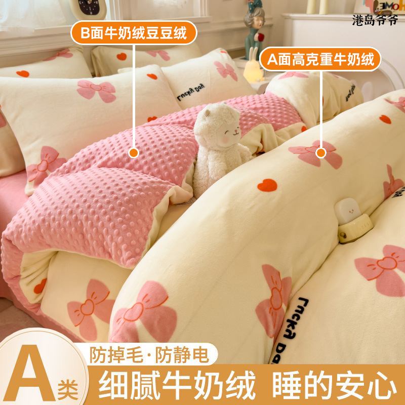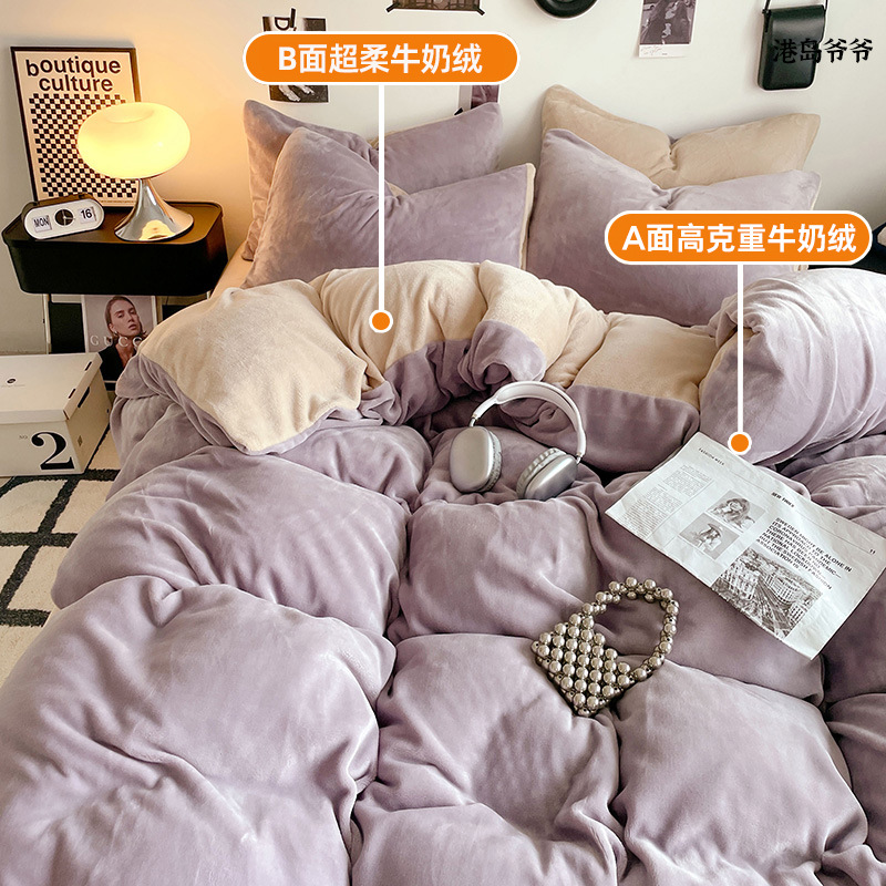 A类母婴级牛奶绒四件套双面加厚珊瑚绒床笠加绒被套床单三件套 罩