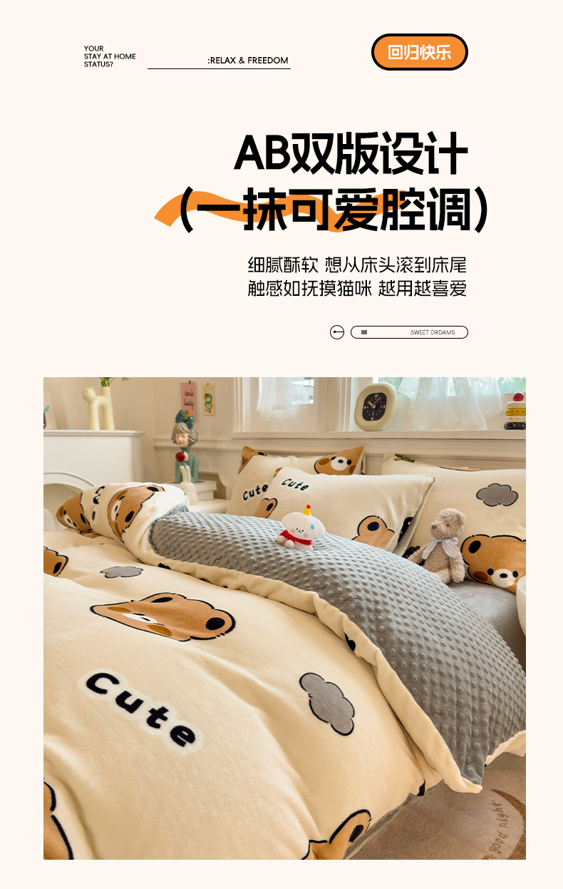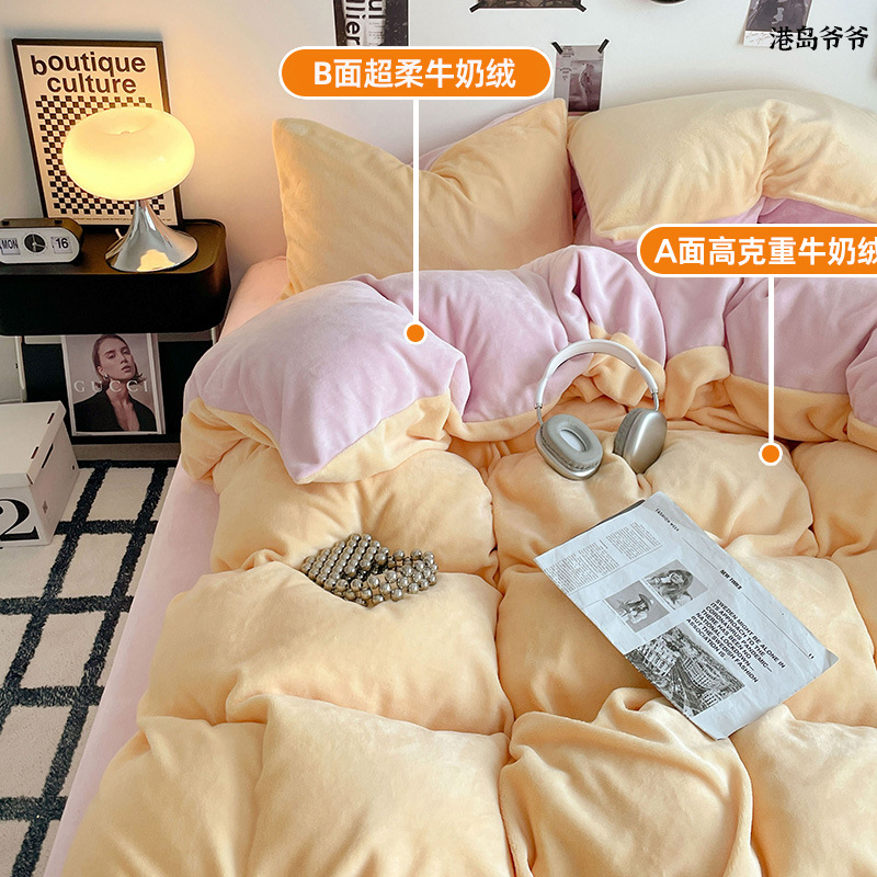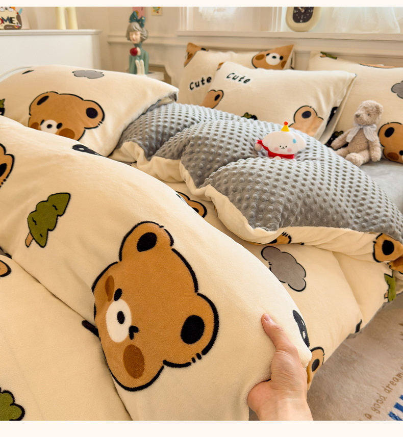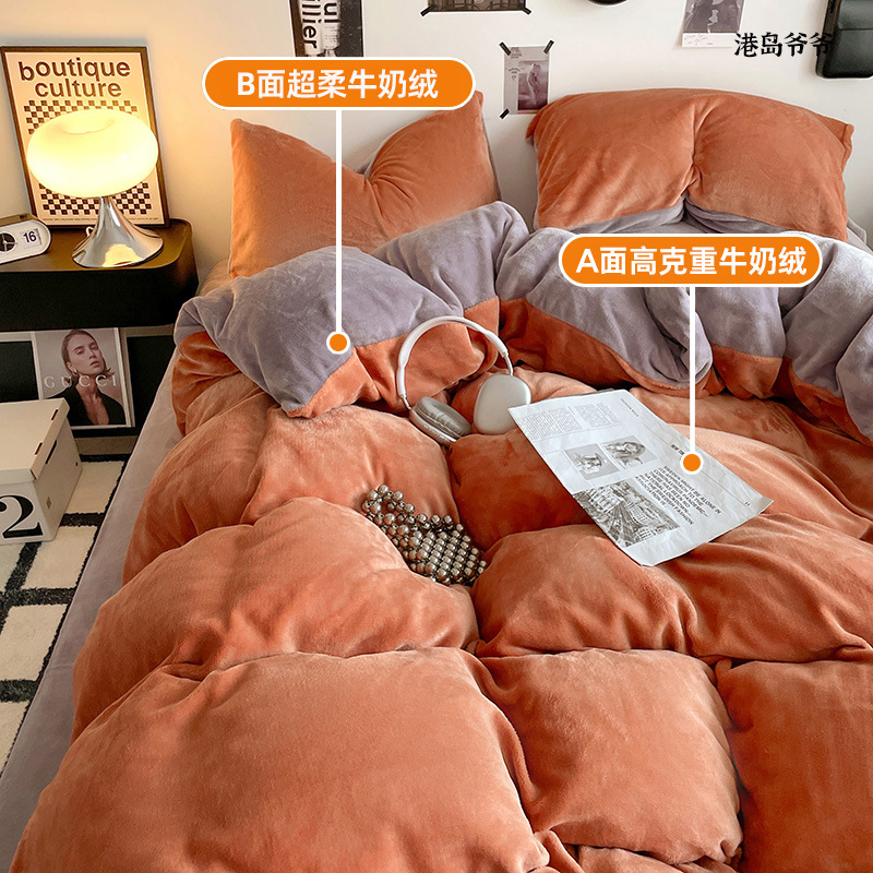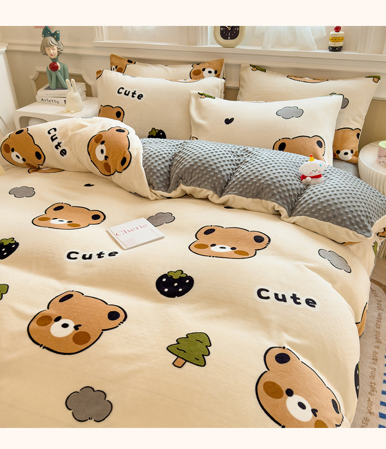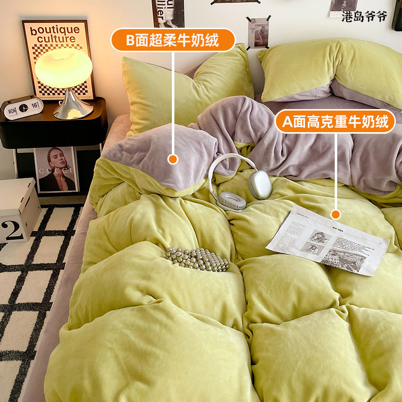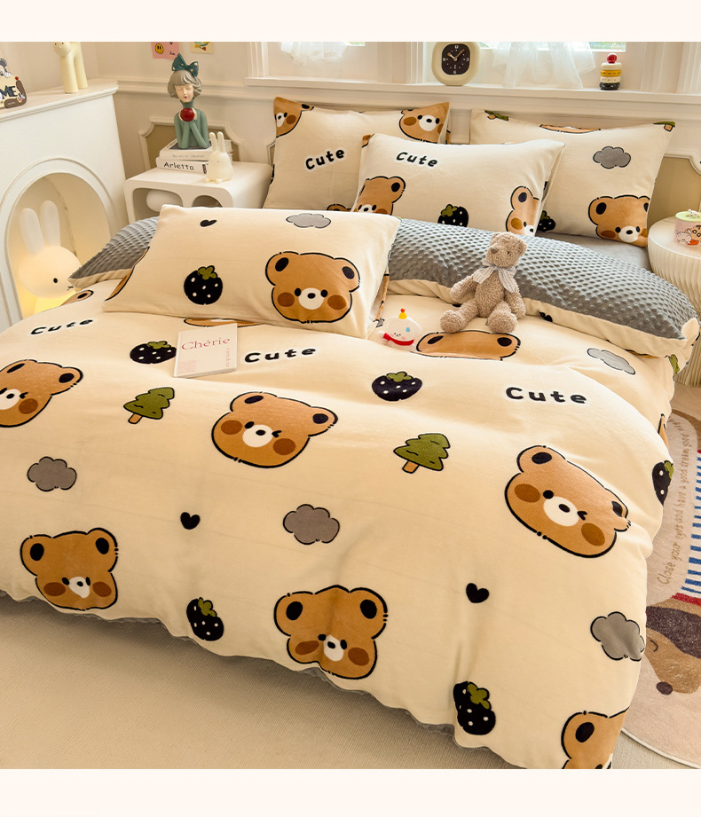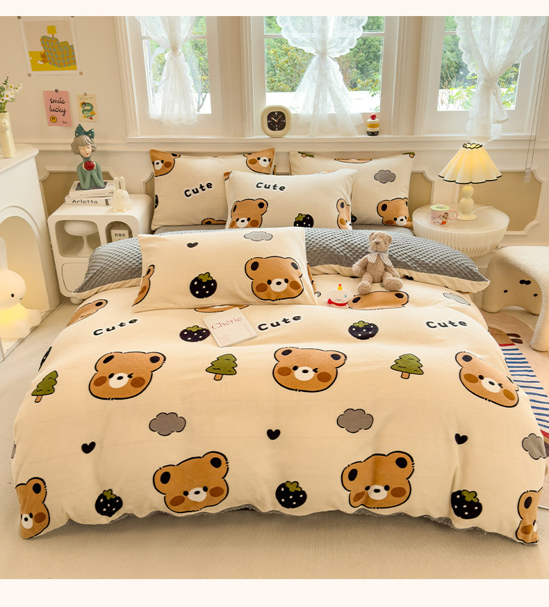 A类母婴级牛奶绒四件套双面加厚珊瑚绒床笠加绒被套床单三件套 罩