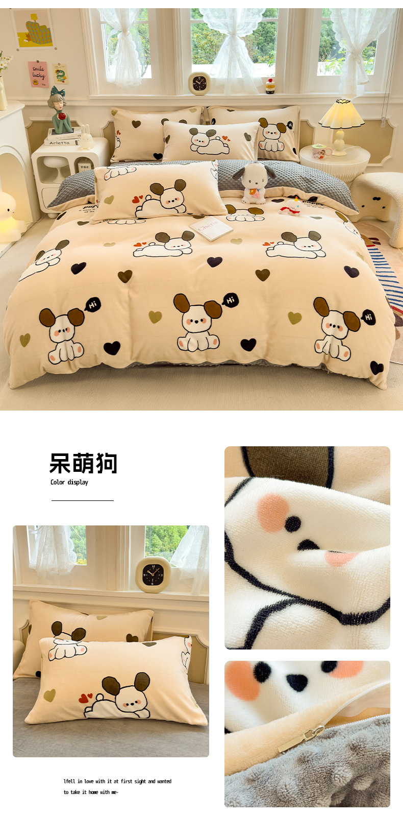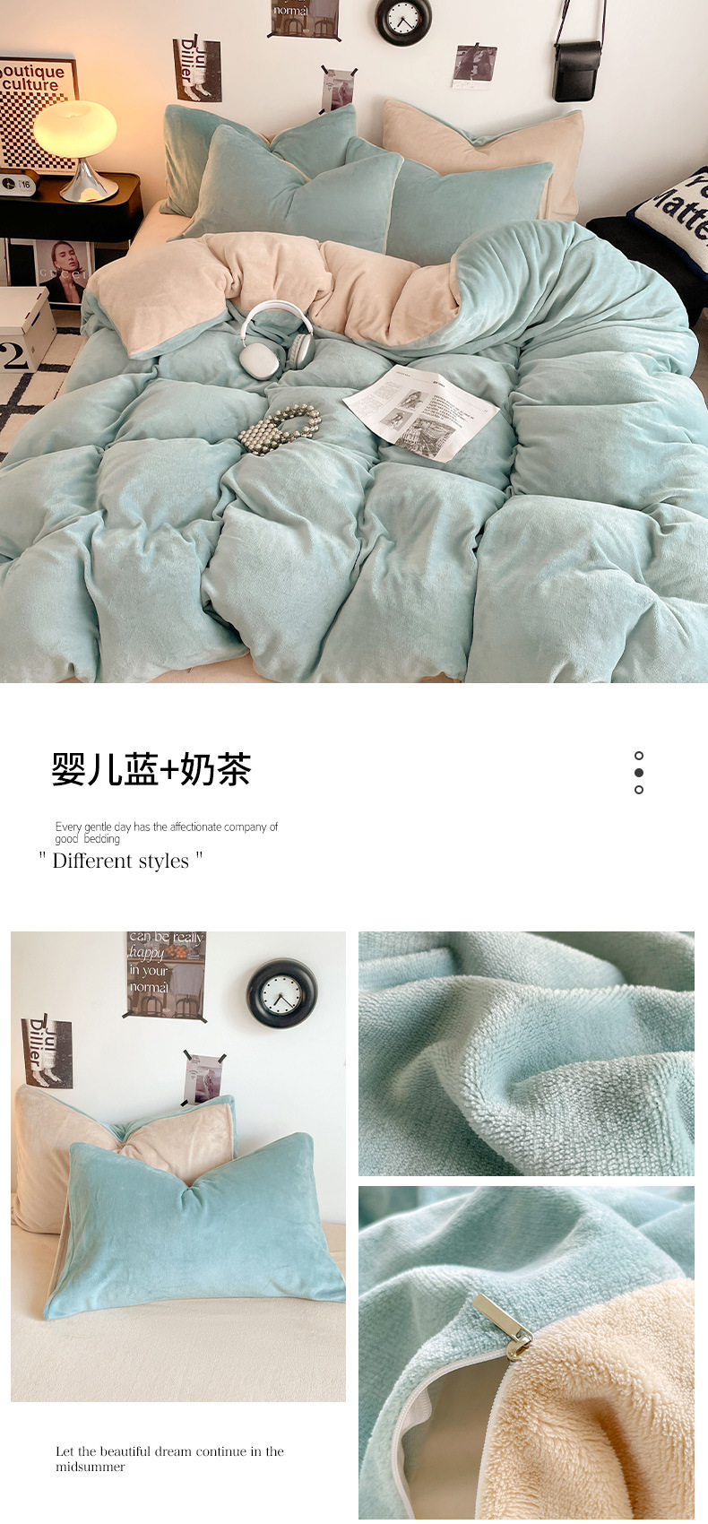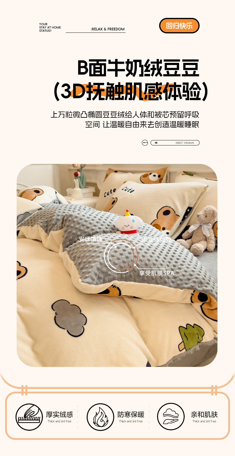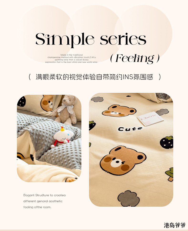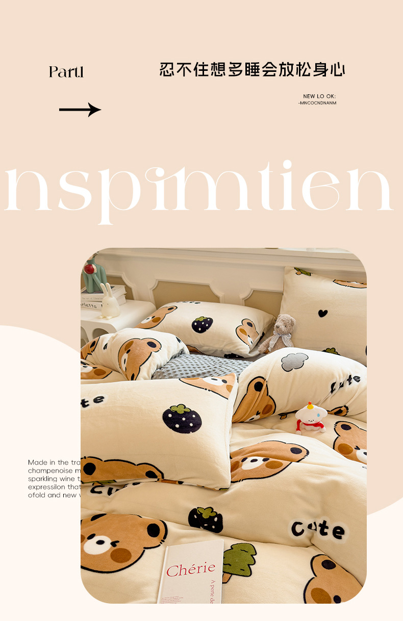 A类母婴级牛奶绒四件套双面加厚珊瑚绒床笠加绒被套床单三件套 罩
