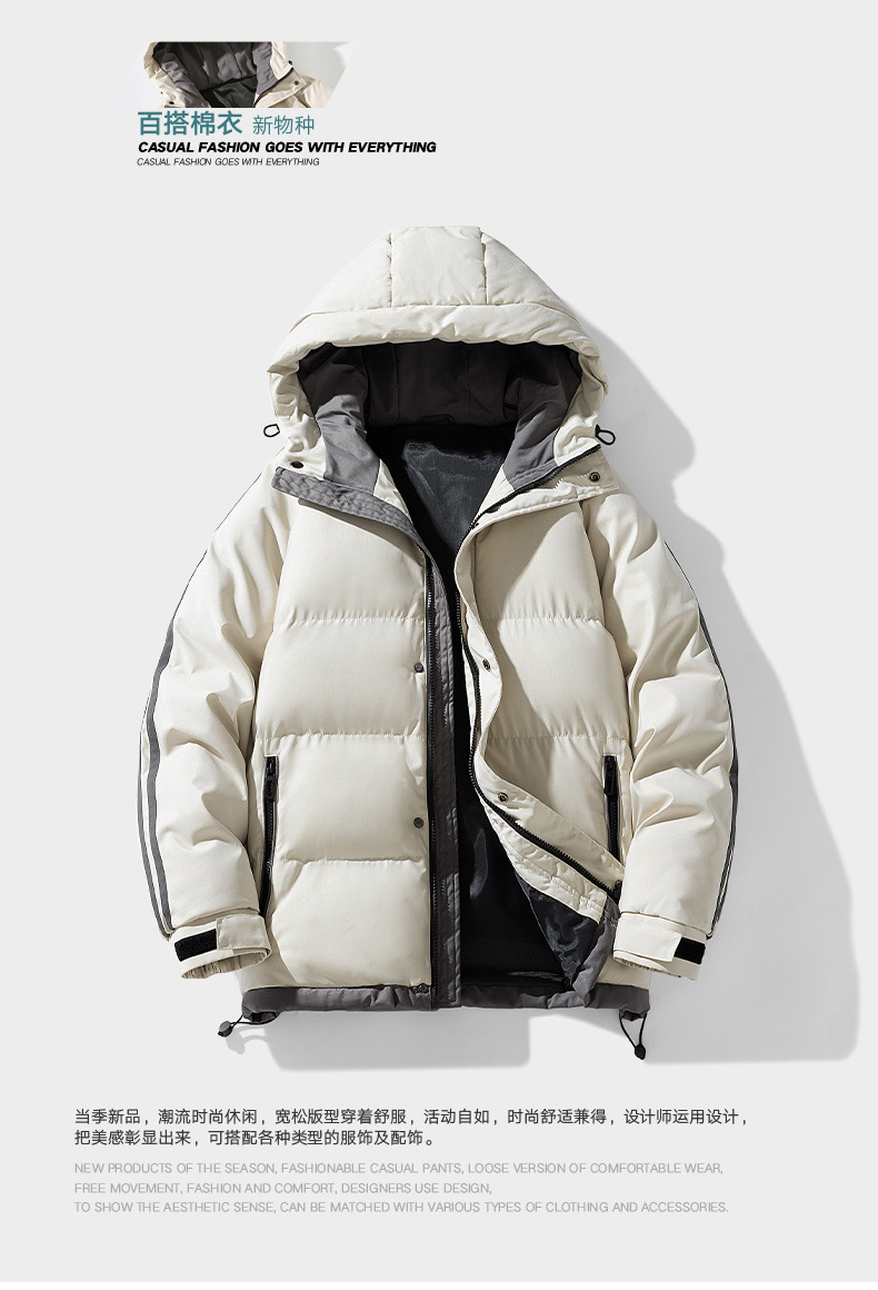 连帽棉衣男士外套2024秋冬季休闲羽绒棉服棉袄面包服宽松棉服男