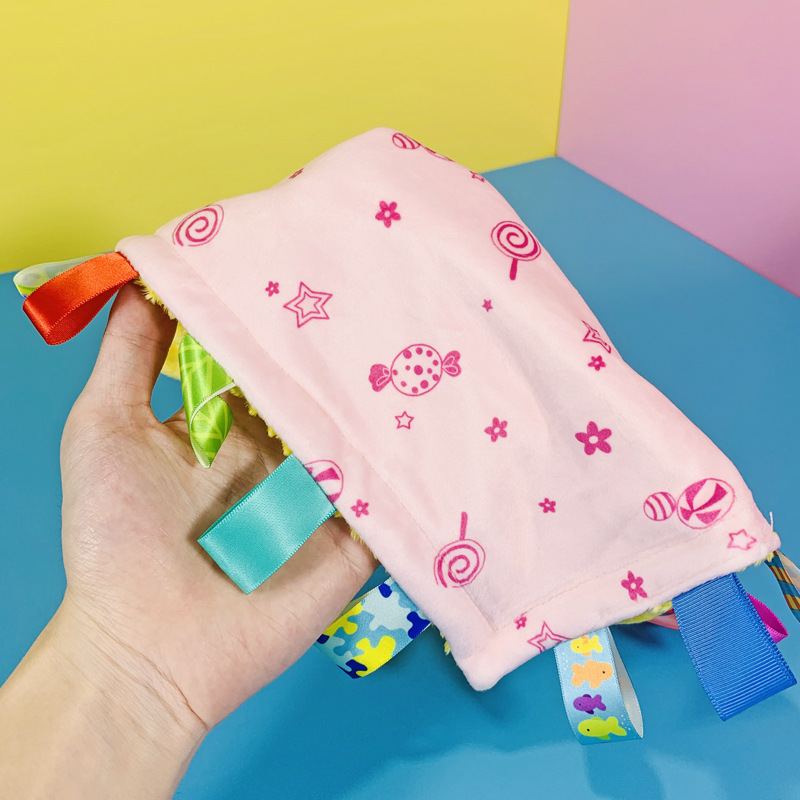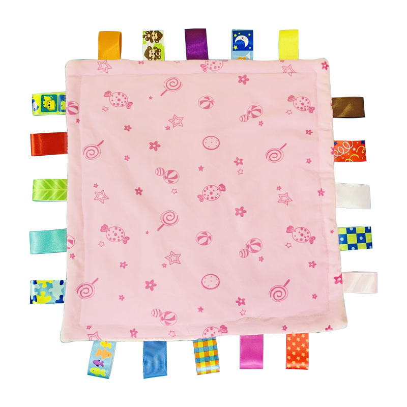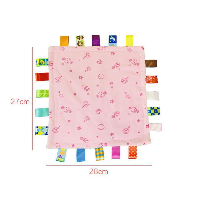 bbsky粉色棒棒糖宝宝安抚巾 婴儿四方标签毛绒可啃咬玩具