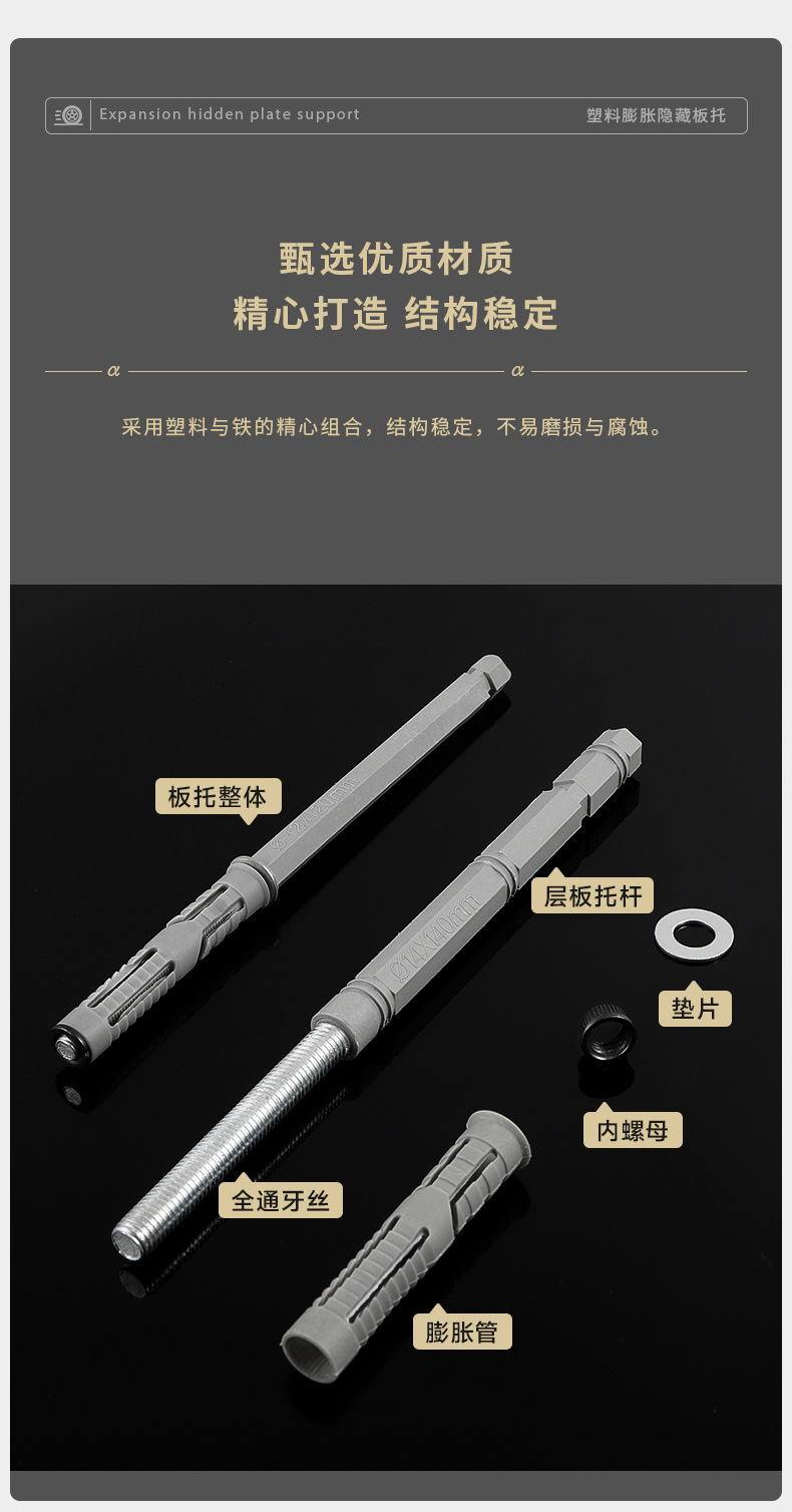 一字隐藏固定支撑托架 墙壁书架隐形隔板托隔板销 暗藏层板托