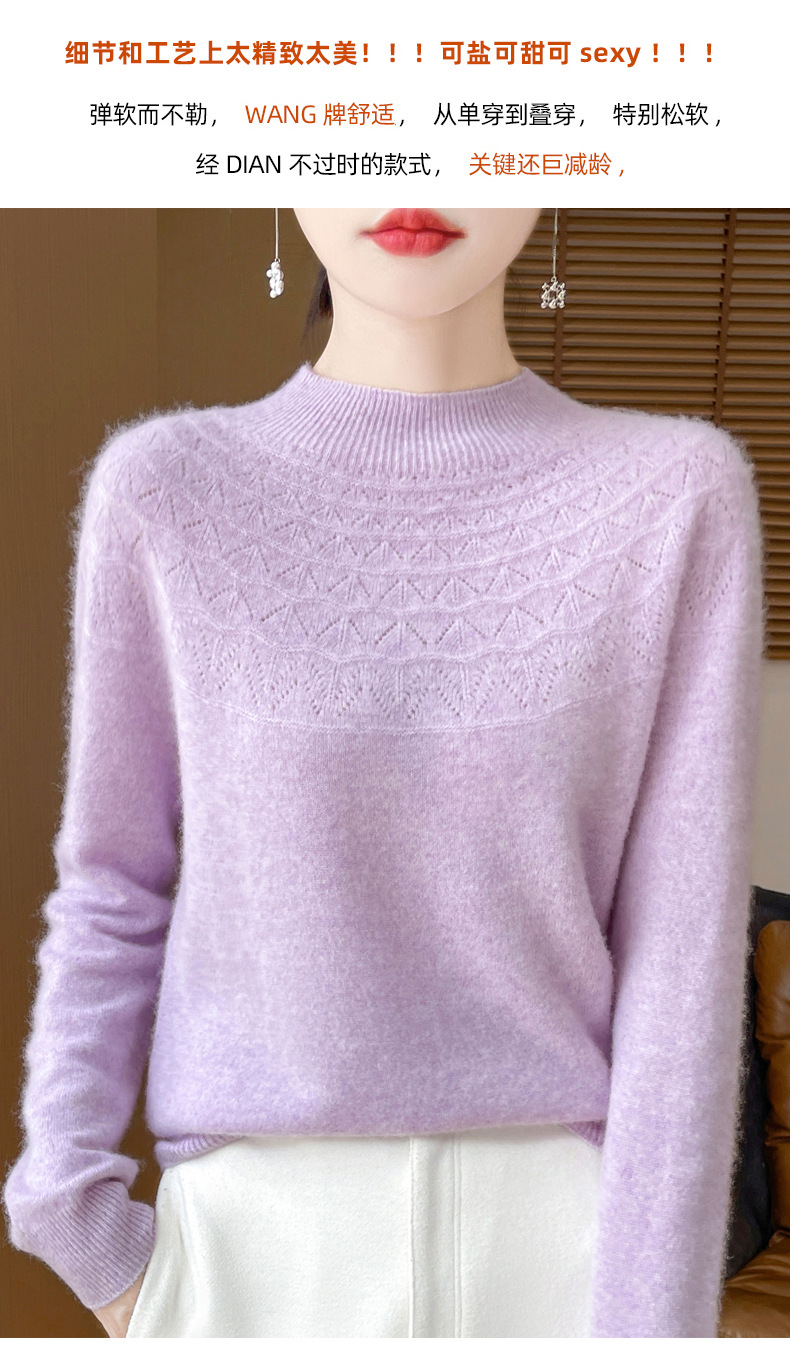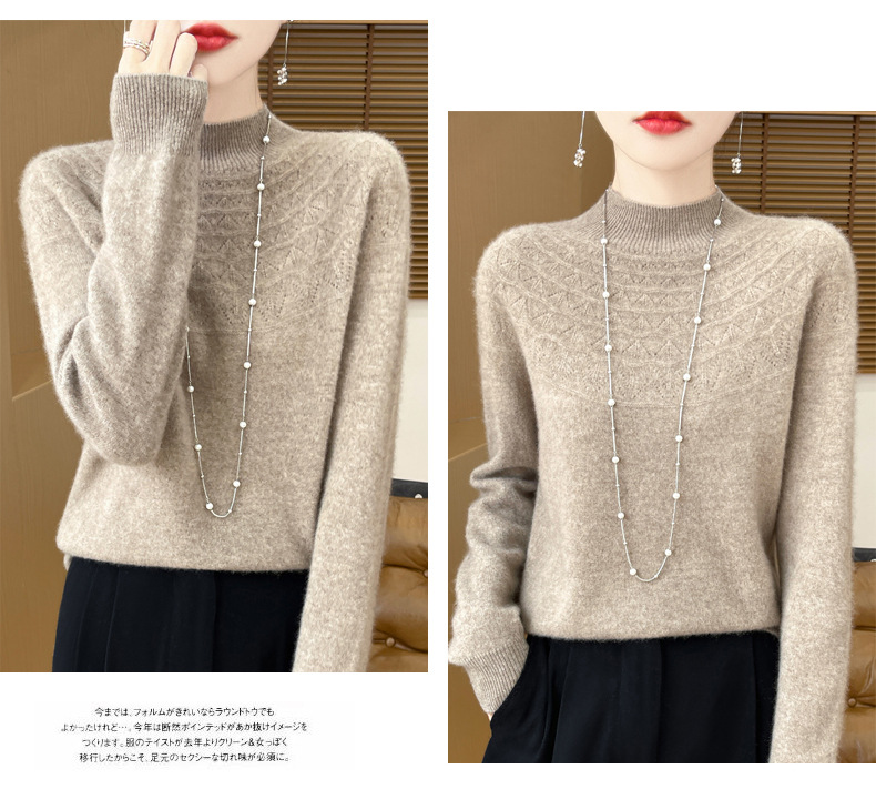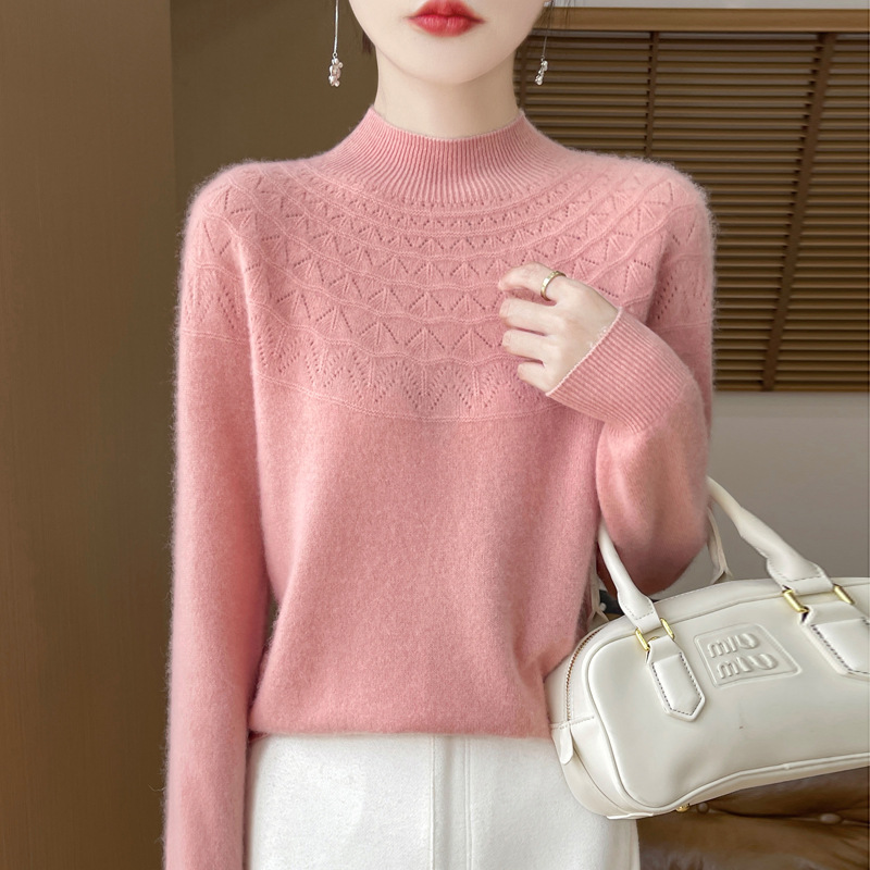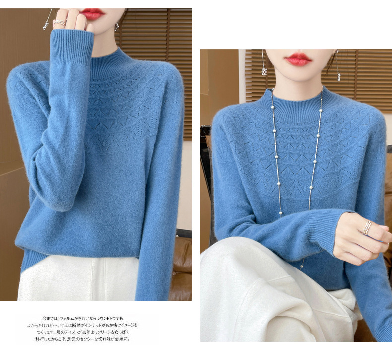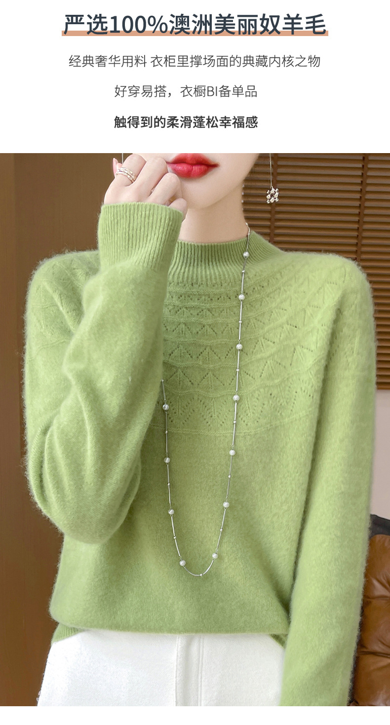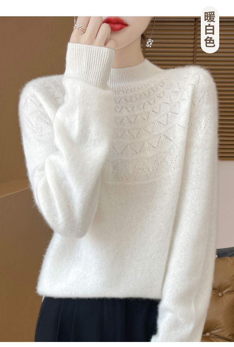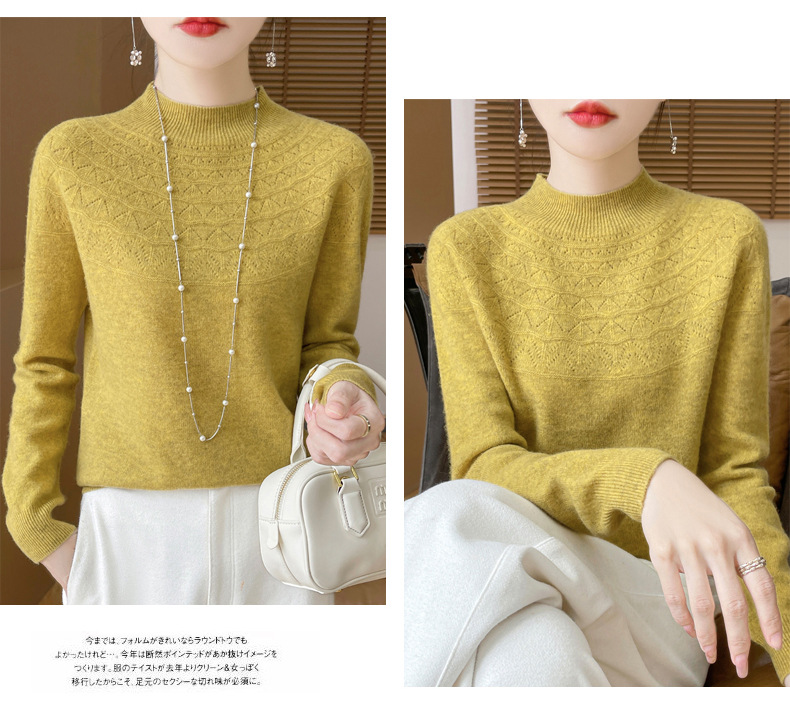 一线成衣濮院半高领羊毛衫女内搭镂空套头毛衣女宽松针织打底批发