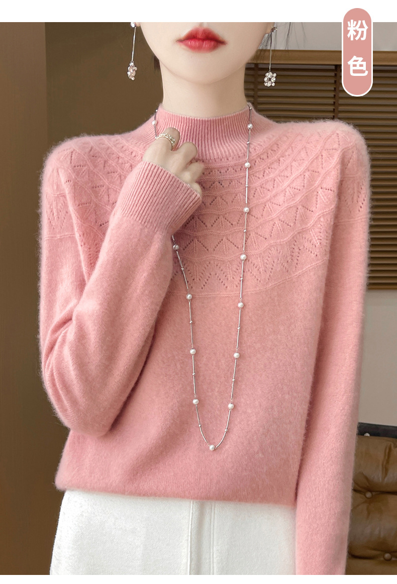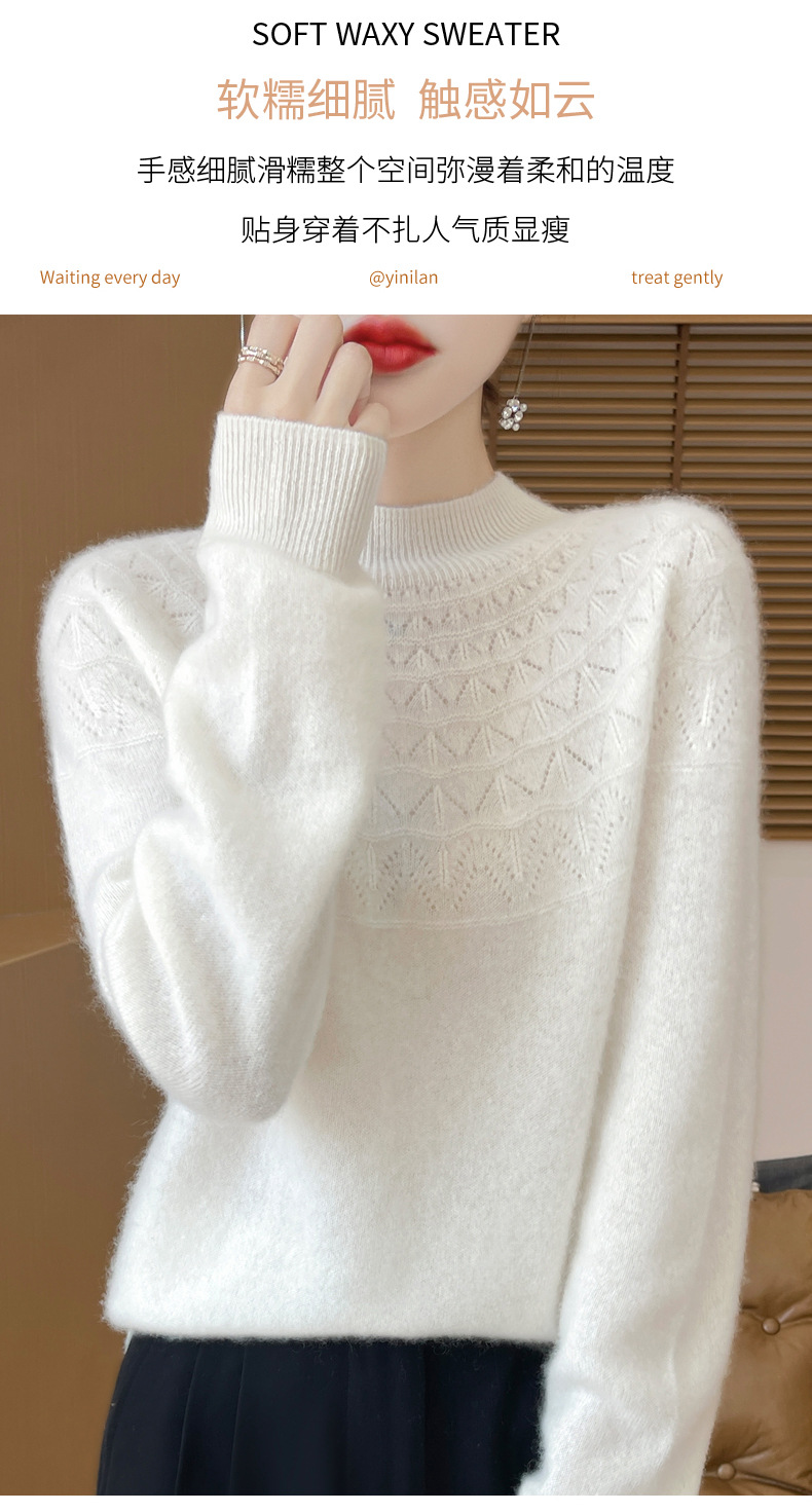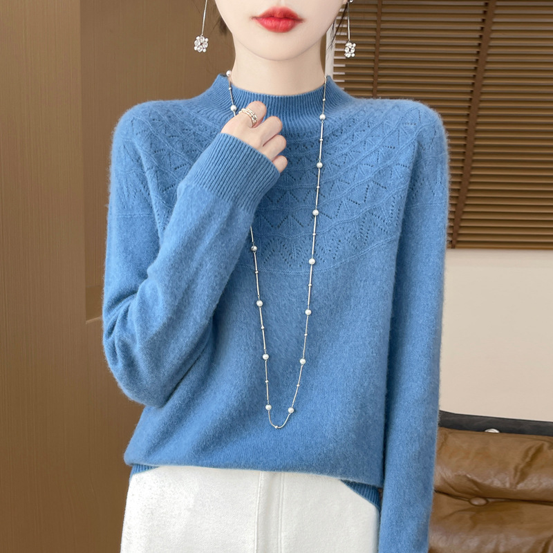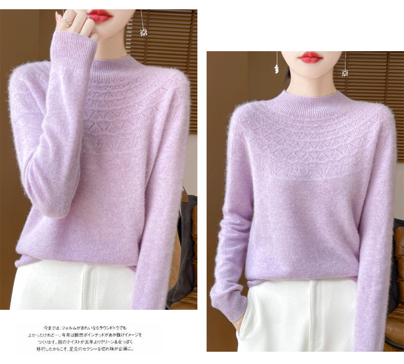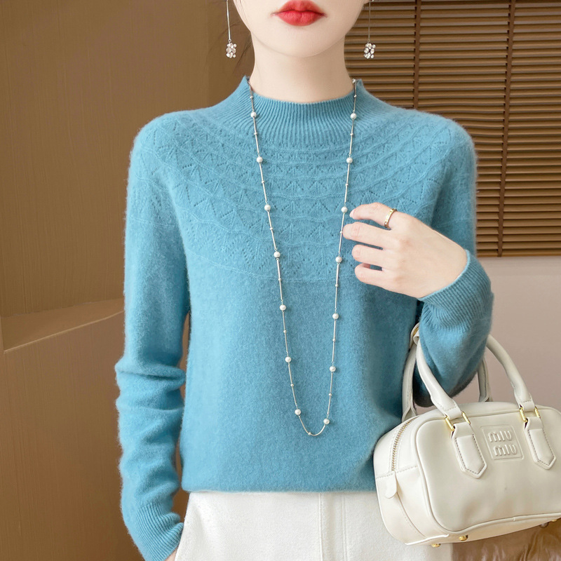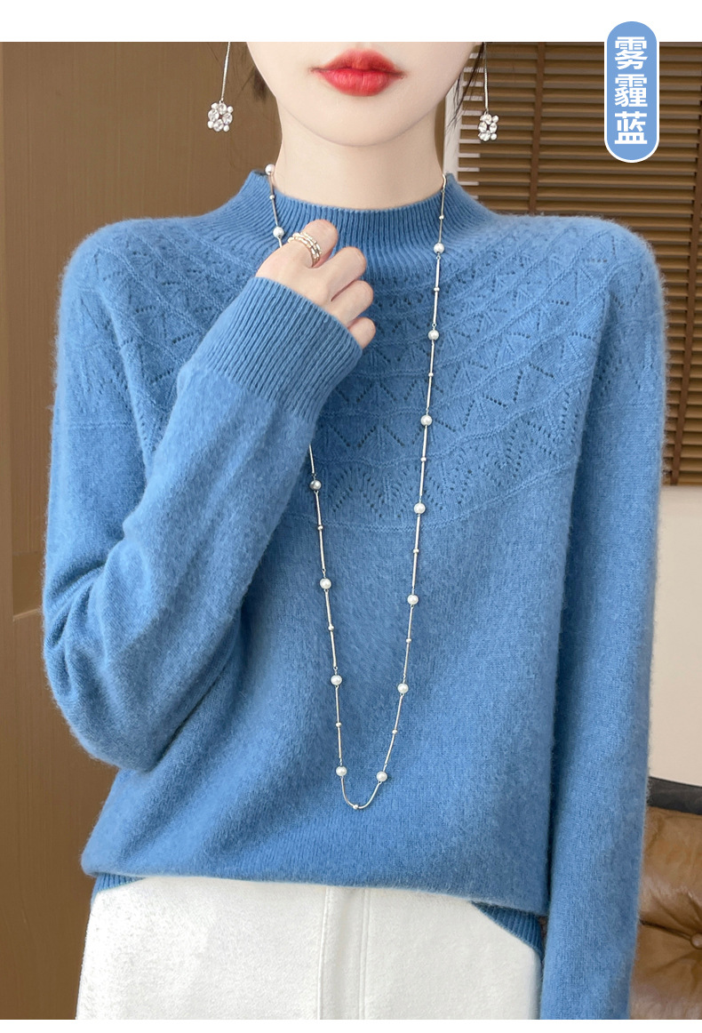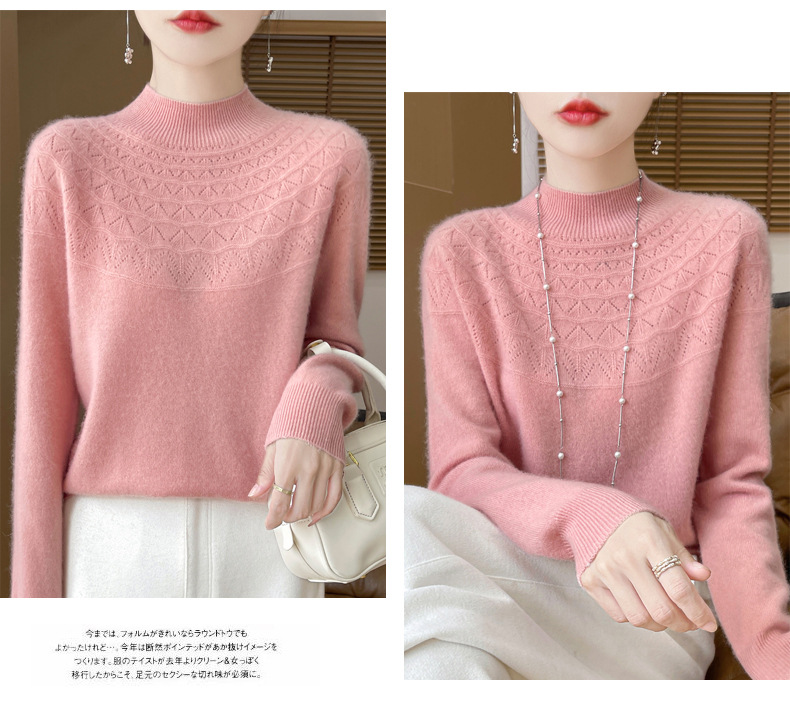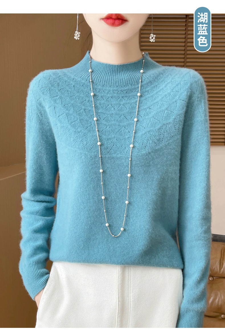一线成衣濮院半高领羊毛衫女内搭镂空套头毛衣女宽松针织打底批发