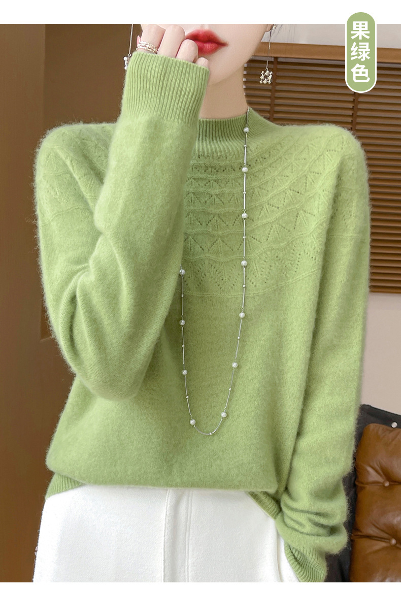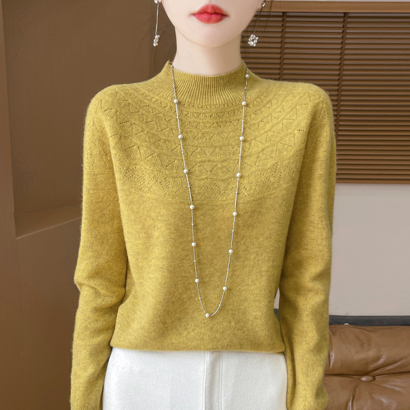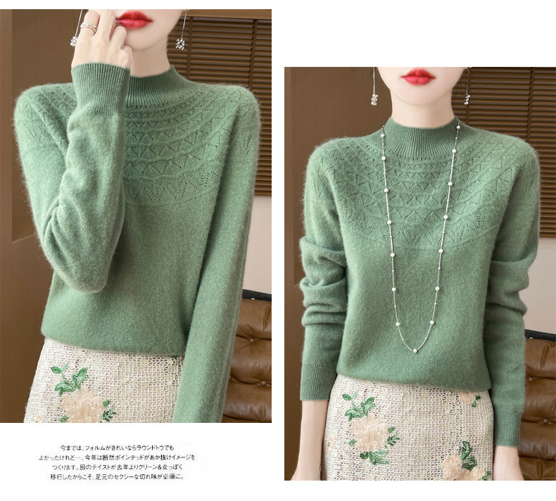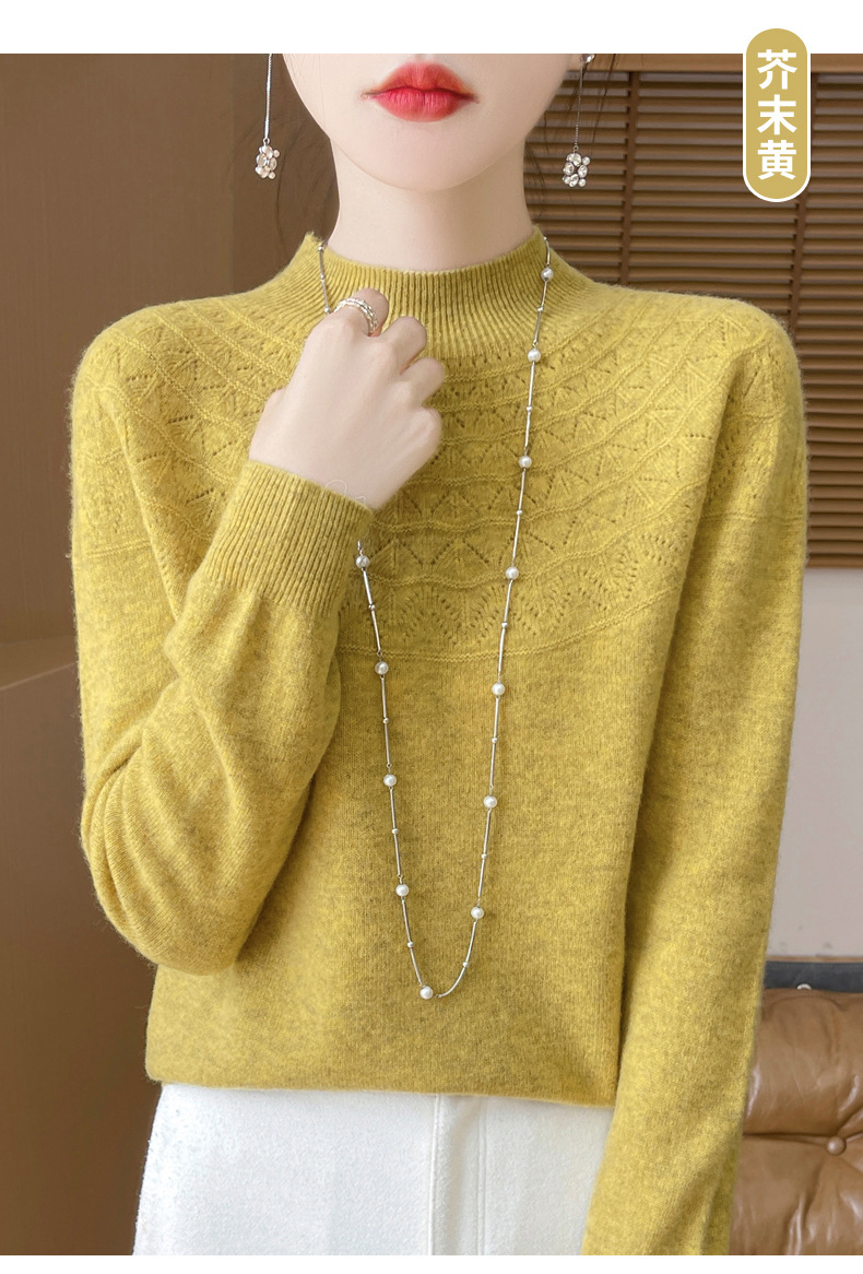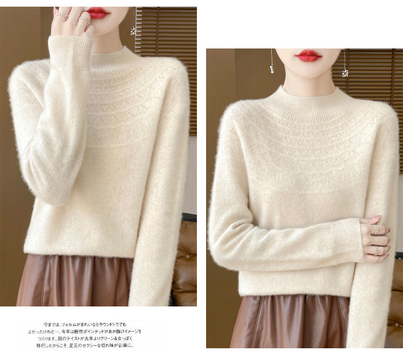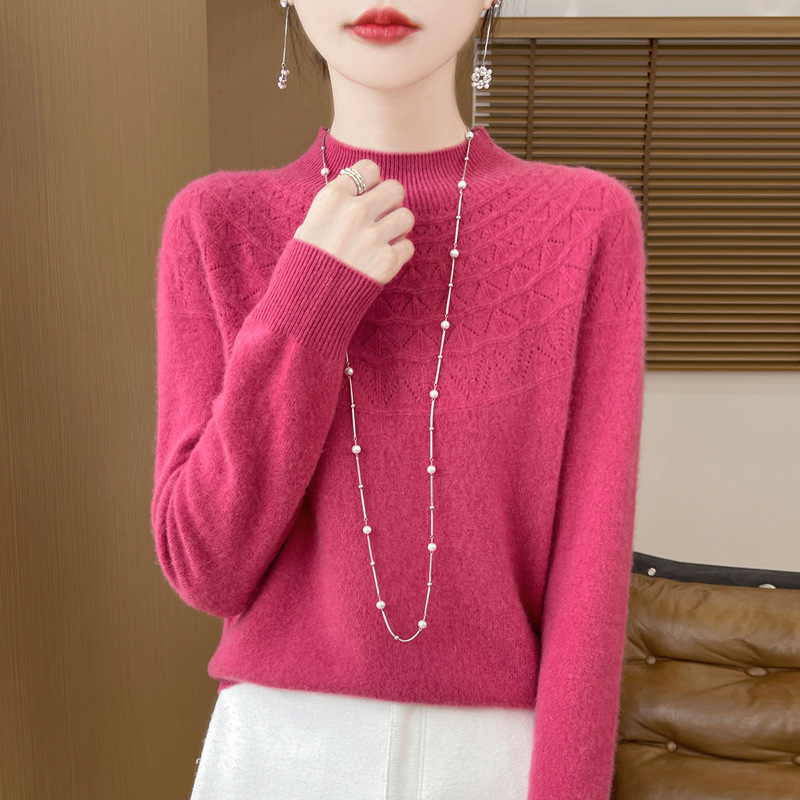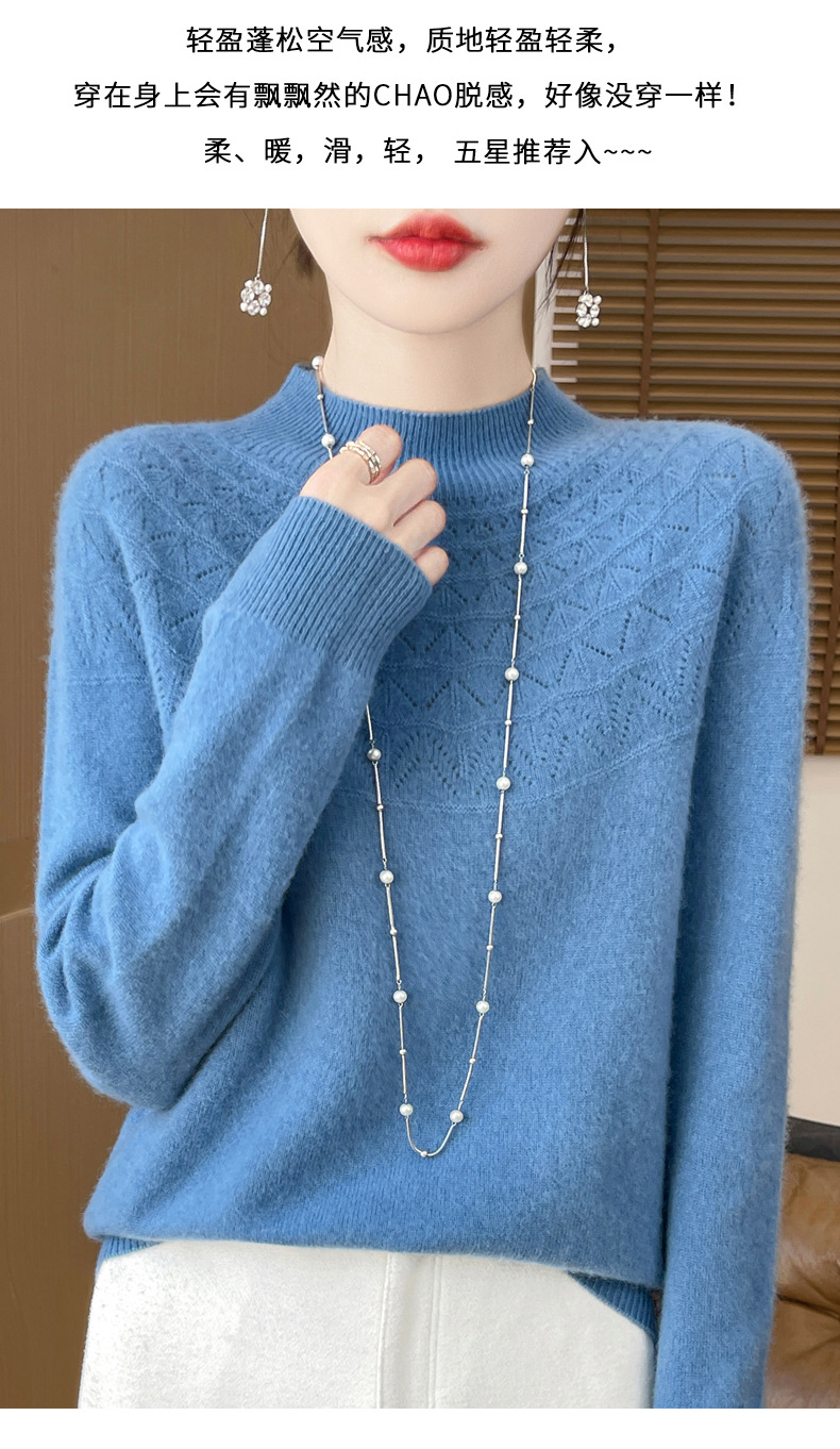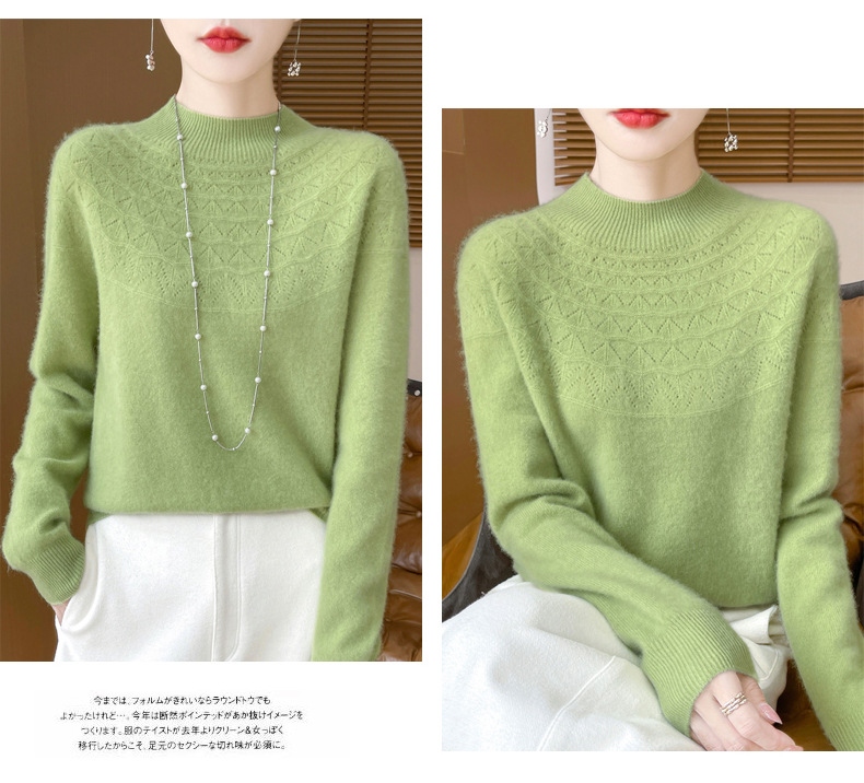 一线成衣濮院半高领羊毛衫女内搭镂空套头毛衣女宽松针织打底批发