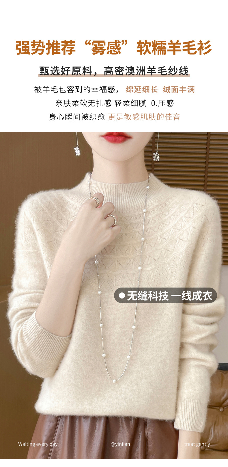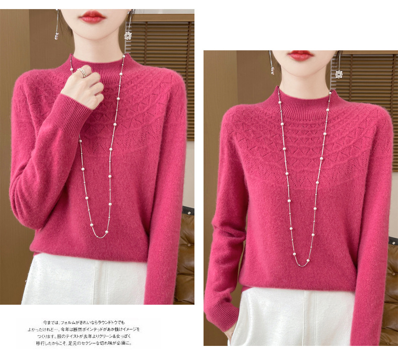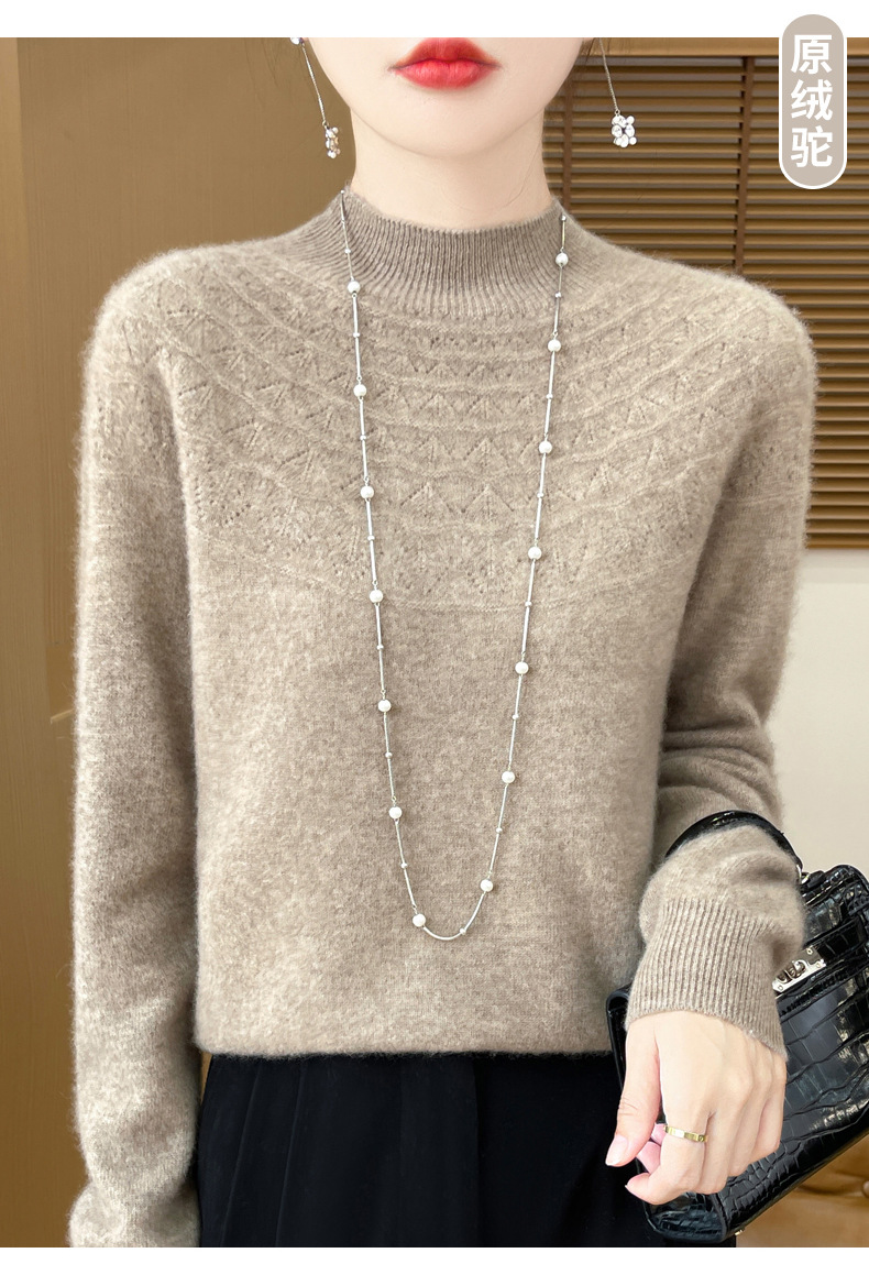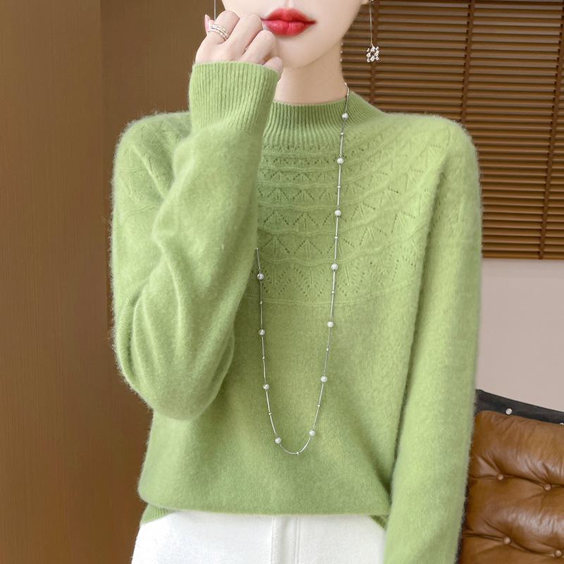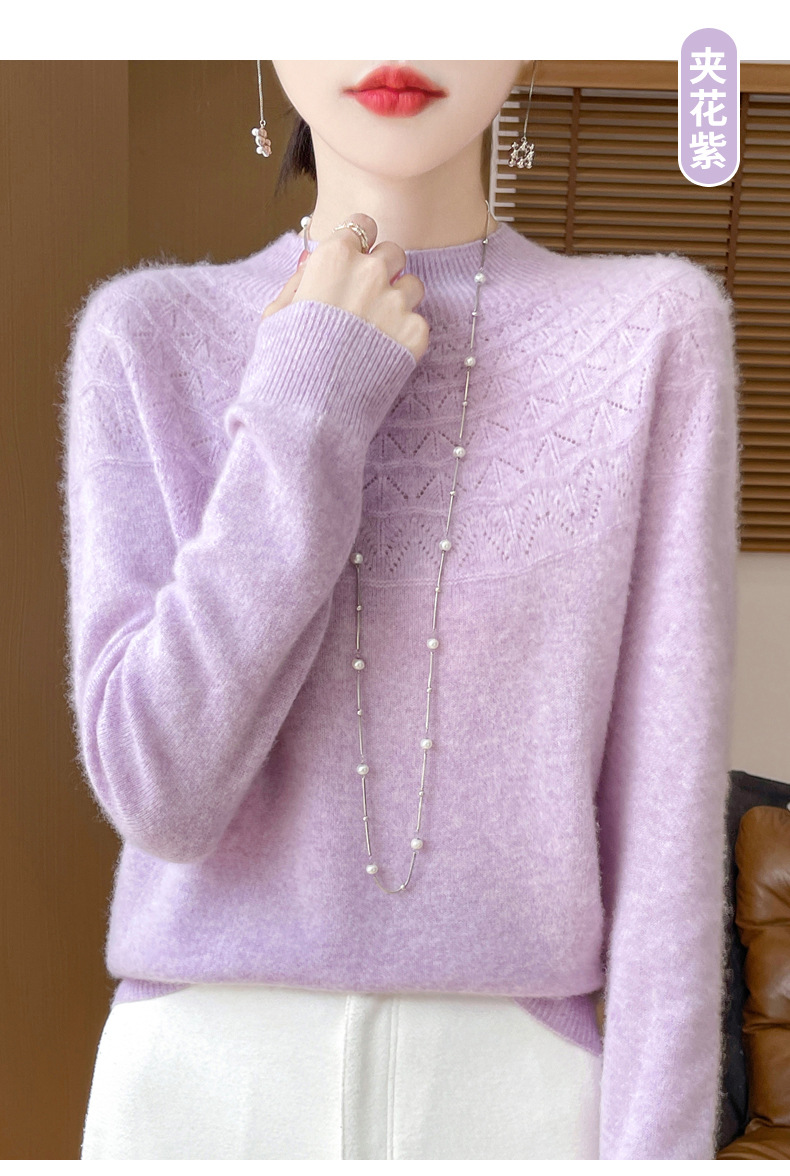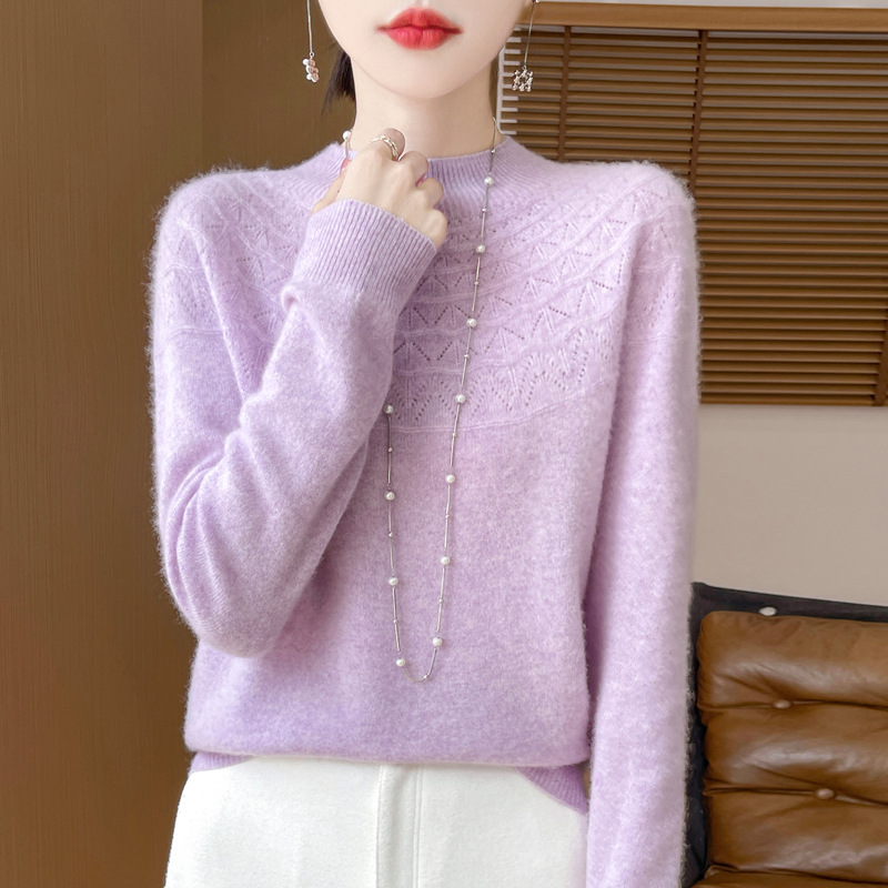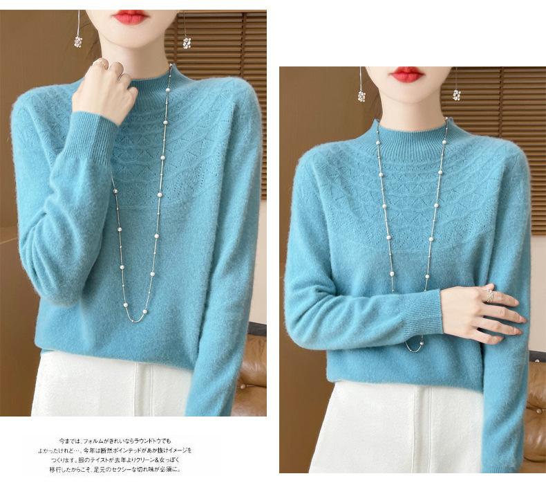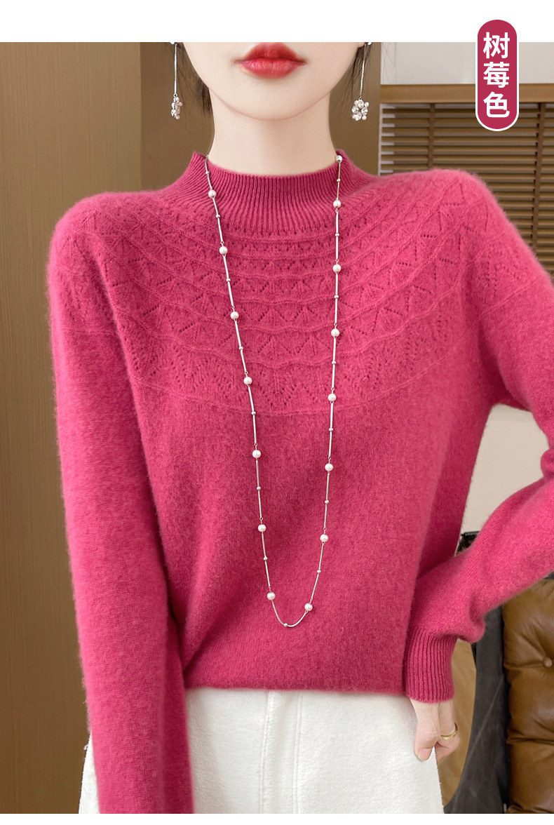 一线成衣濮院半高领羊毛衫女内搭镂空套头毛衣女宽松针织打底批发
