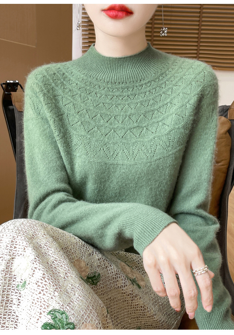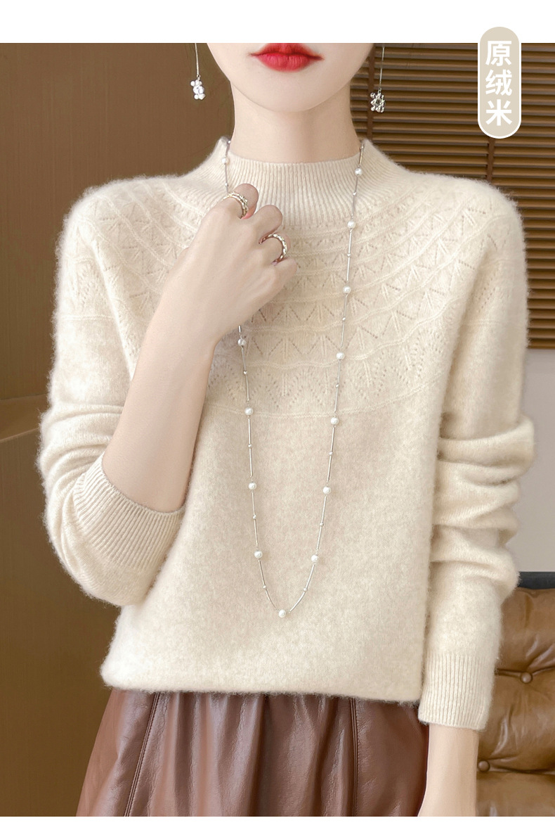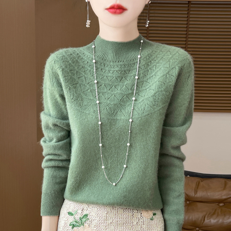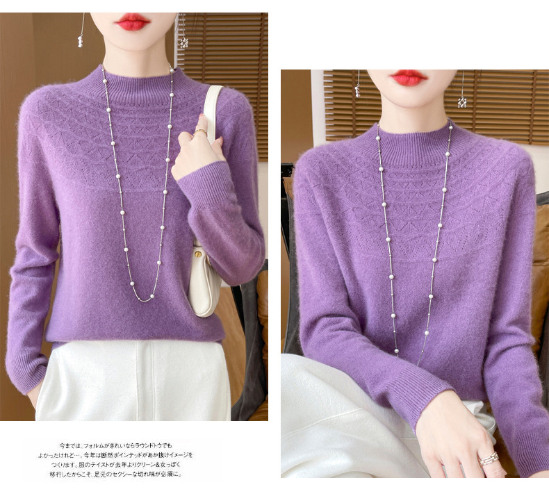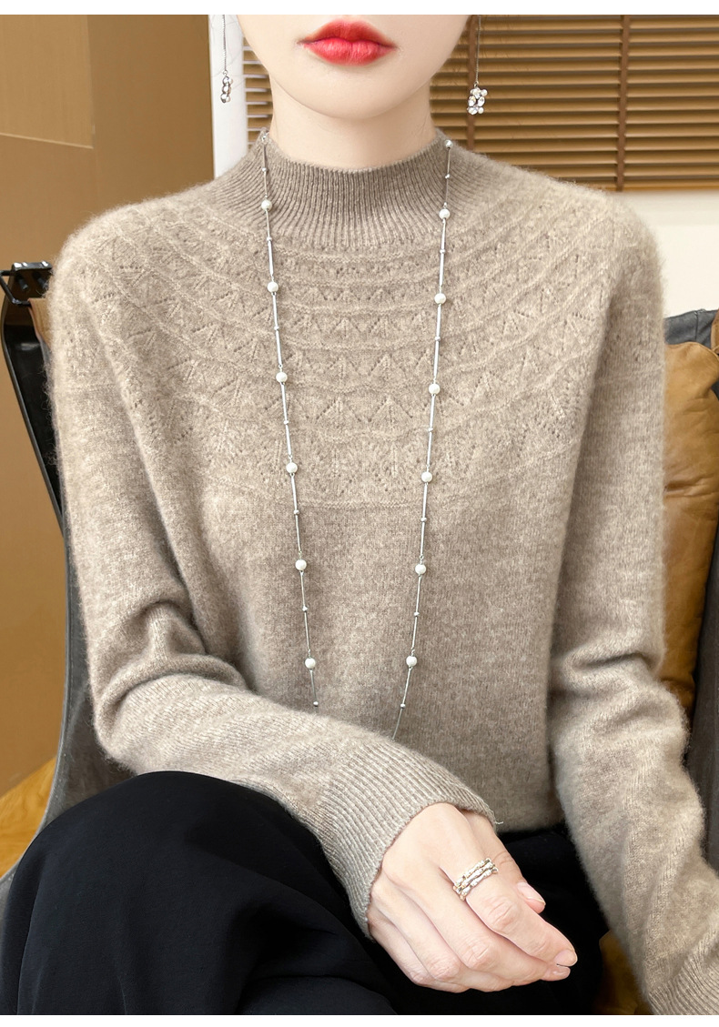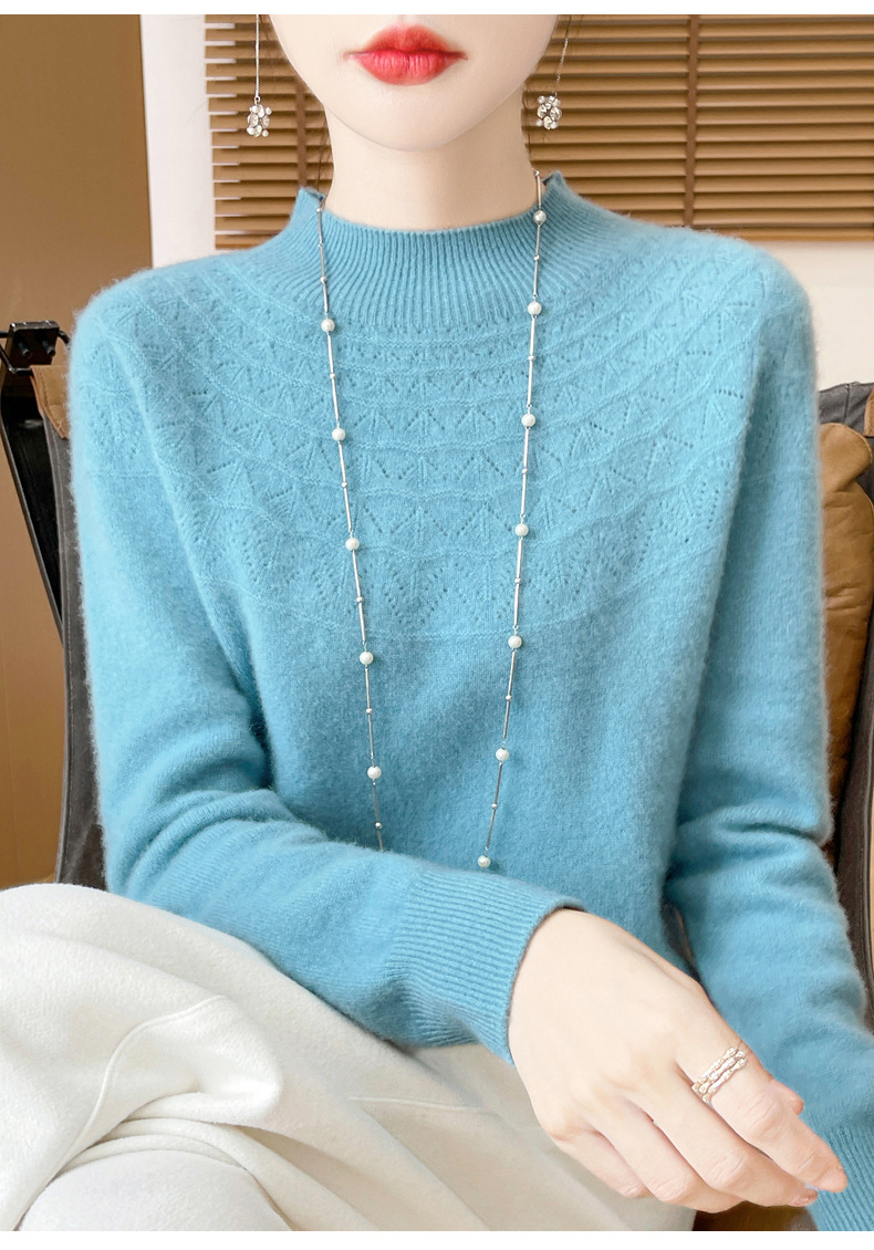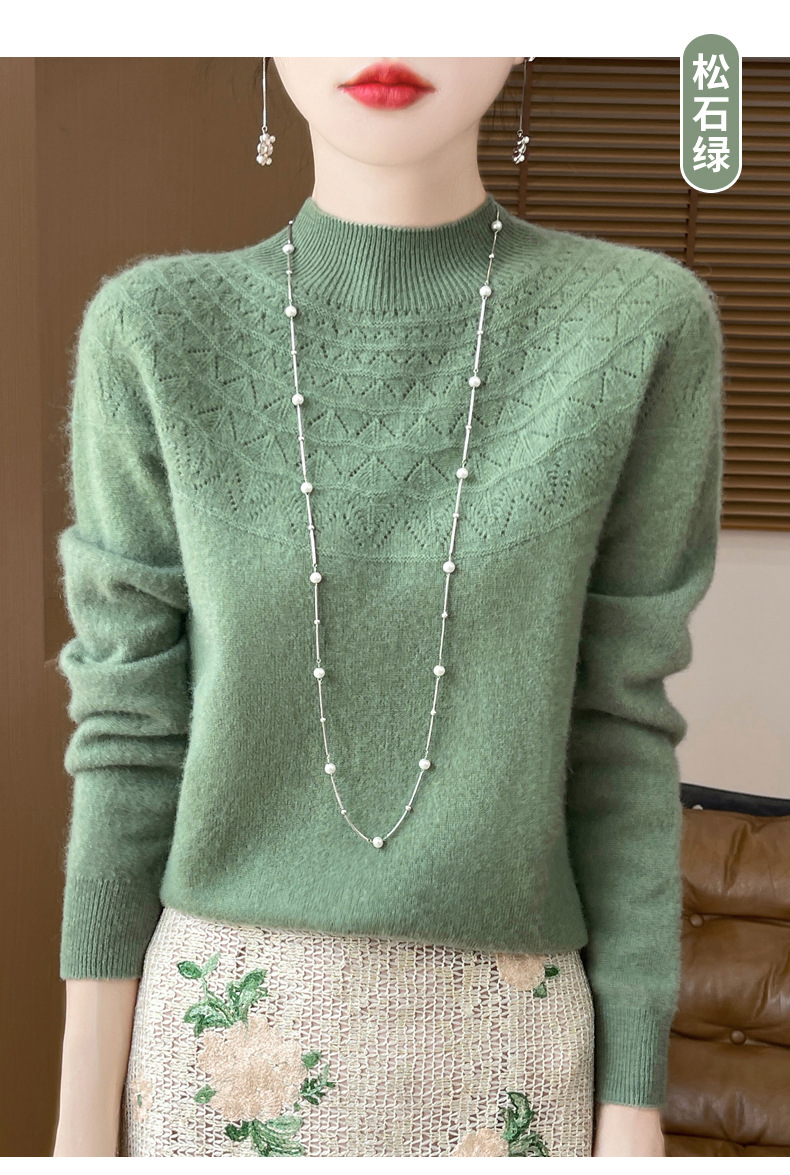 一线成衣濮院半高领羊毛衫女内搭镂空套头毛衣女宽松针织打底批发