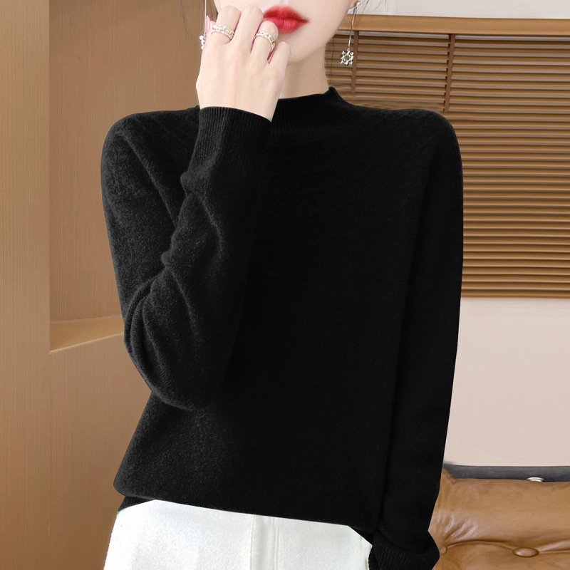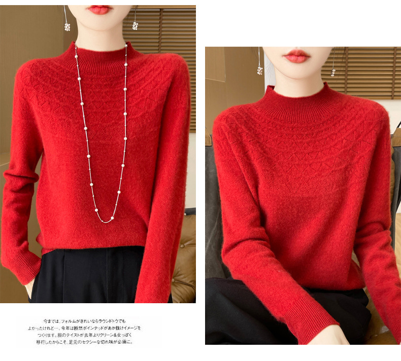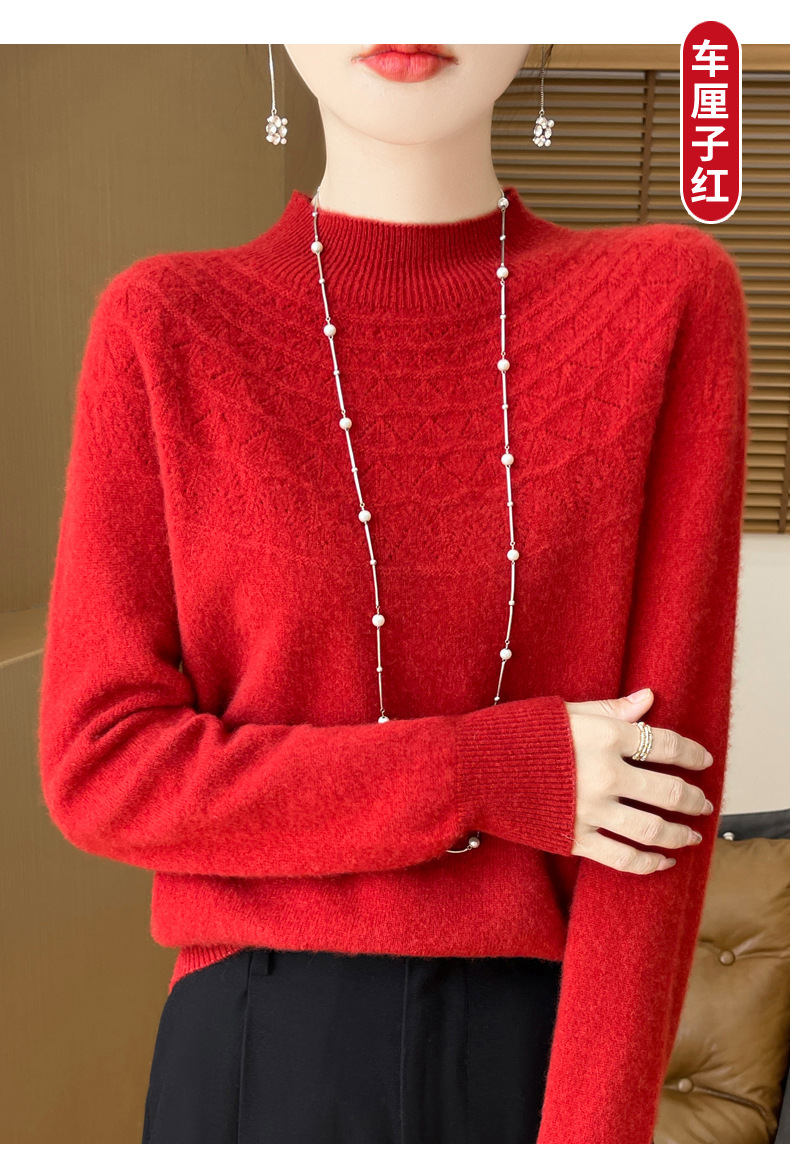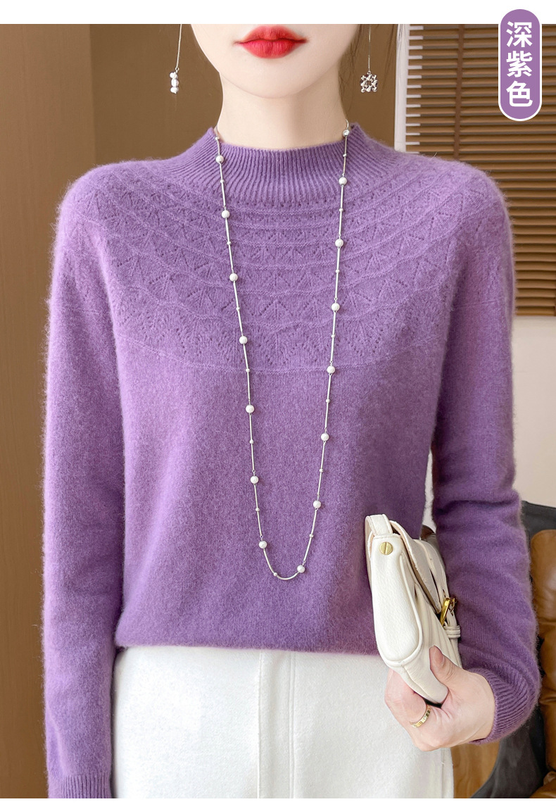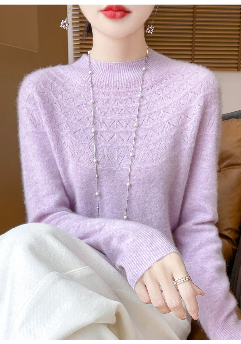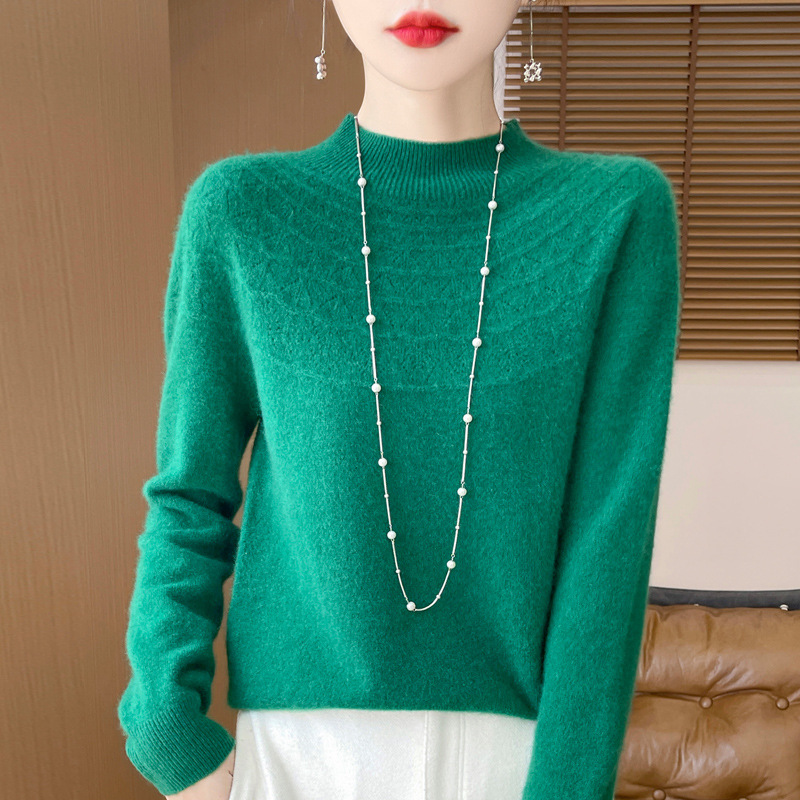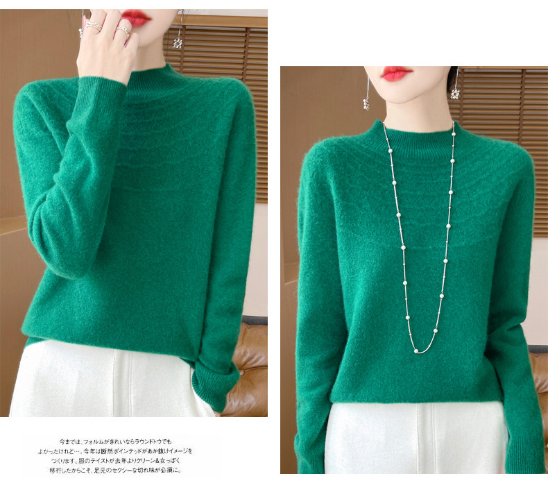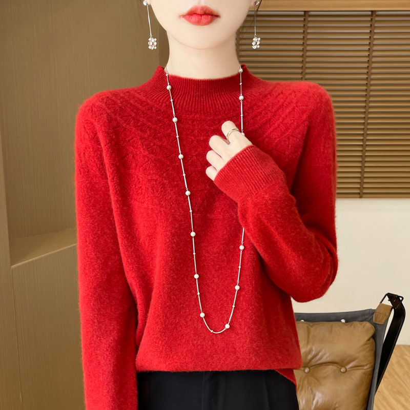 一线成衣濮院半高领羊毛衫女内搭镂空套头毛衣女宽松针织打底批发