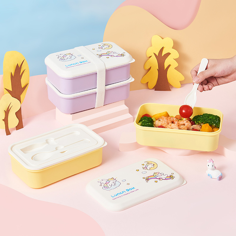 分格密封学生午餐盒家用微波炉加热便当盒跨境食品级卡通塑料饭盒