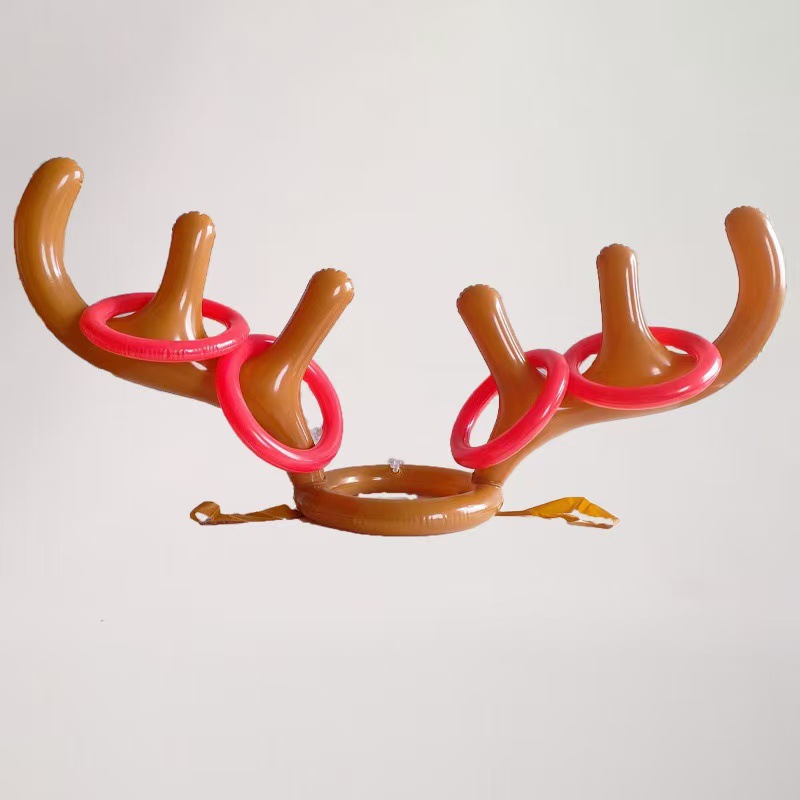 品名: 充气PVC动物玩具圣诞节充气新款鹿头套圈帽 含4个套环