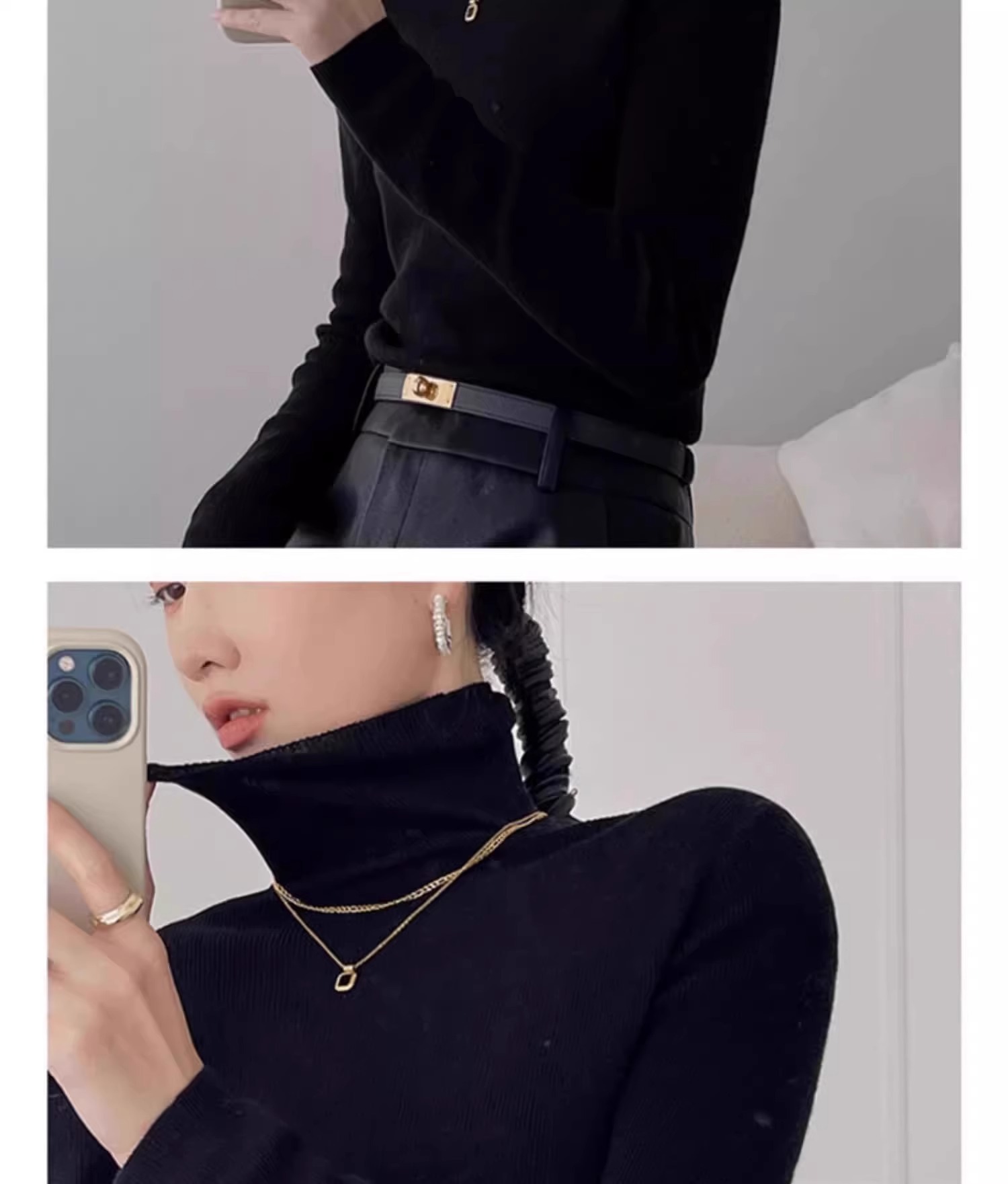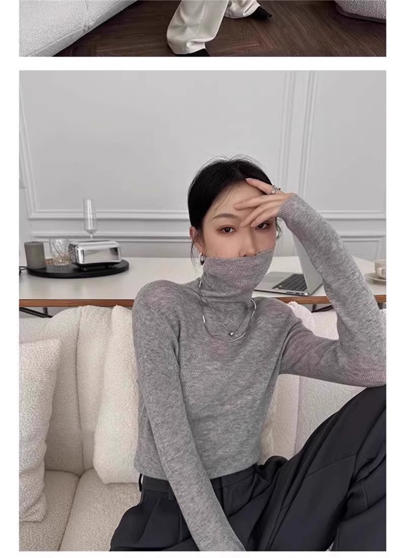 法式高级感高领羊毛针织打底衫女春秋薄款毛衣内搭紧身堆堆领上衣