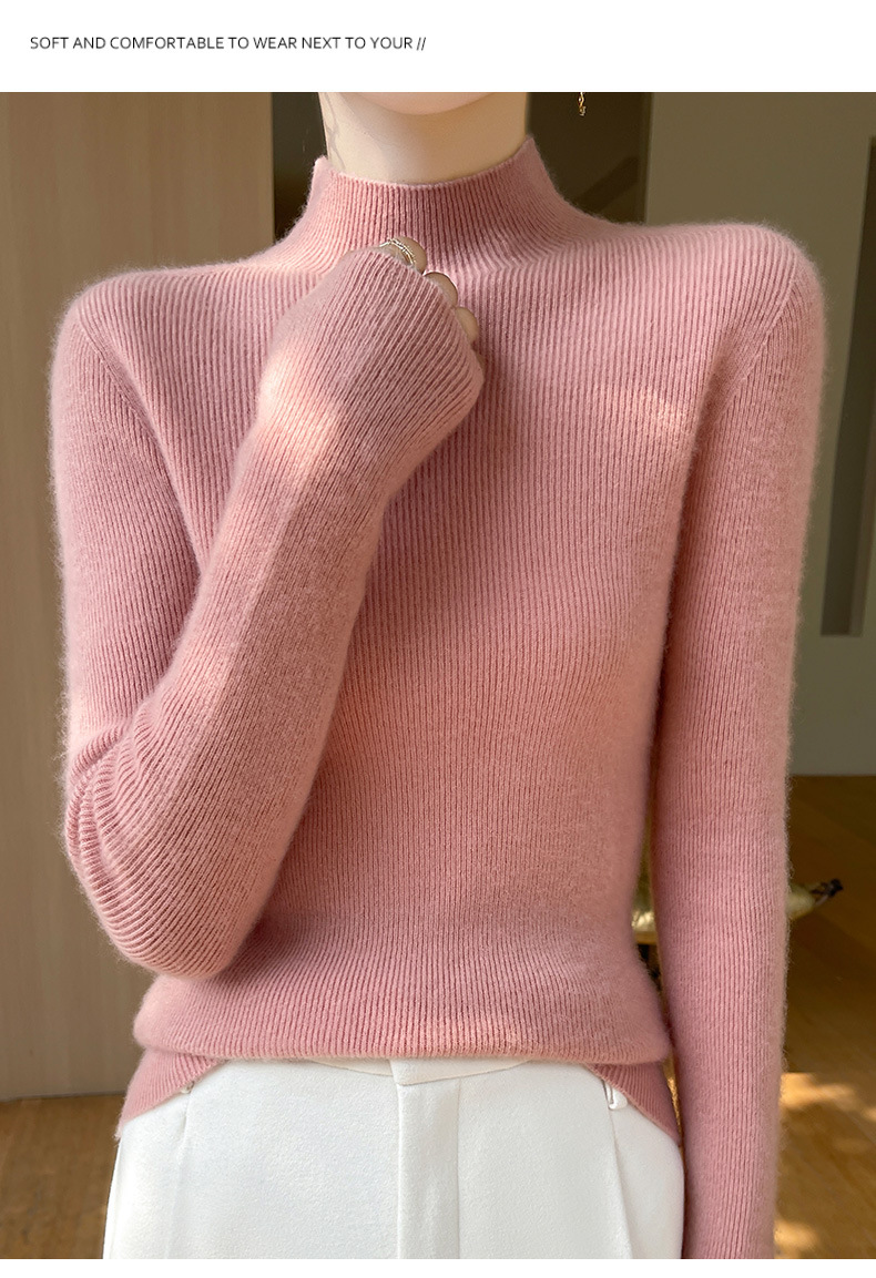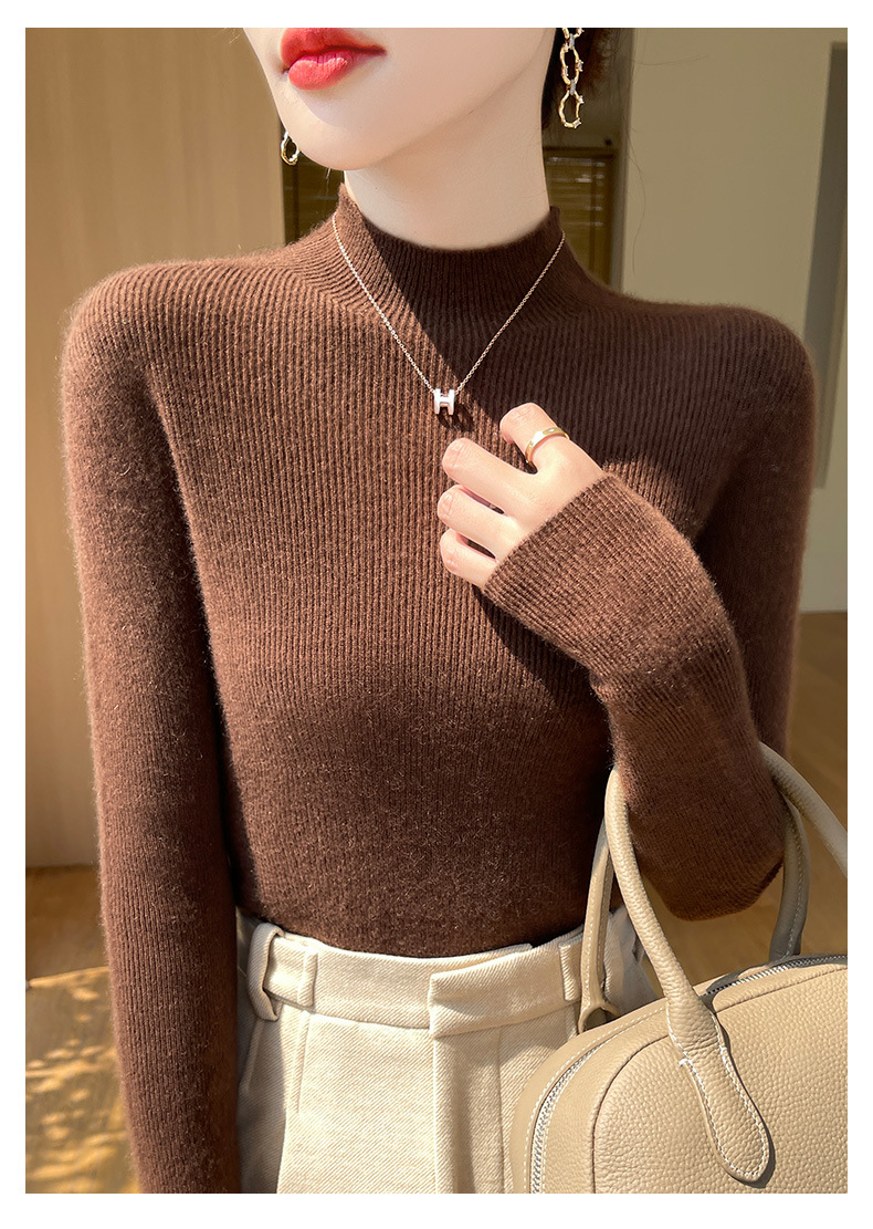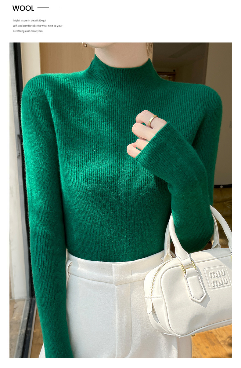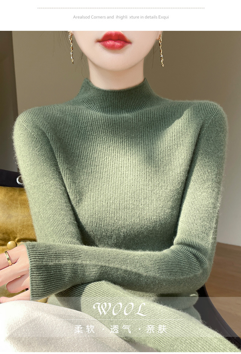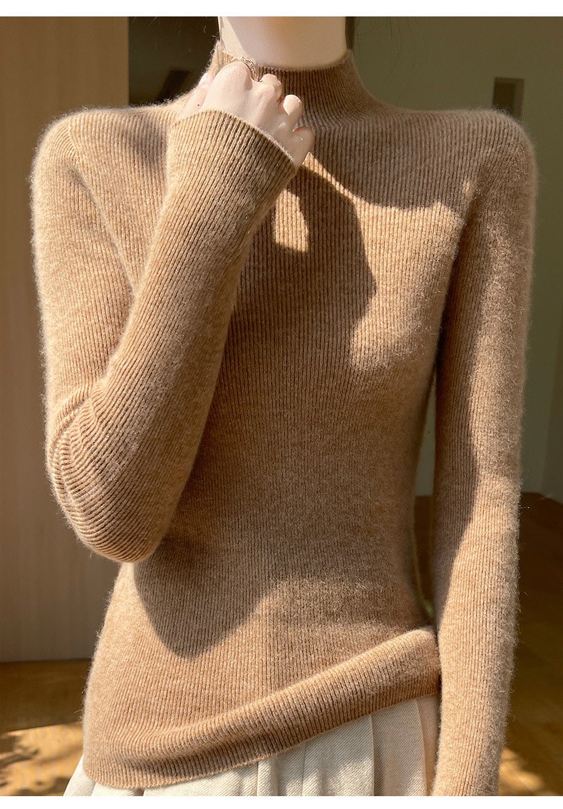 批发一线成衣无缝半高领打底衫秋冬修身针织衫女百搭高领毛衣内搭